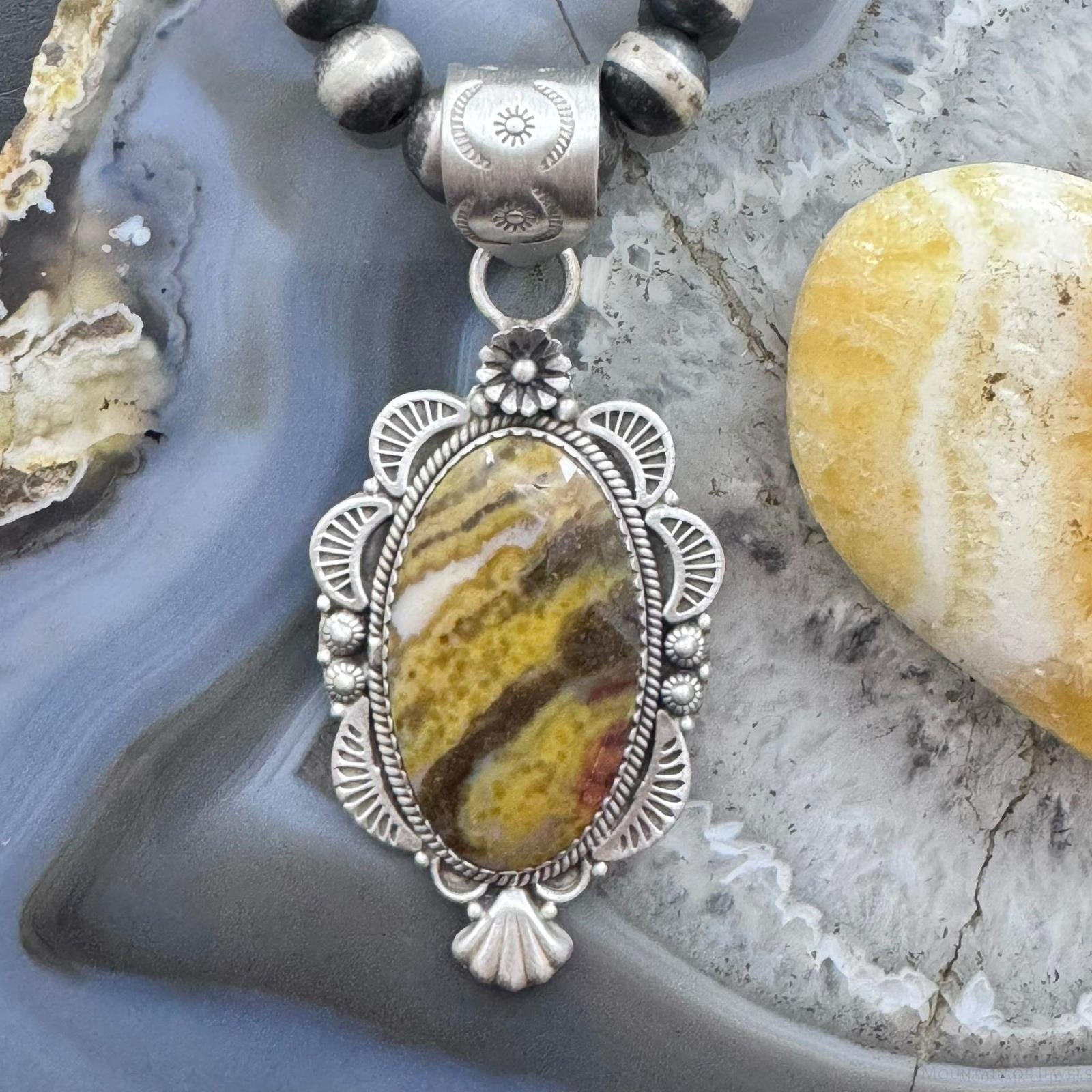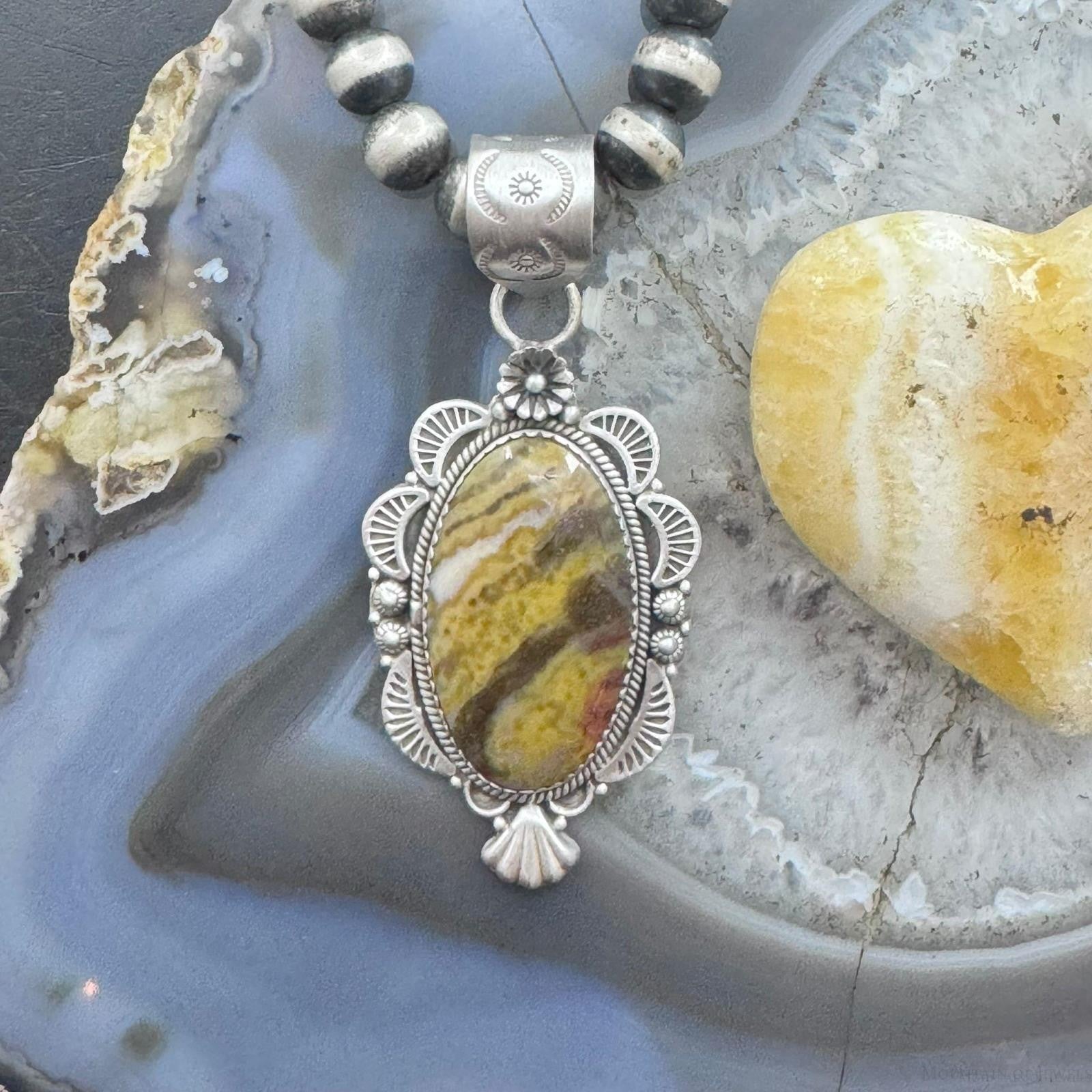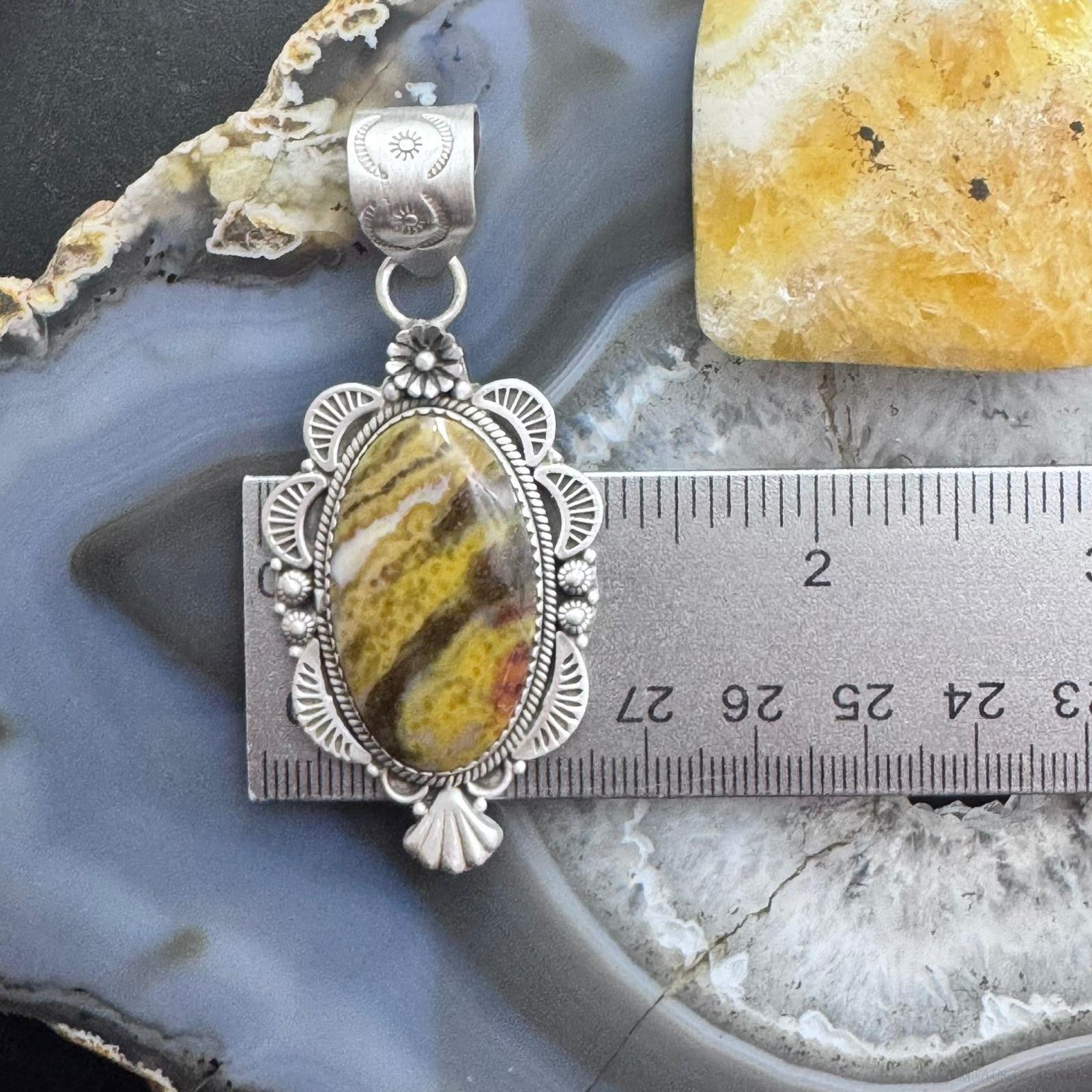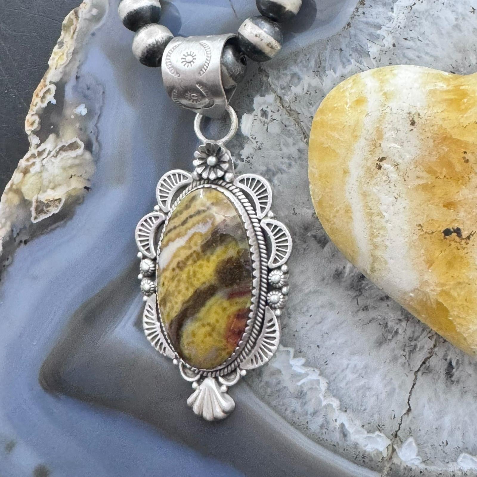 Sterling Silver Southwestern Style Elongated Oval River Jasper Pendant For Women