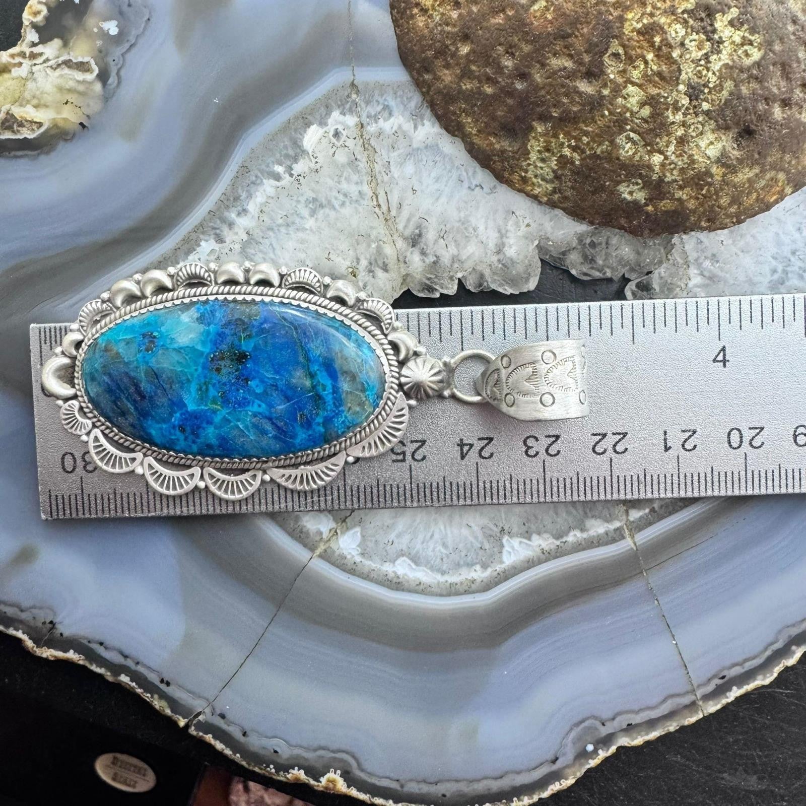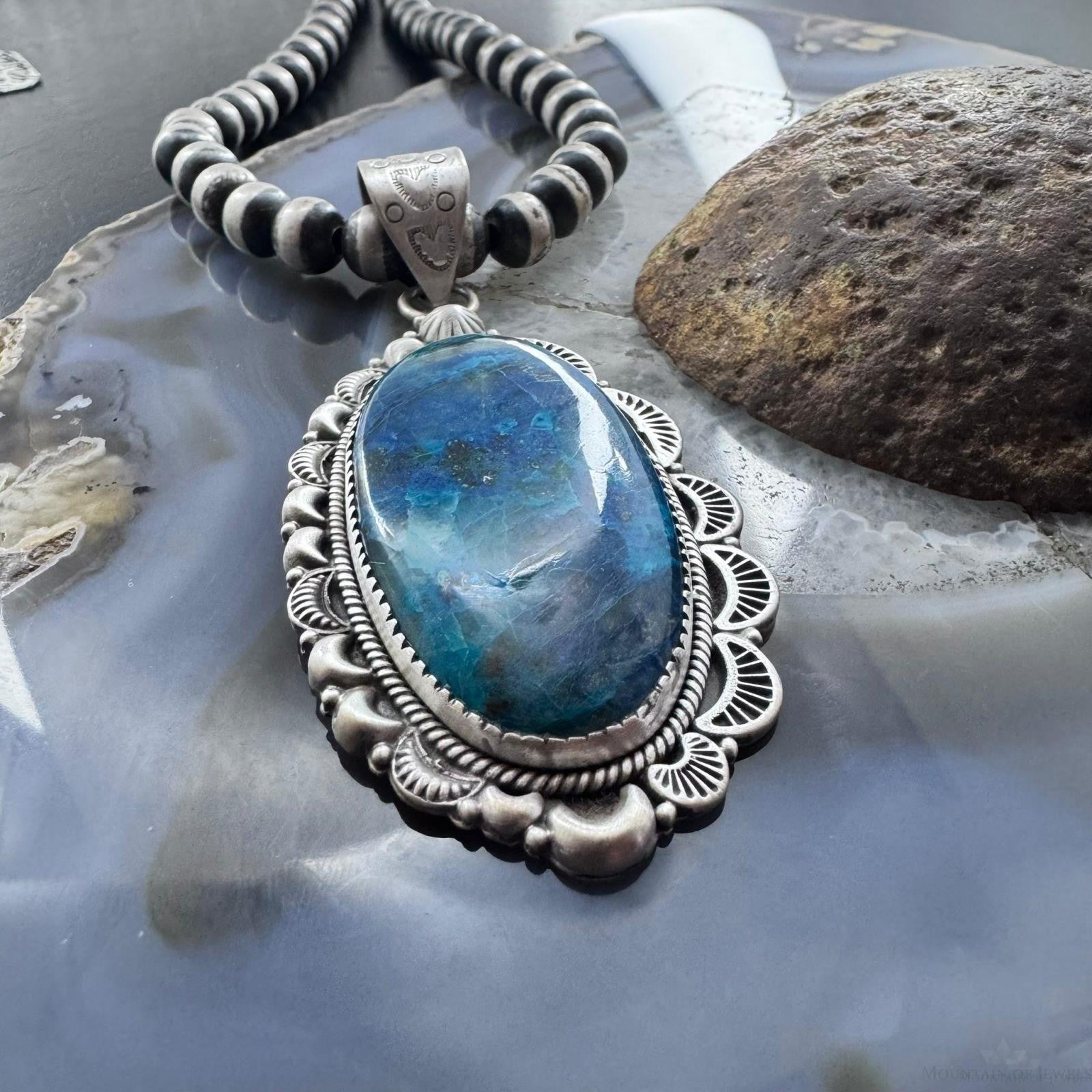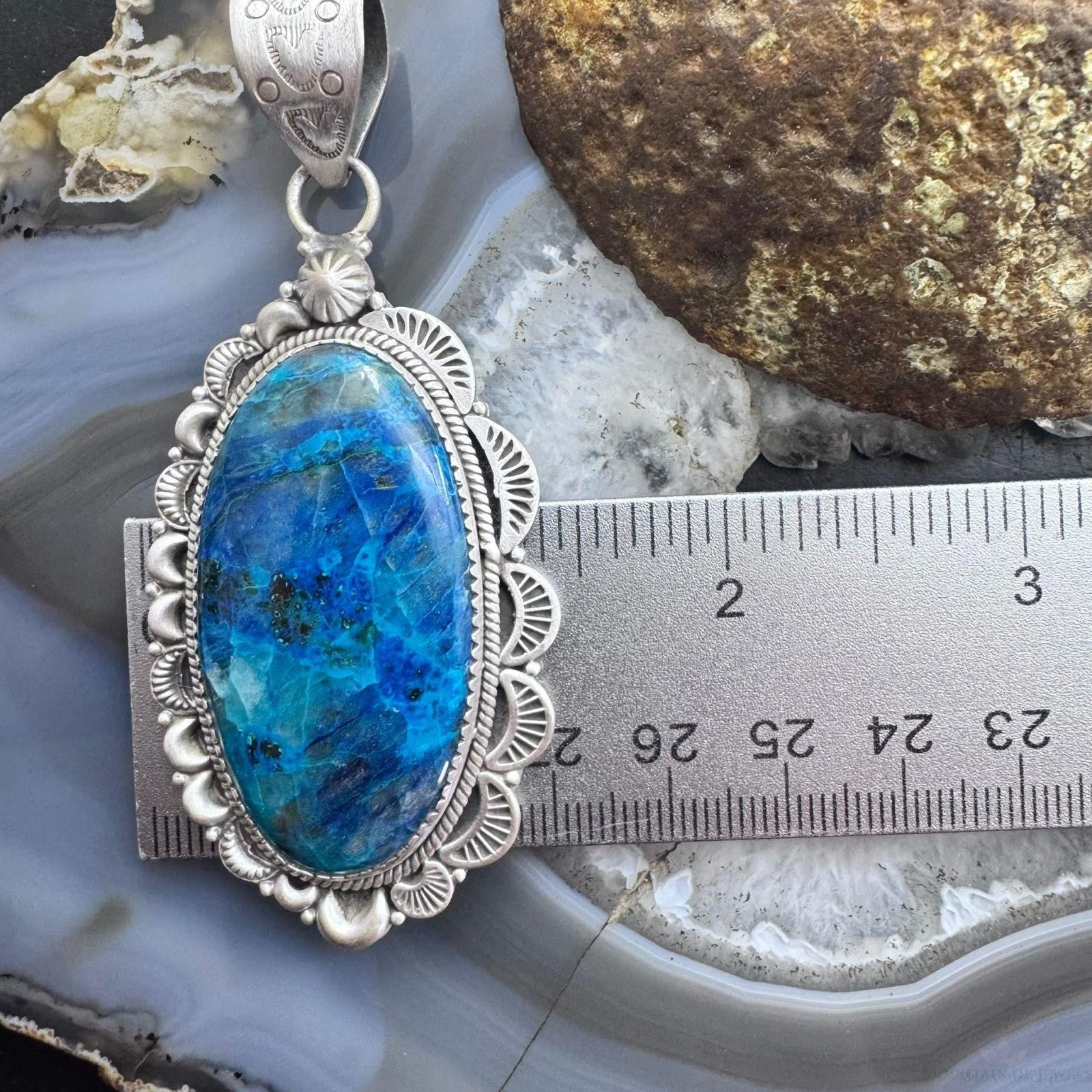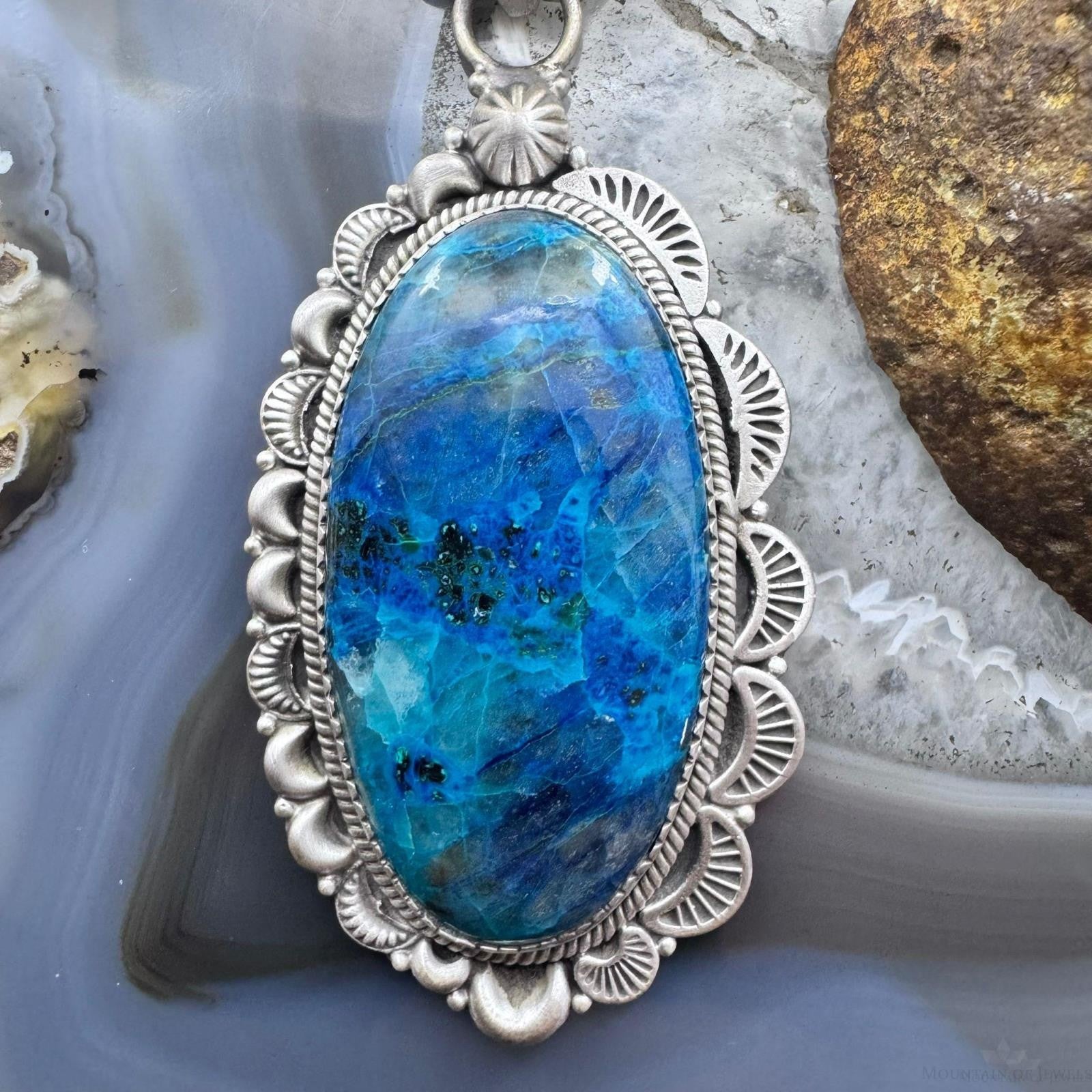 Sterling Silver Southwestern Style Elongated Oval Shattuckite Pendant For Women