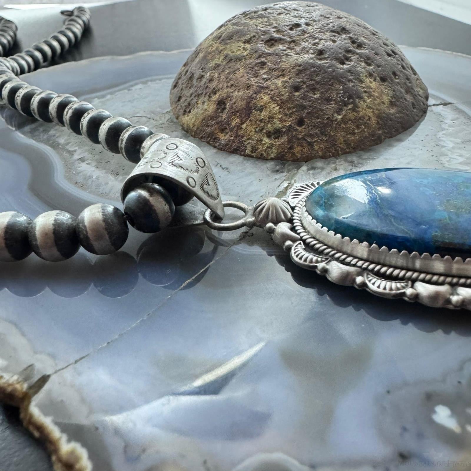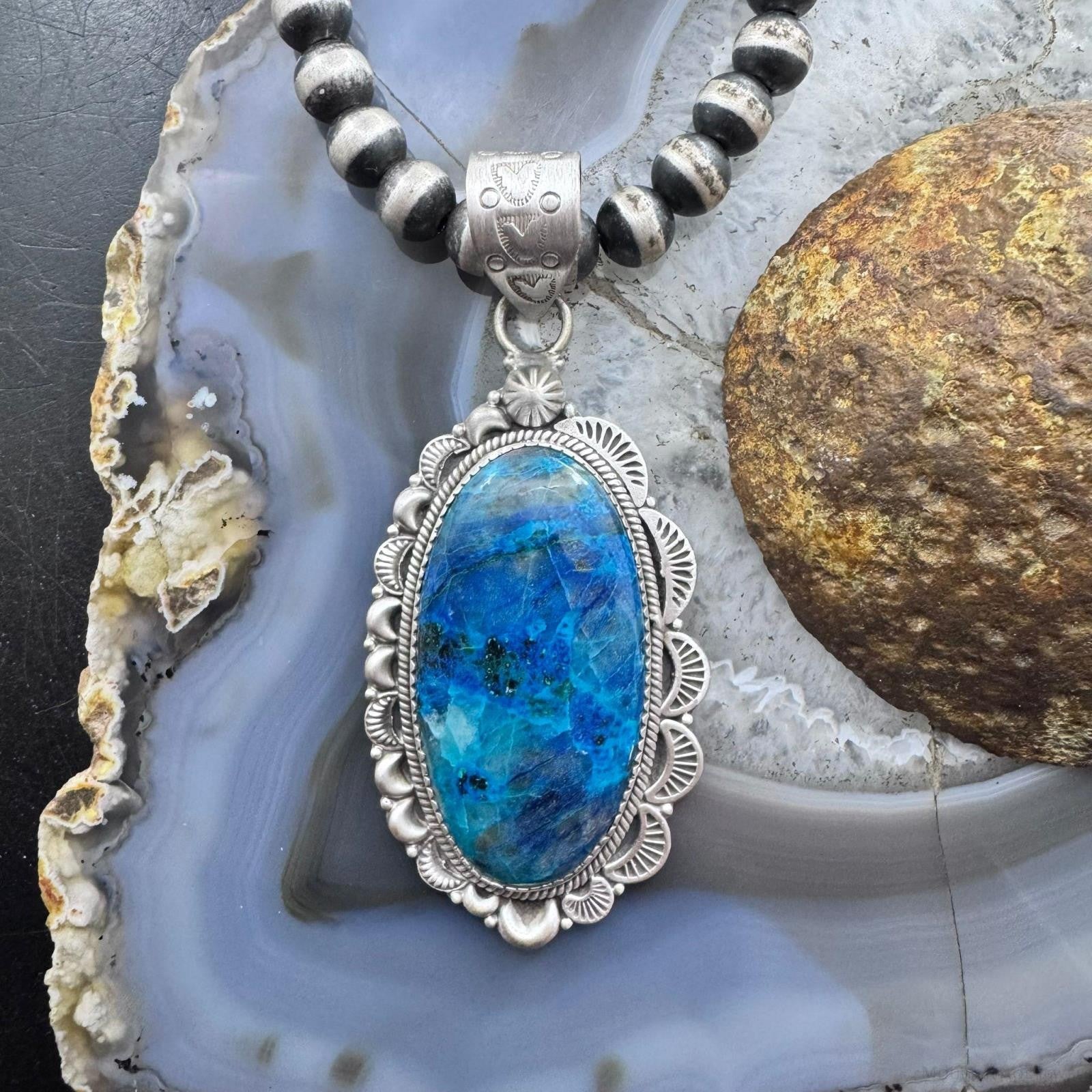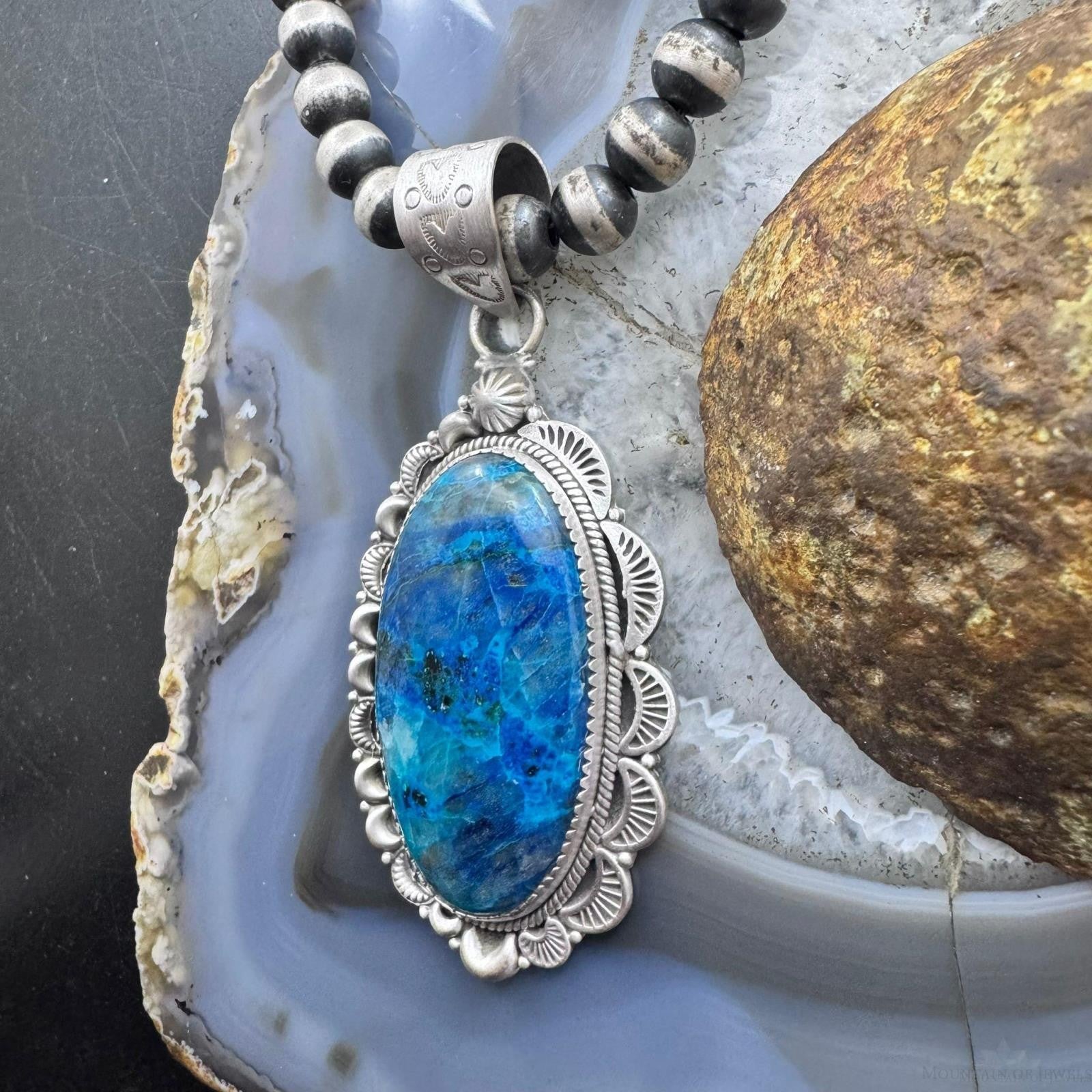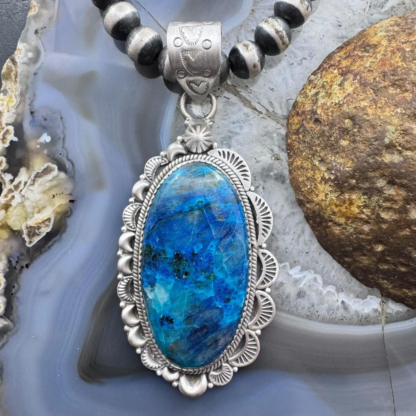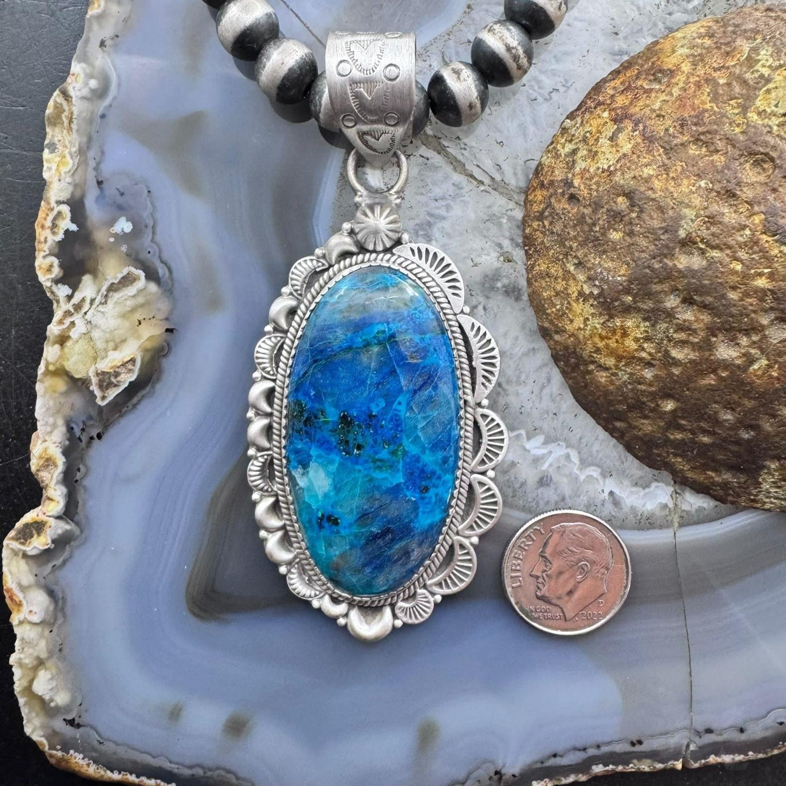 Sterling Silver Southwestern Style Elongated Oval Shattuckite Pendant For Women