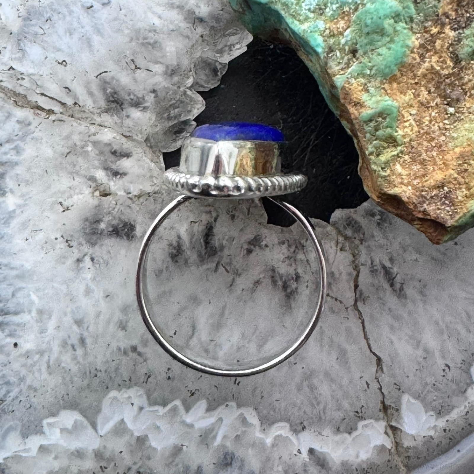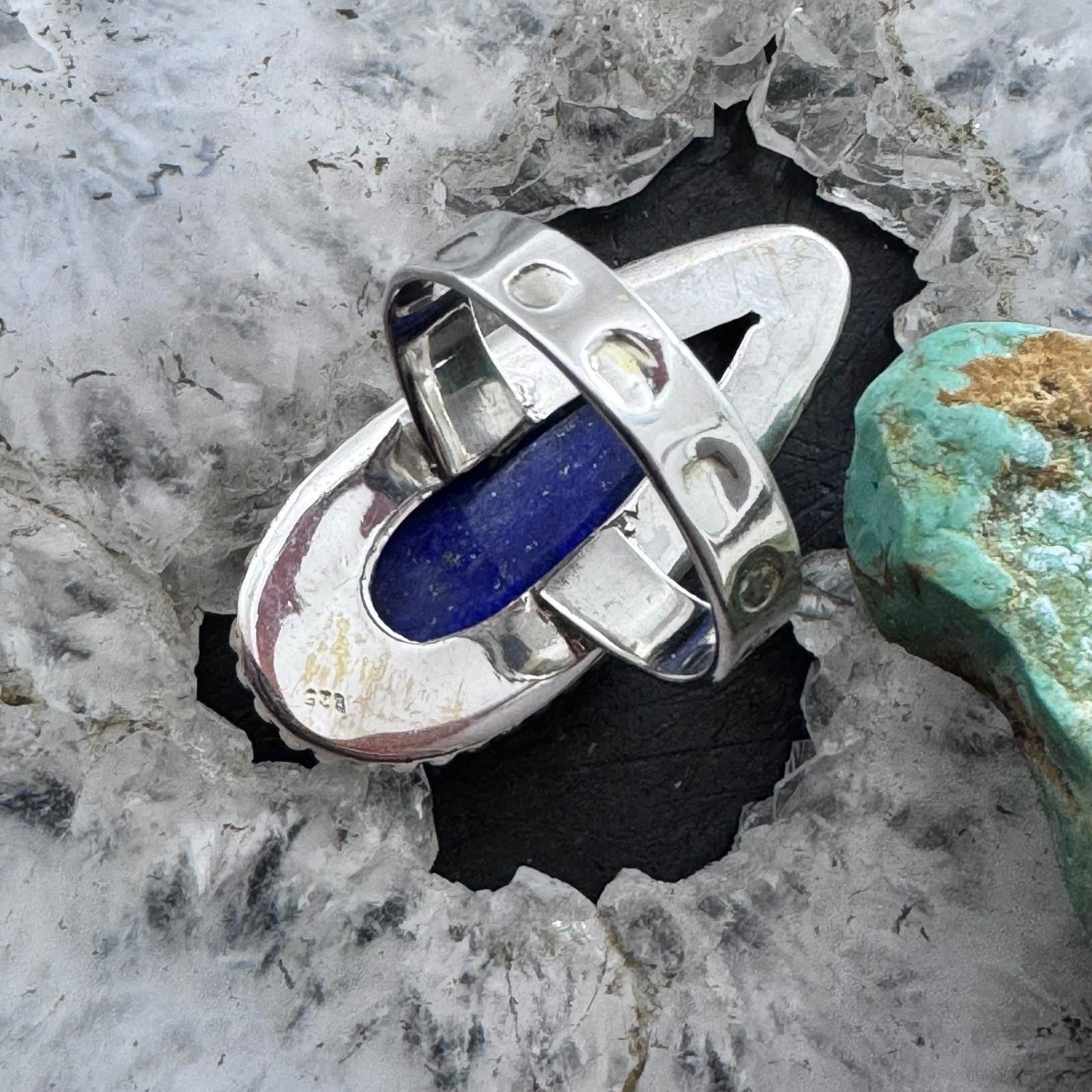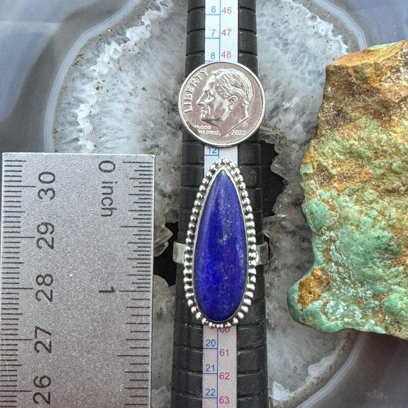 Sterling Silver Southwestern Style Elongated Teardrop Lapis Decorated Ring Size 8 For Women