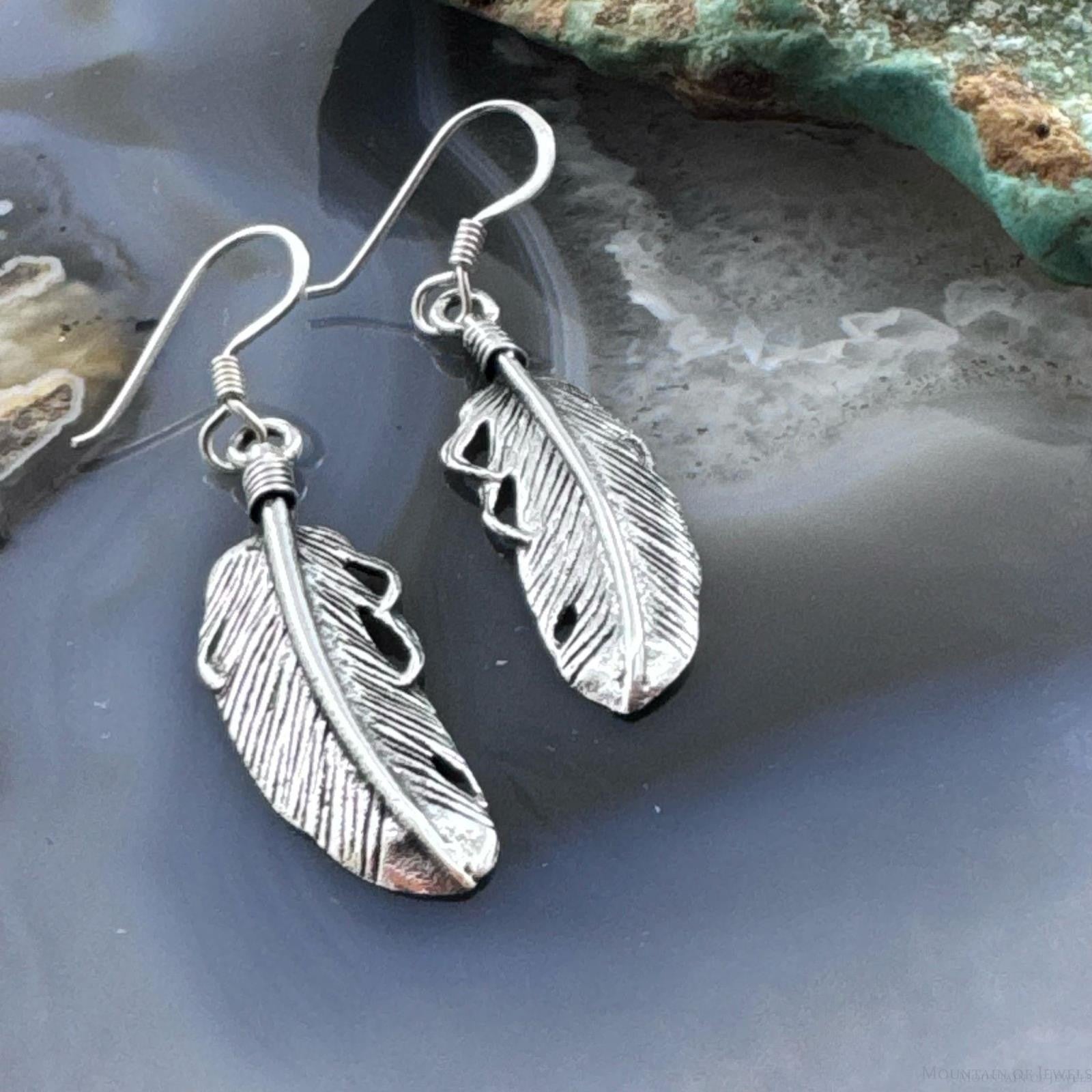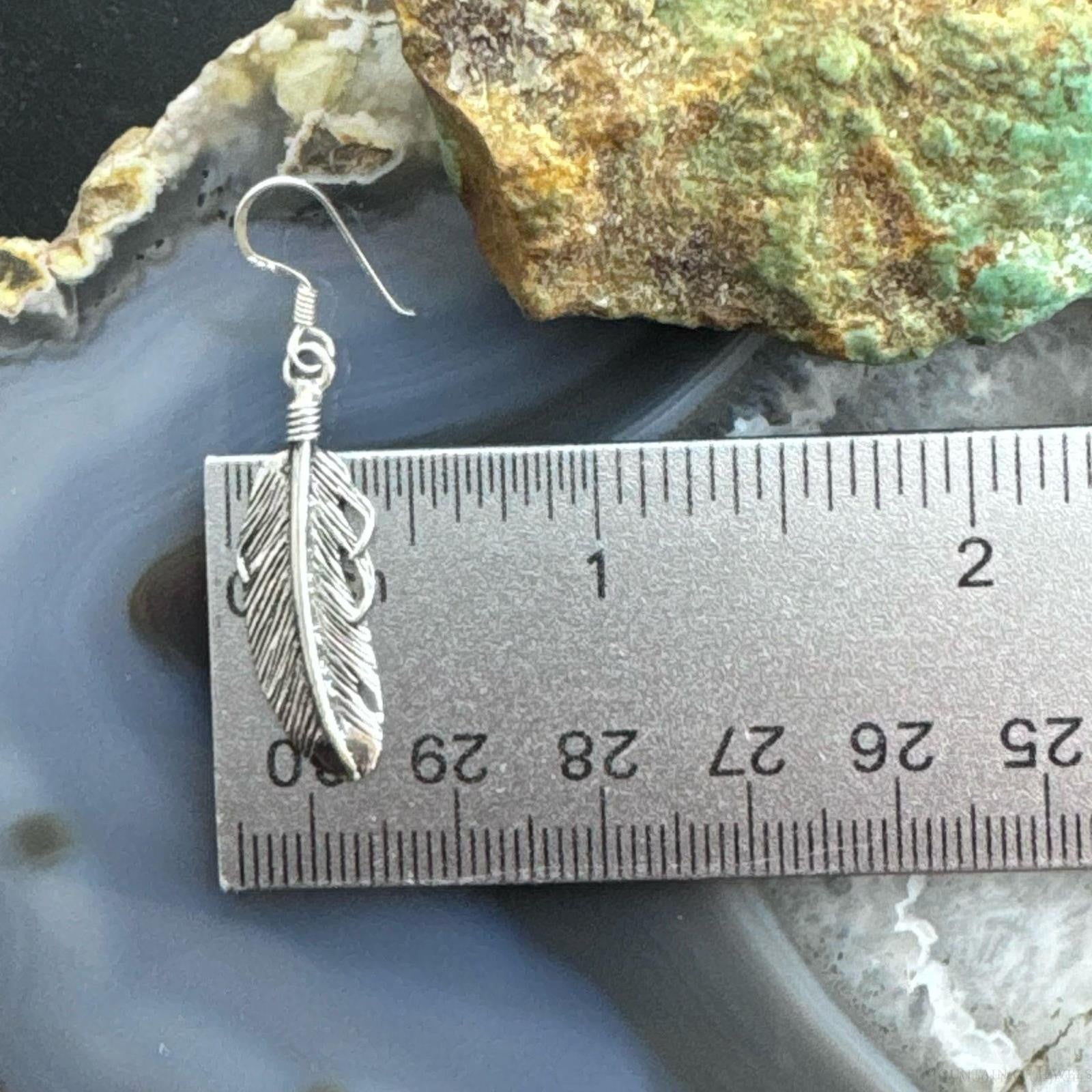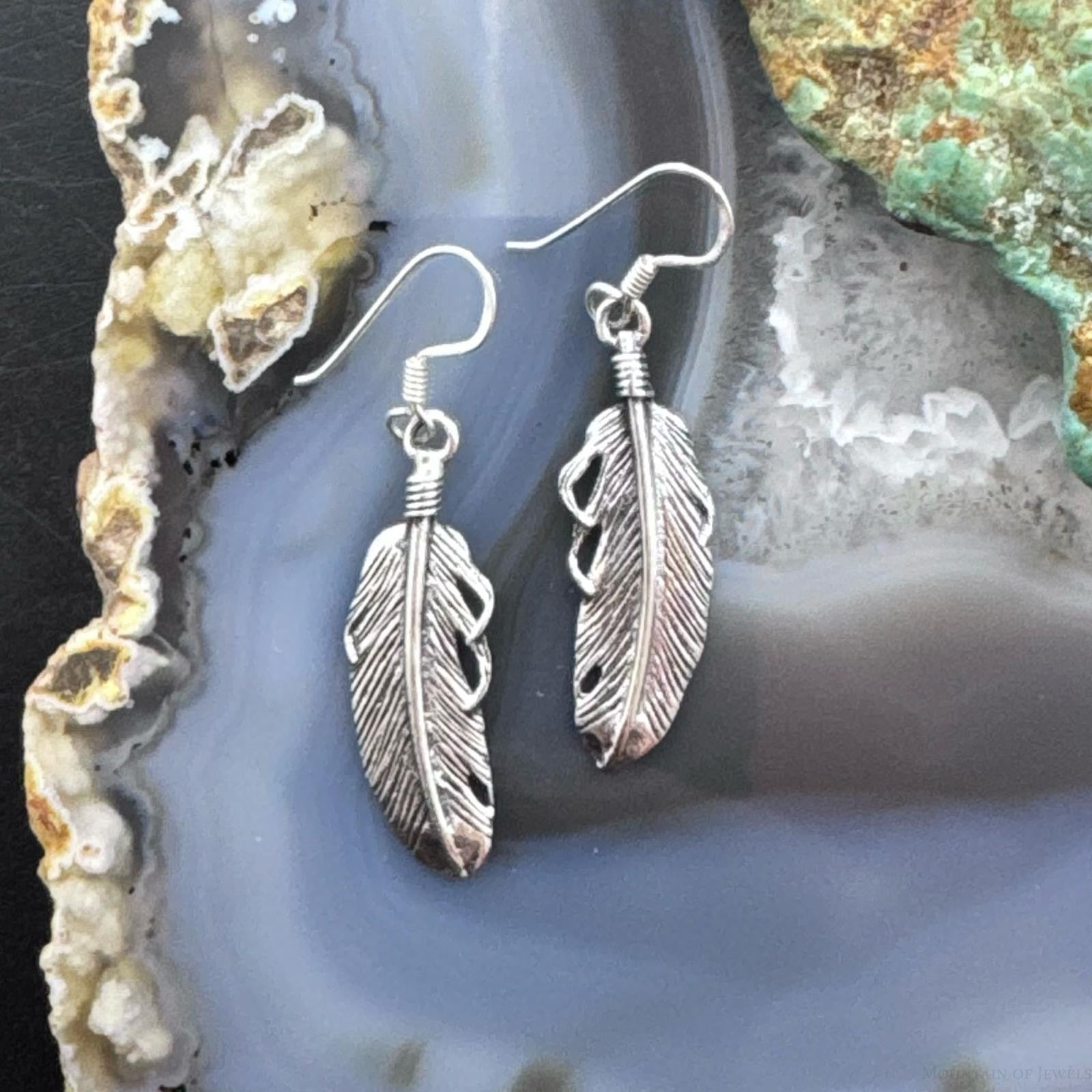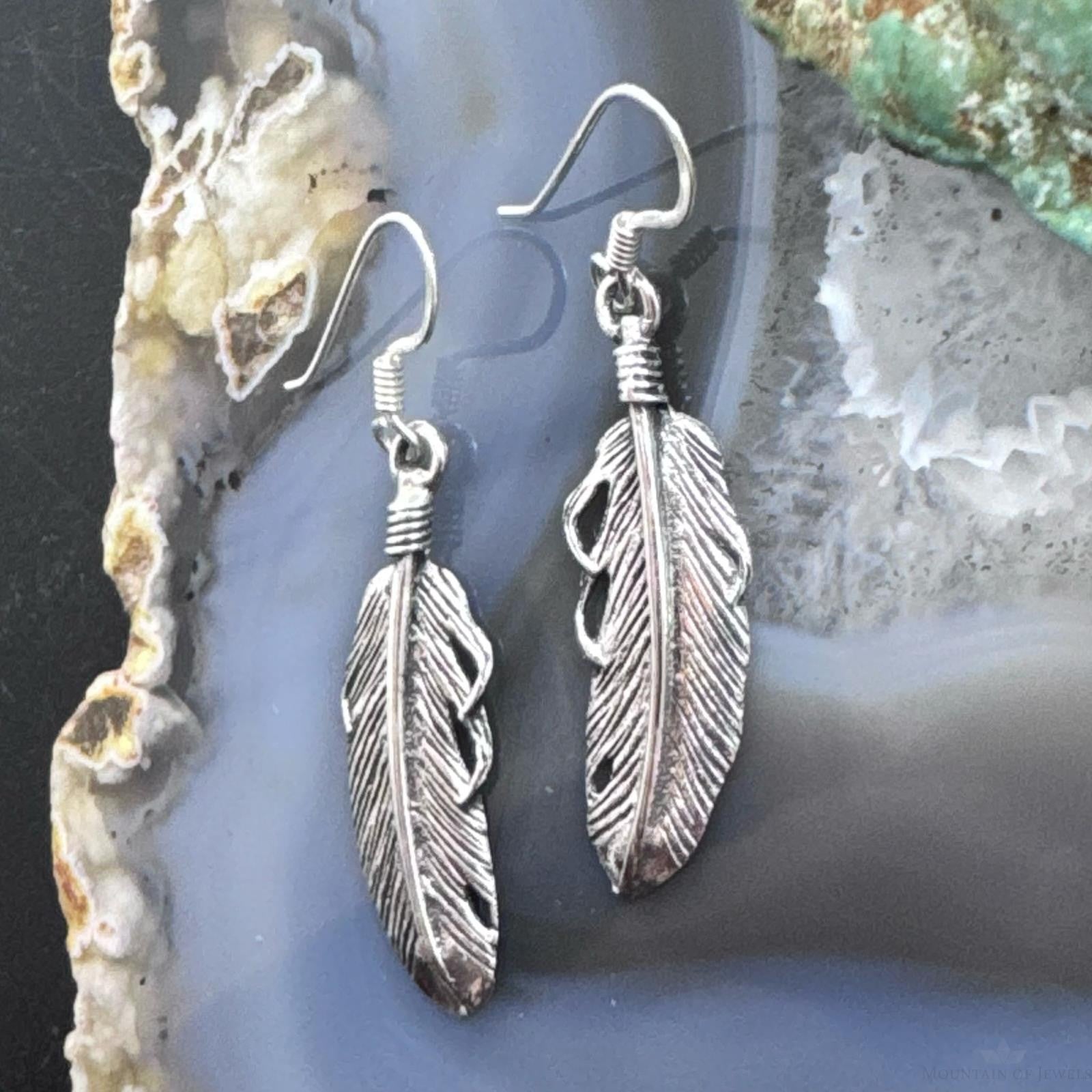 Sterling Silver Southwestern Style Feather Dangle Earrings For Women