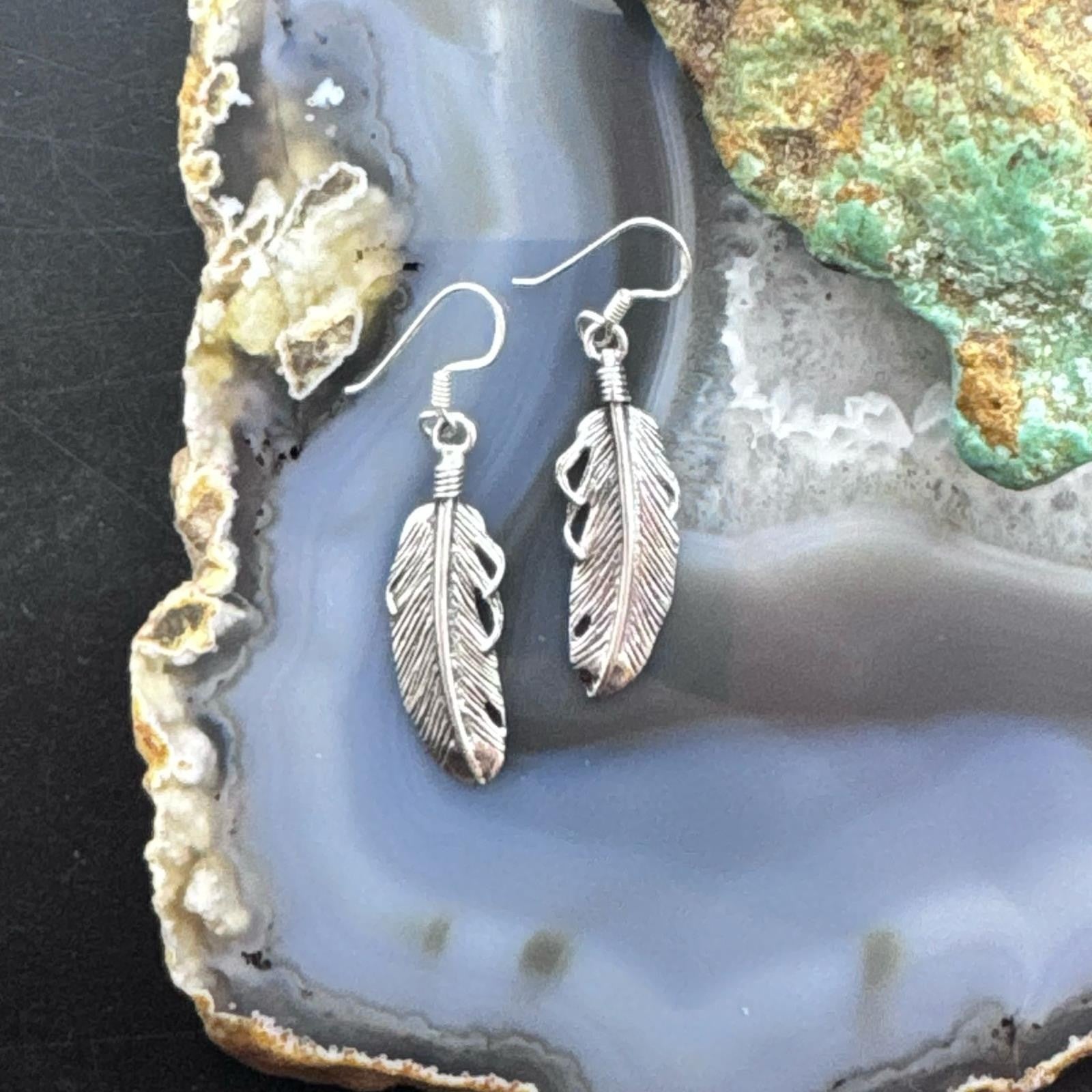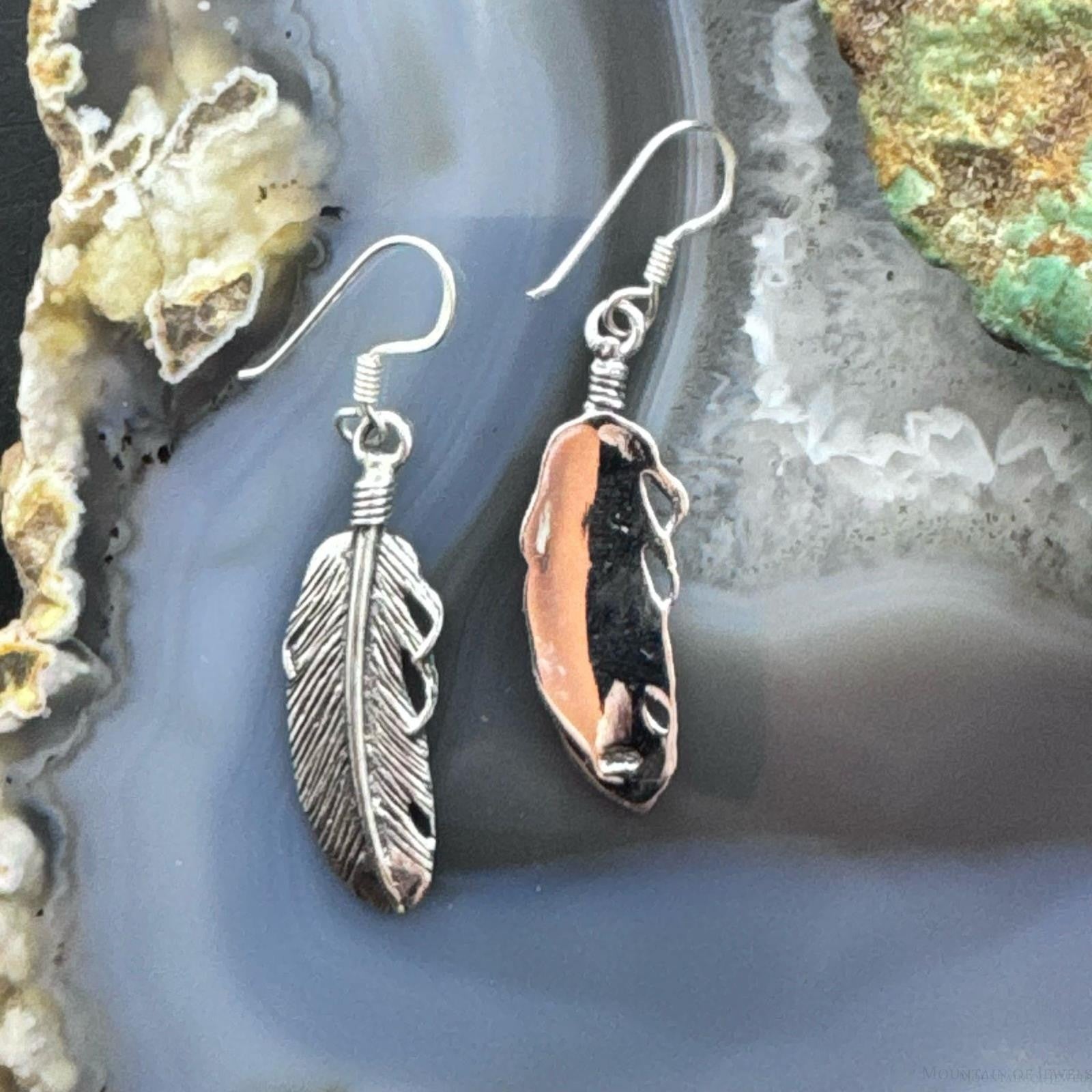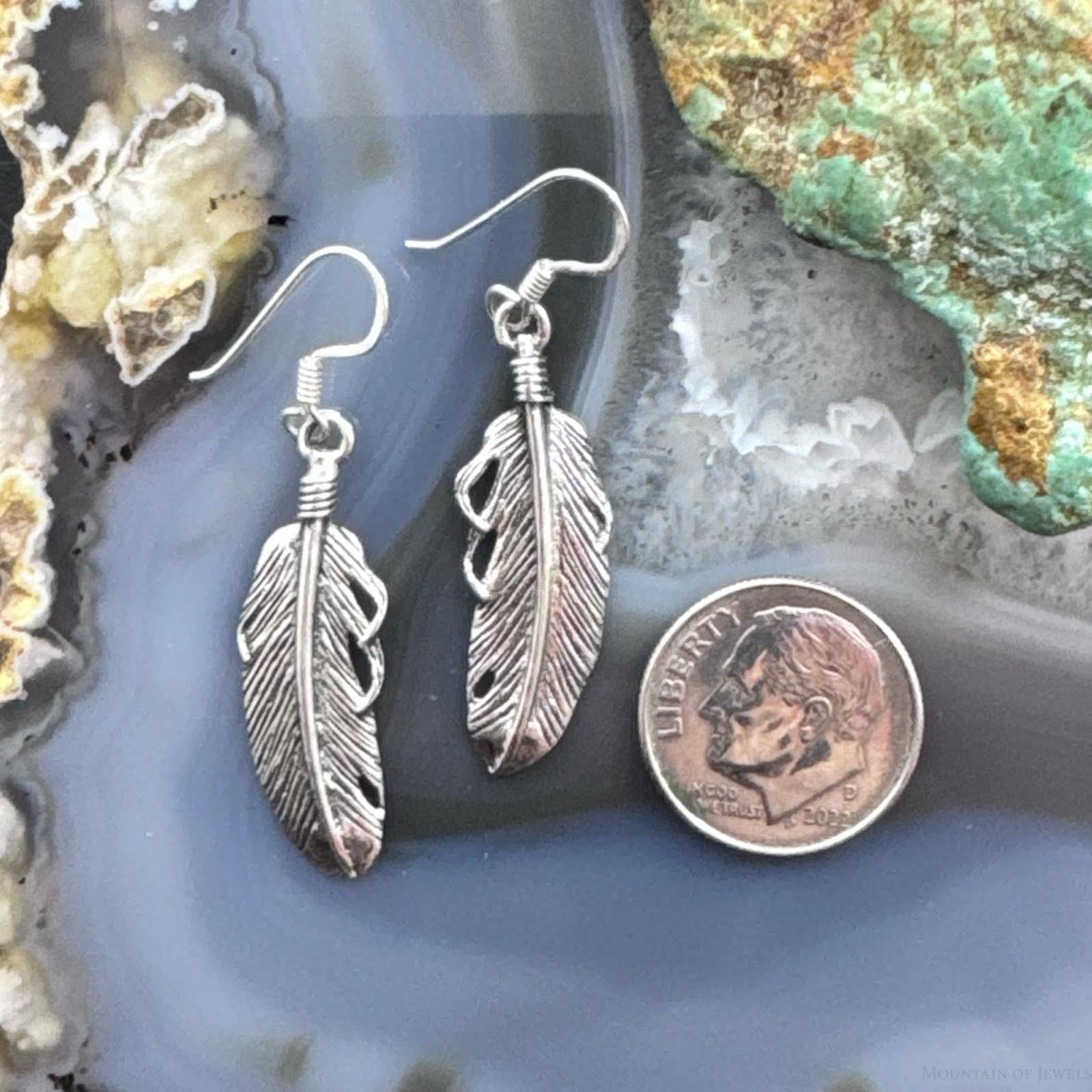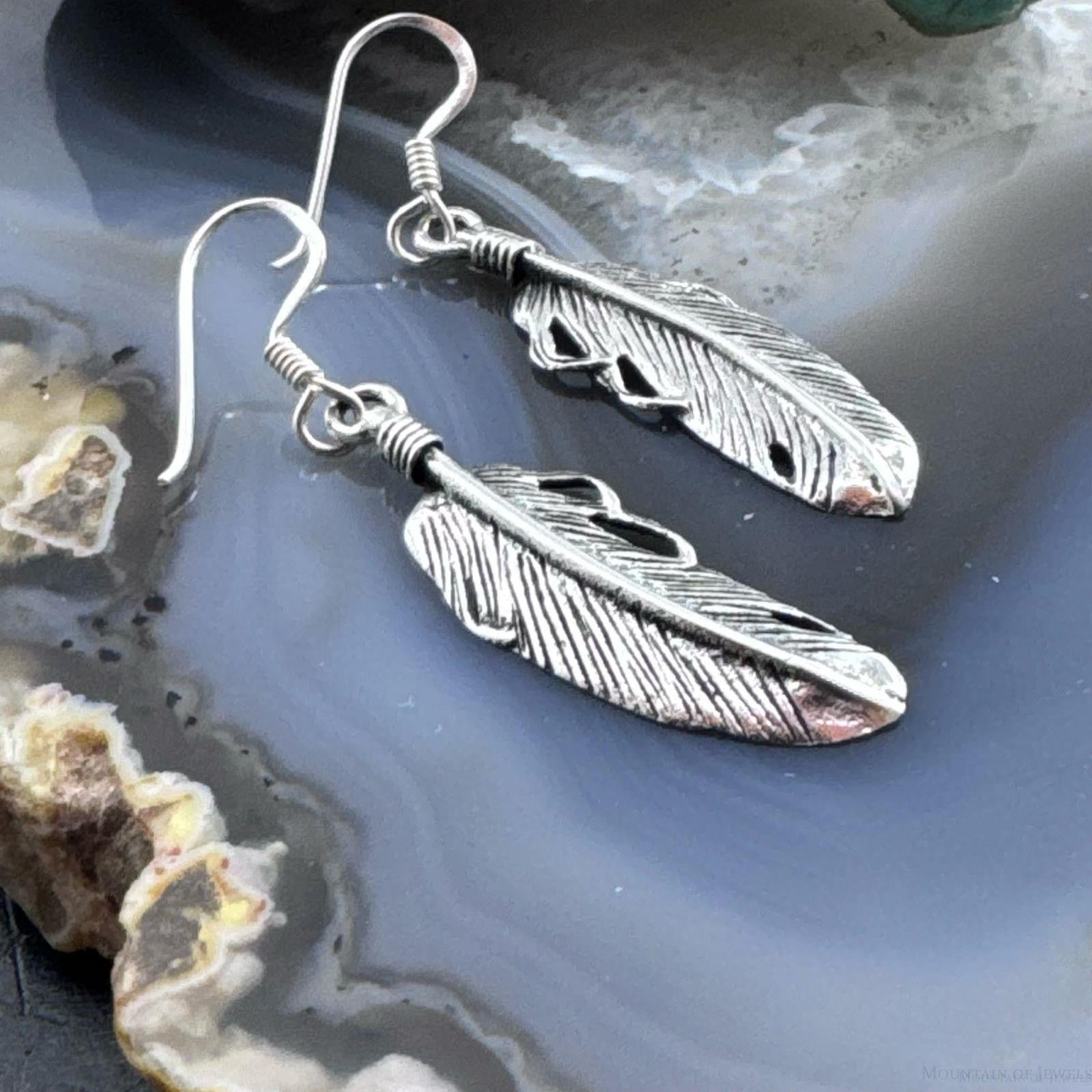 Sterling Silver Southwestern Style Feather Dangle Earrings For Women
