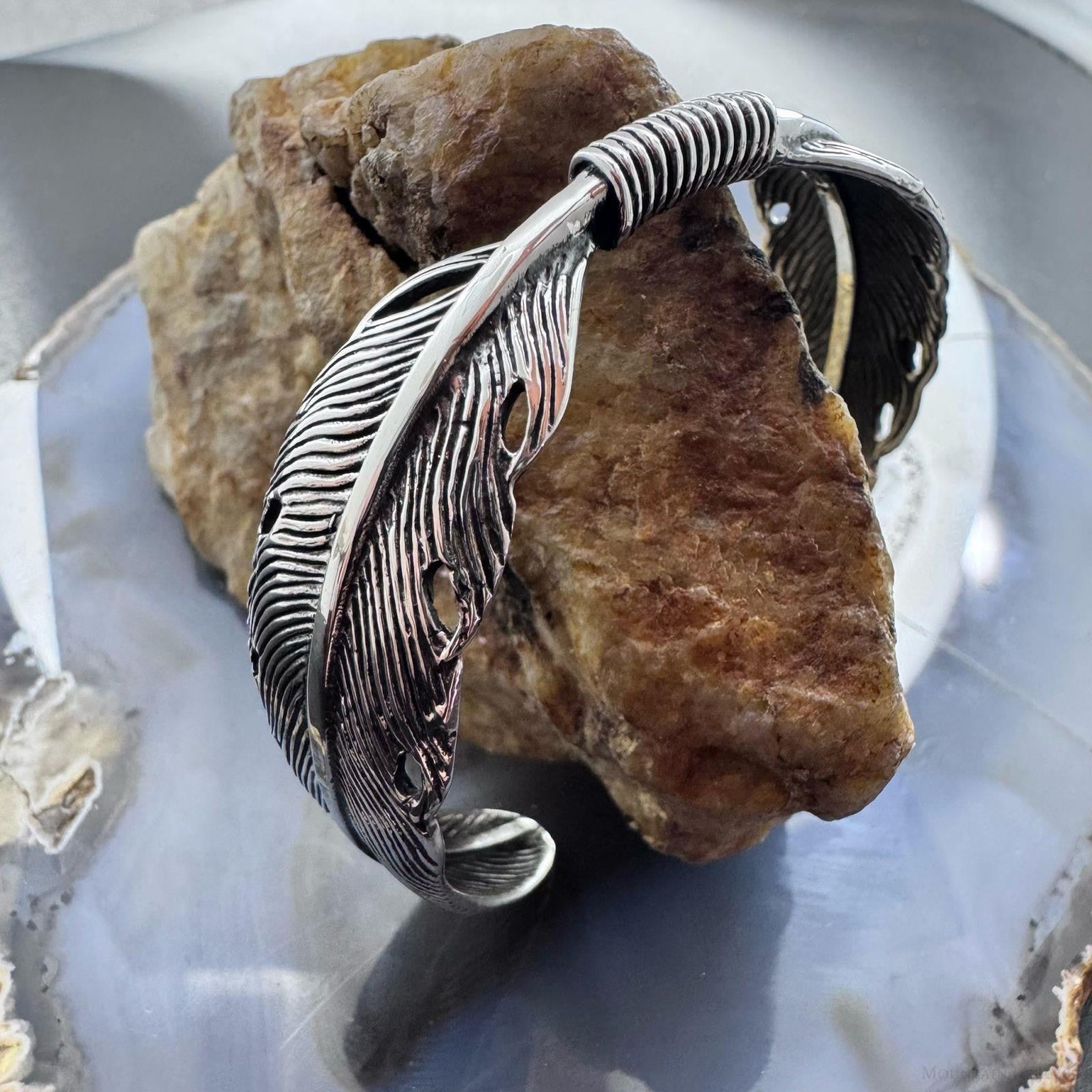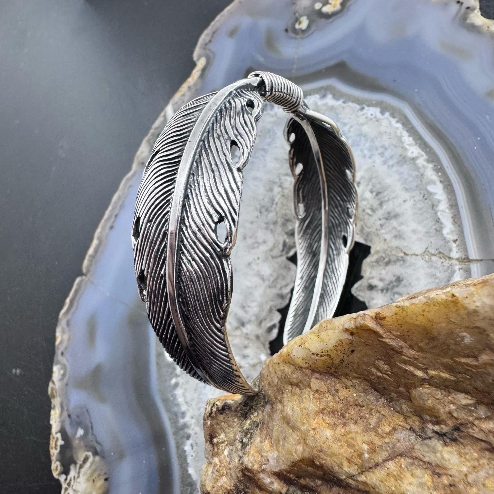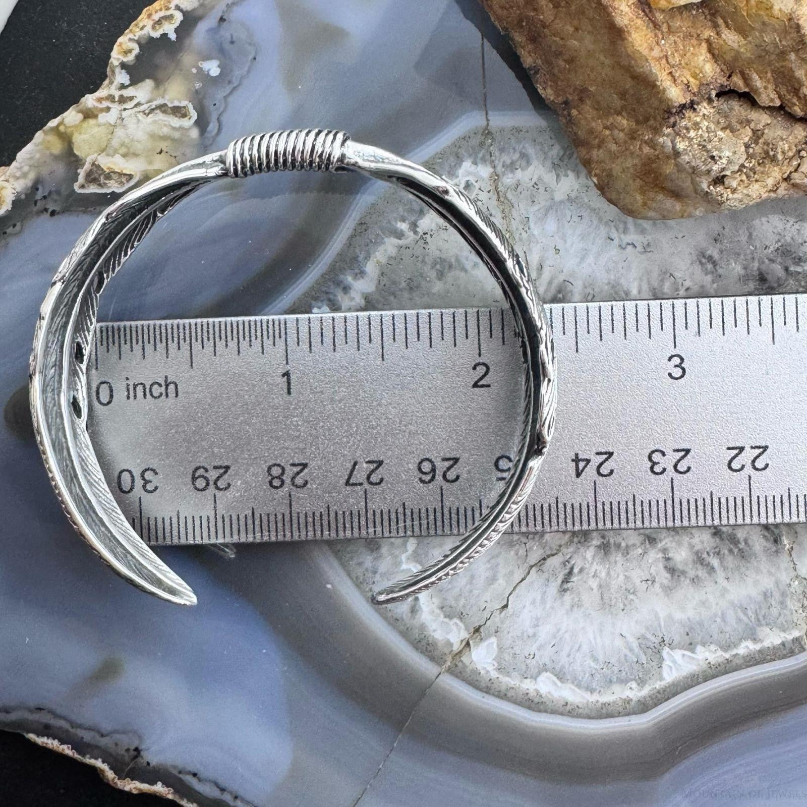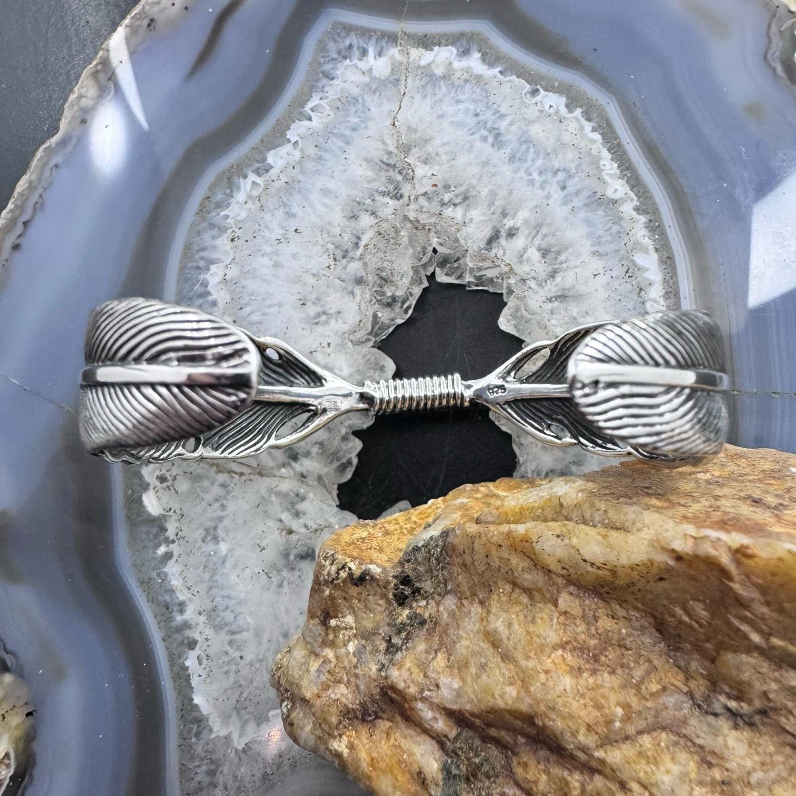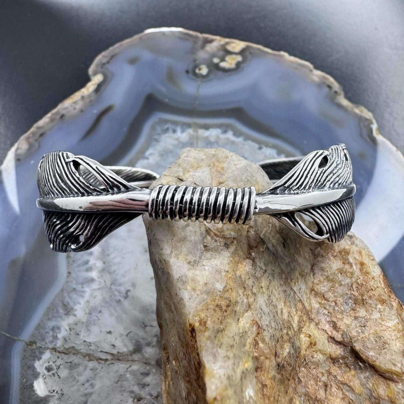 Sterling Silver Southwestern Style Feather Decorated Bracelet For Women #1