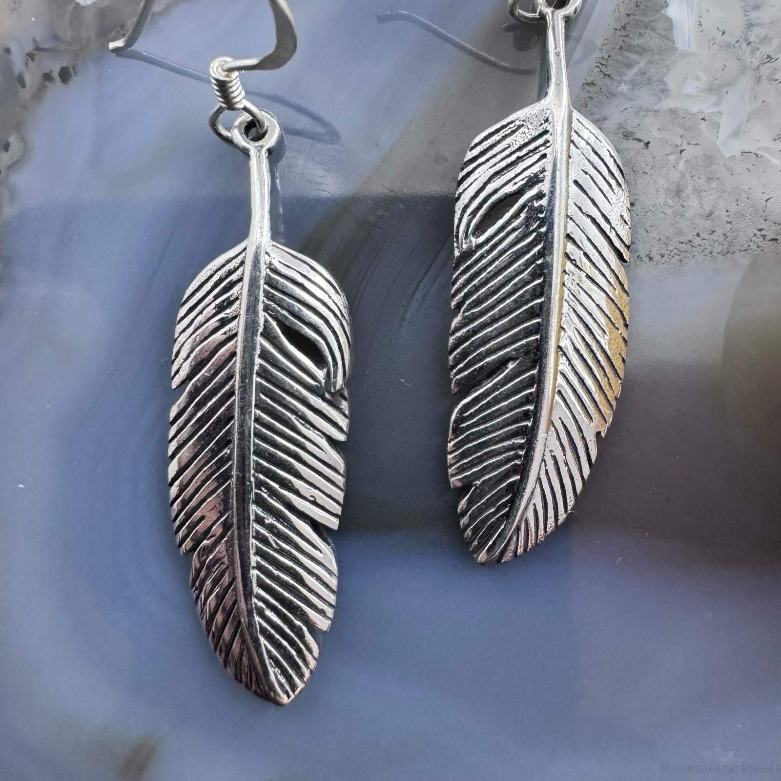 Sterling Silver Southwestern Style Feather Decorated Dangle Earrings For Women