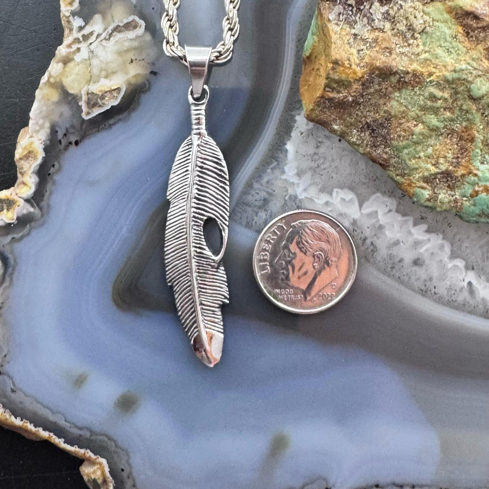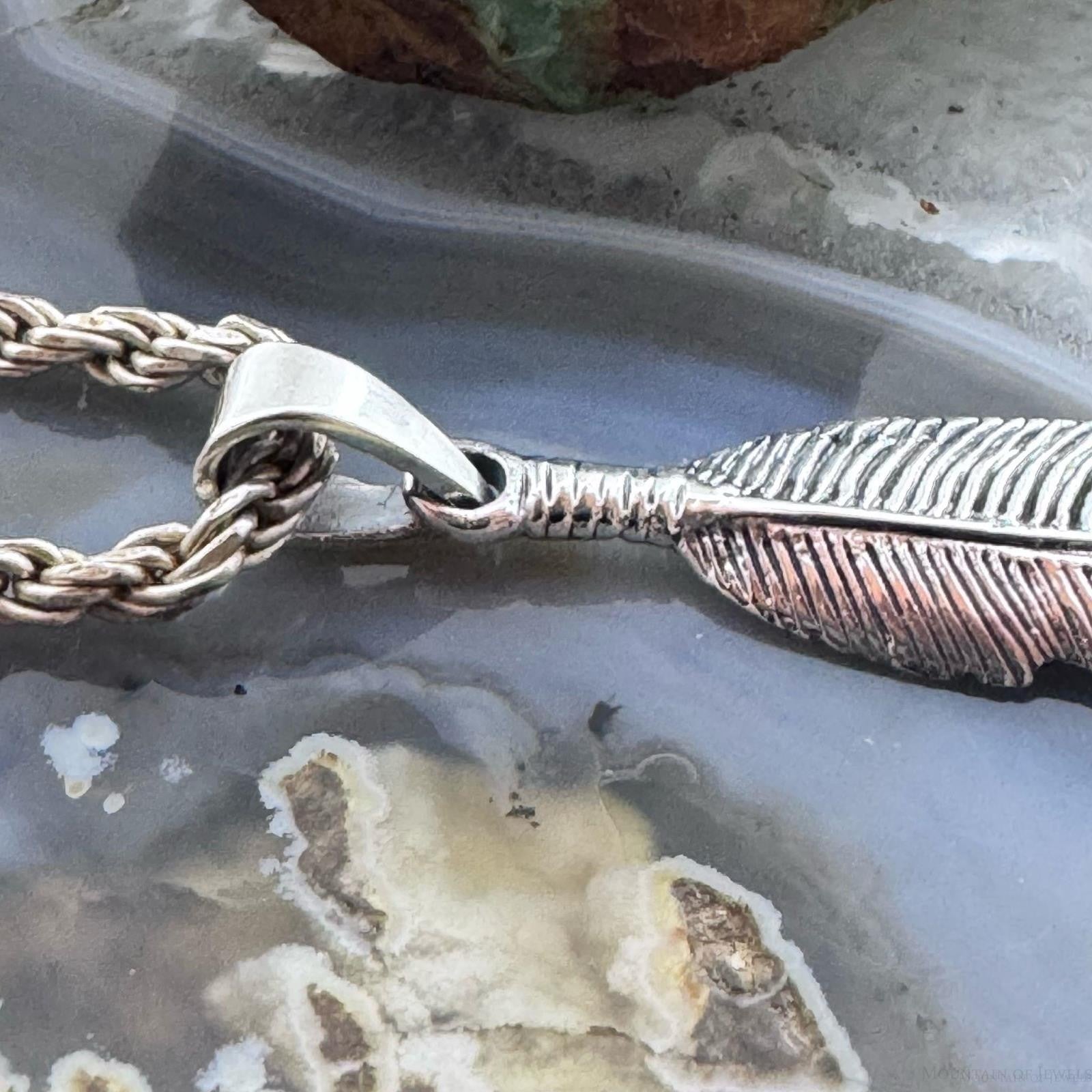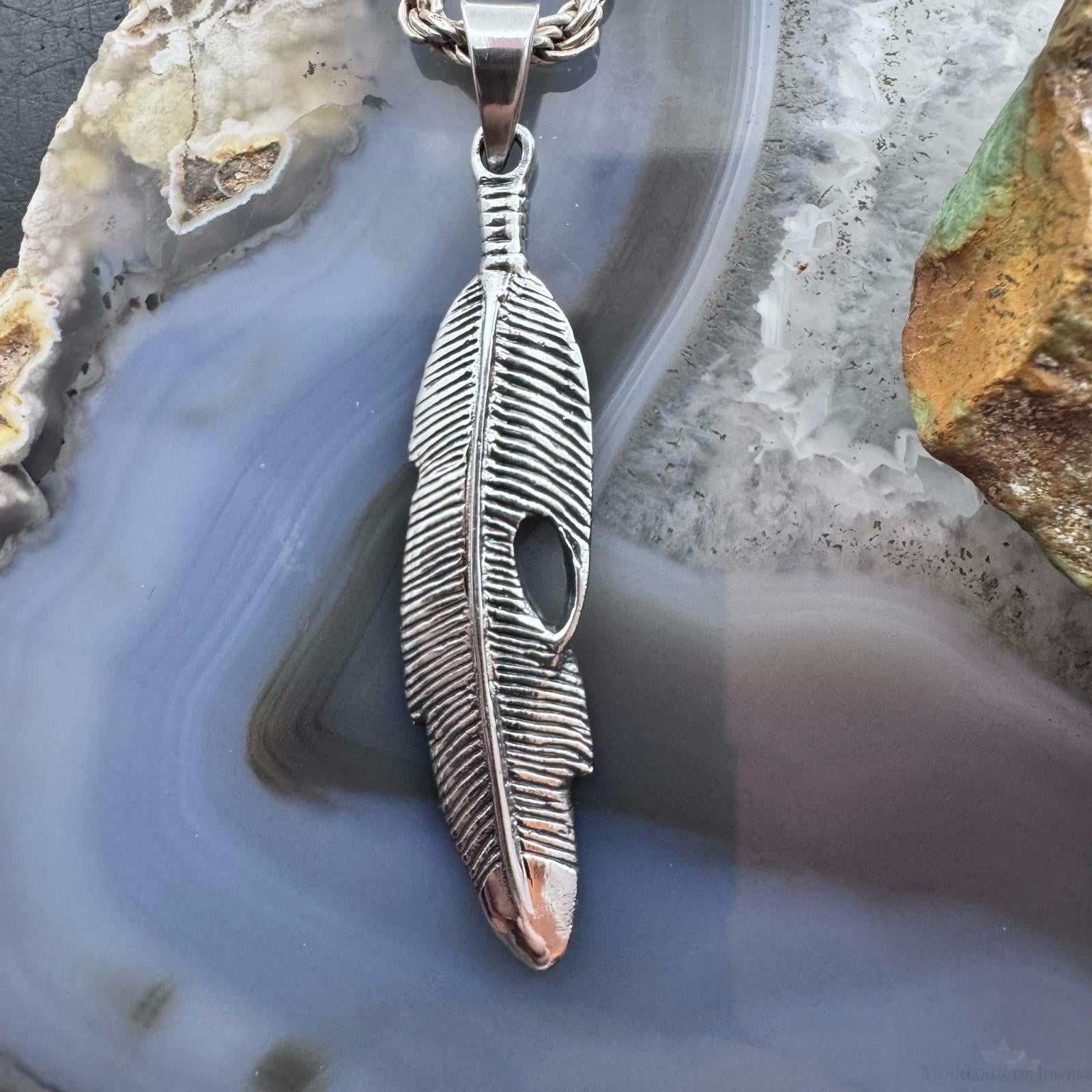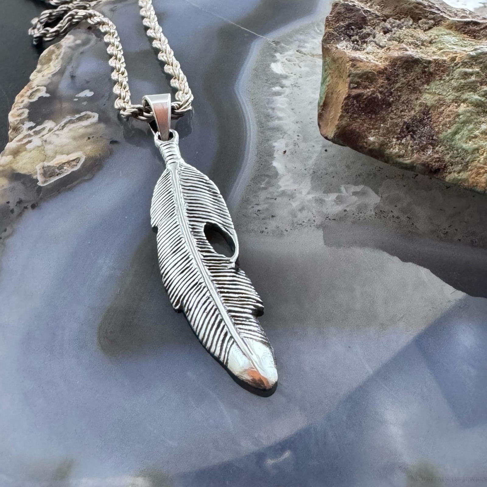 Sterling Silver Southwestern Style Feather Unisex Pendant For Women
