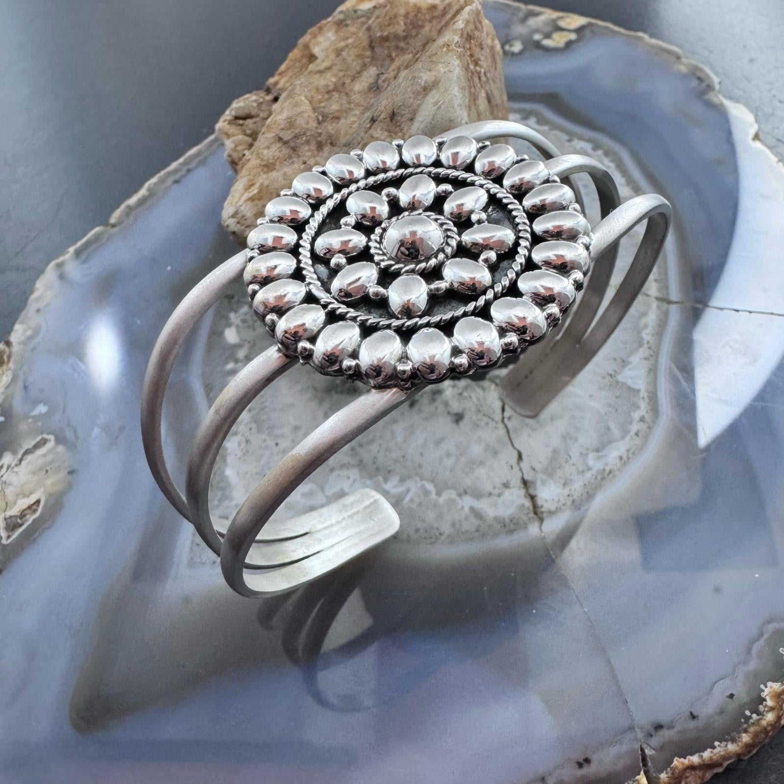 Sterling Silver Southwestern Style Flower Cluster Split Shank Bracelet For Women
