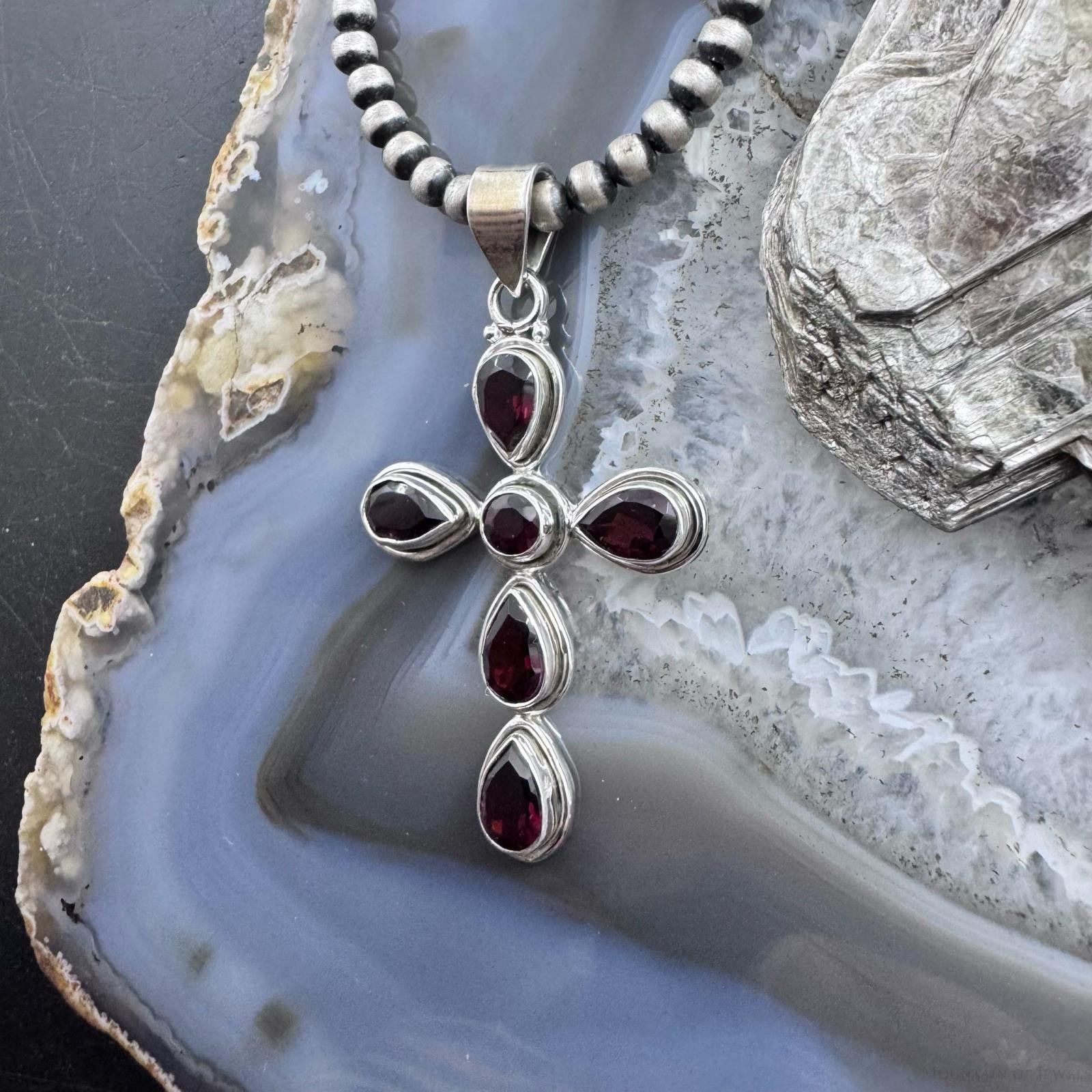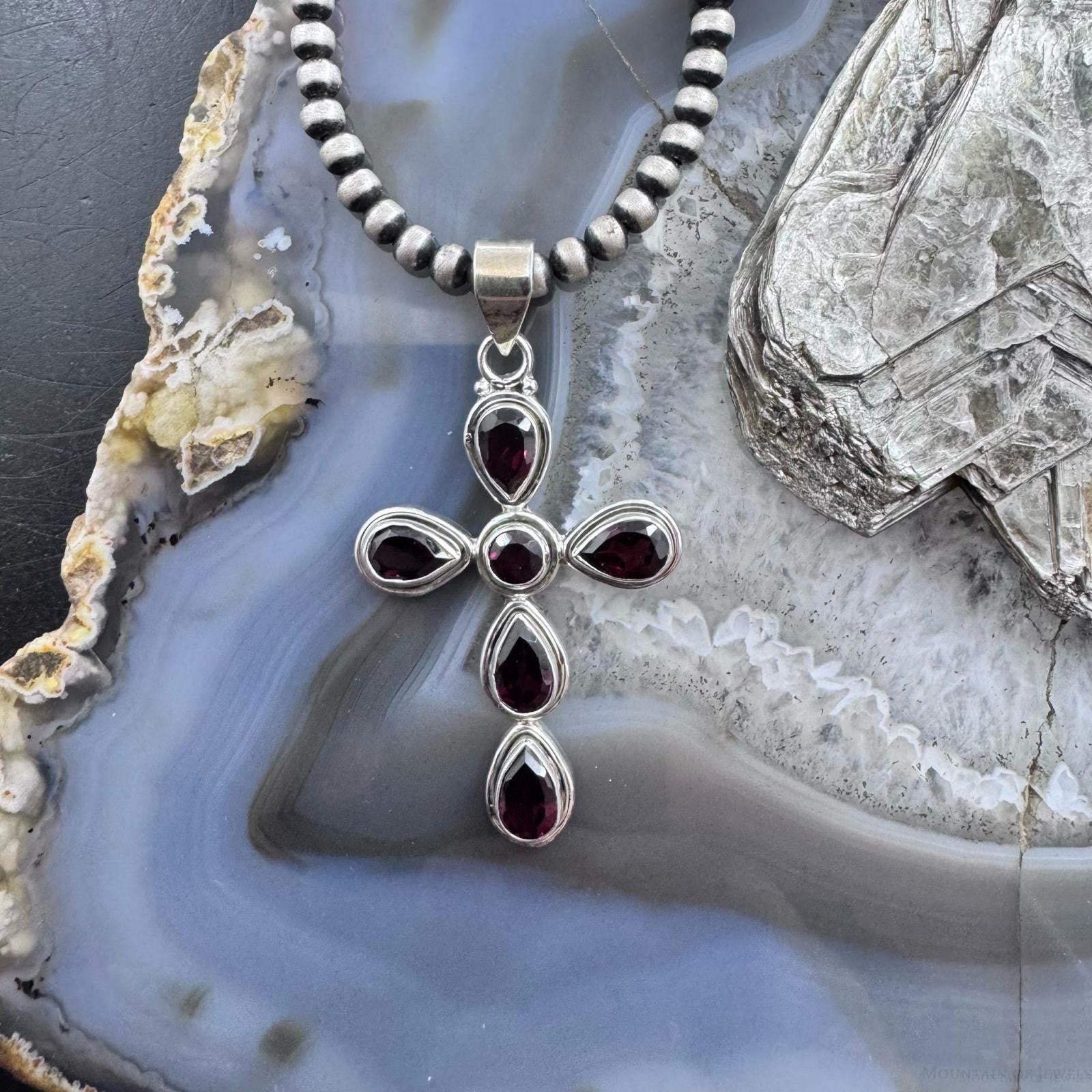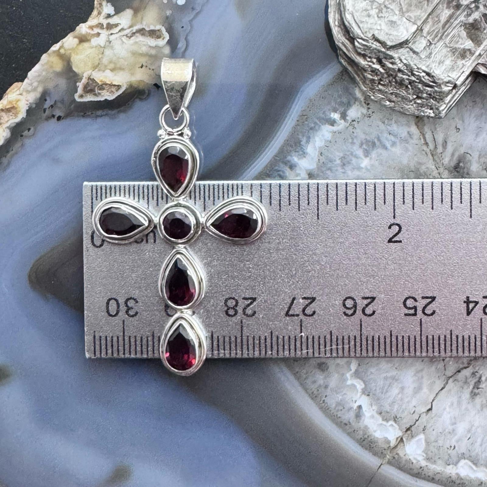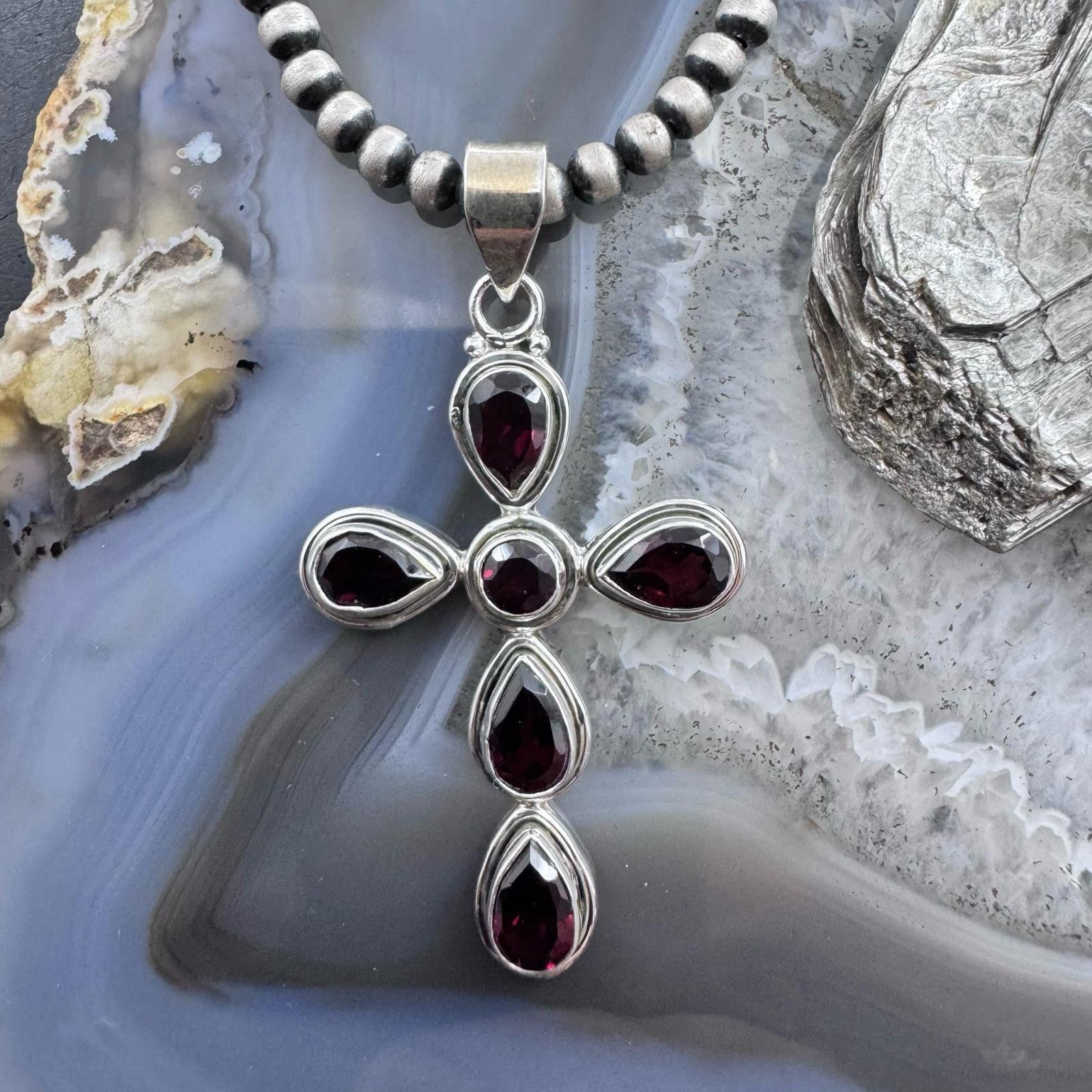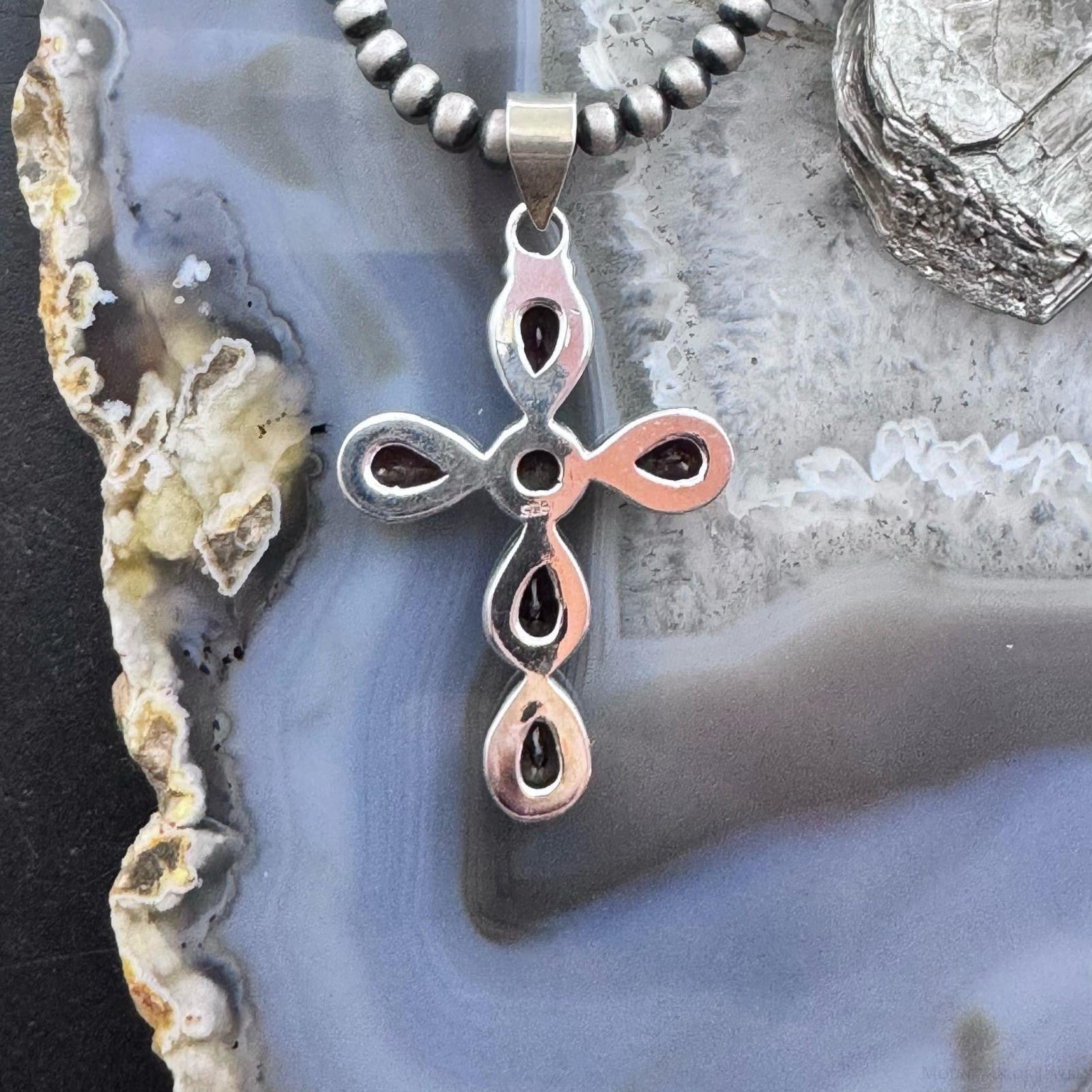 Sterling Silver Southwestern Style Garnet Decorated Cross Pendant For Women