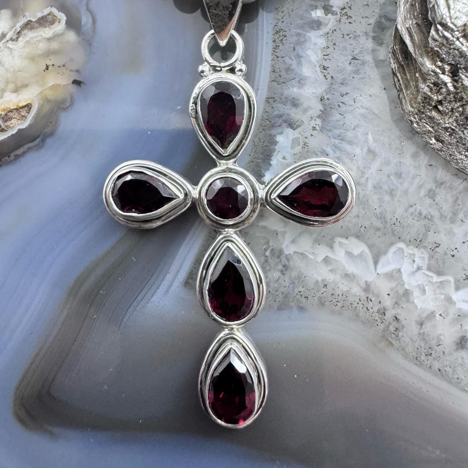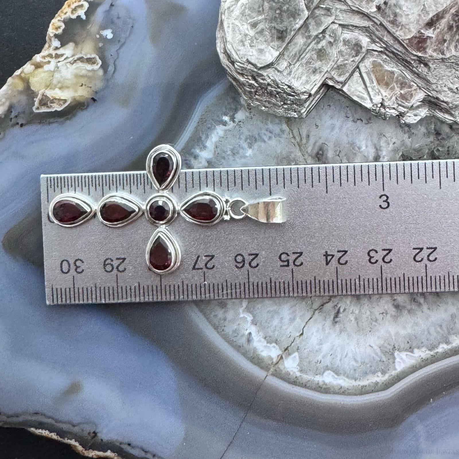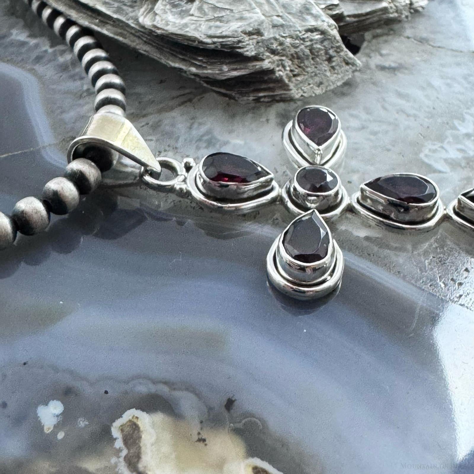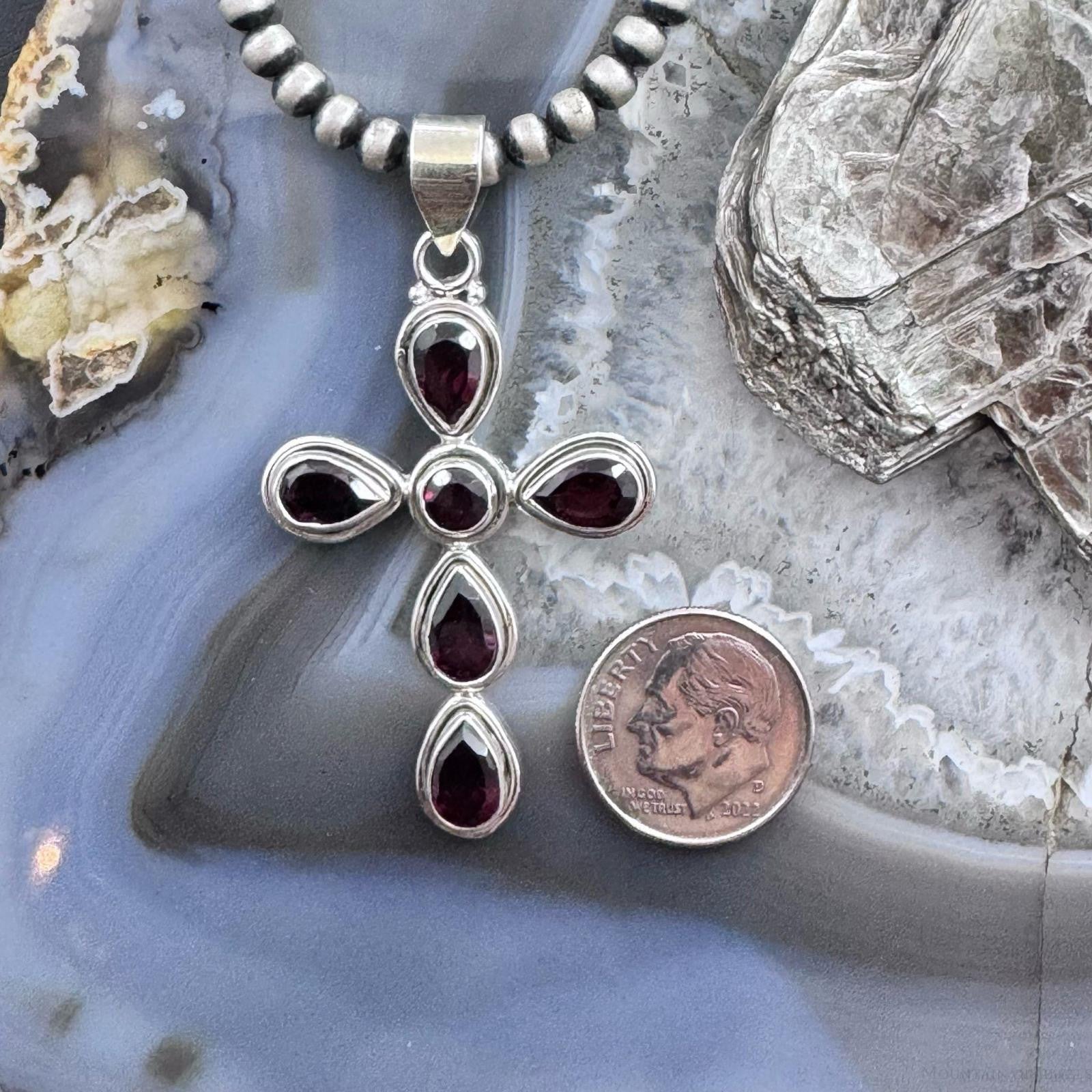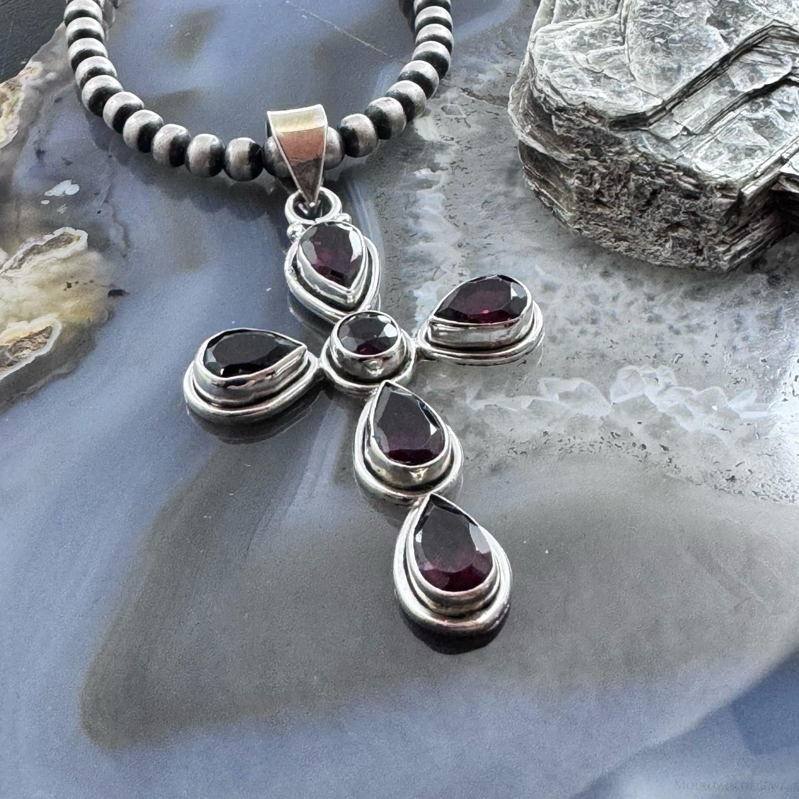 Sterling Silver Southwestern Style Garnet Decorated Cross Pendant For Women