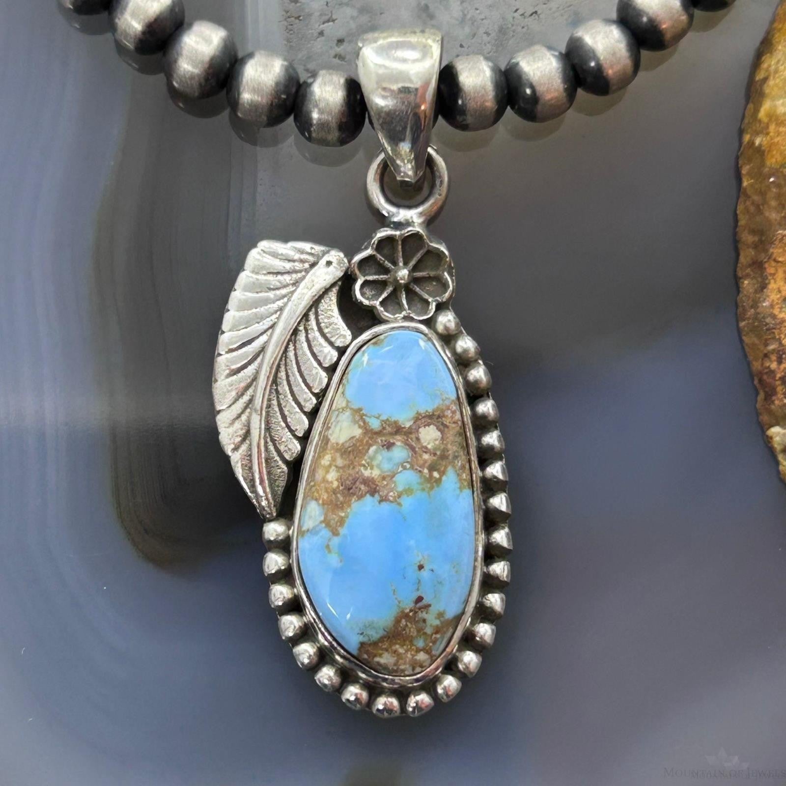 Sterling Silver Southwestern Style Golden Hill Turquoise Leaves Pendant For Women #4