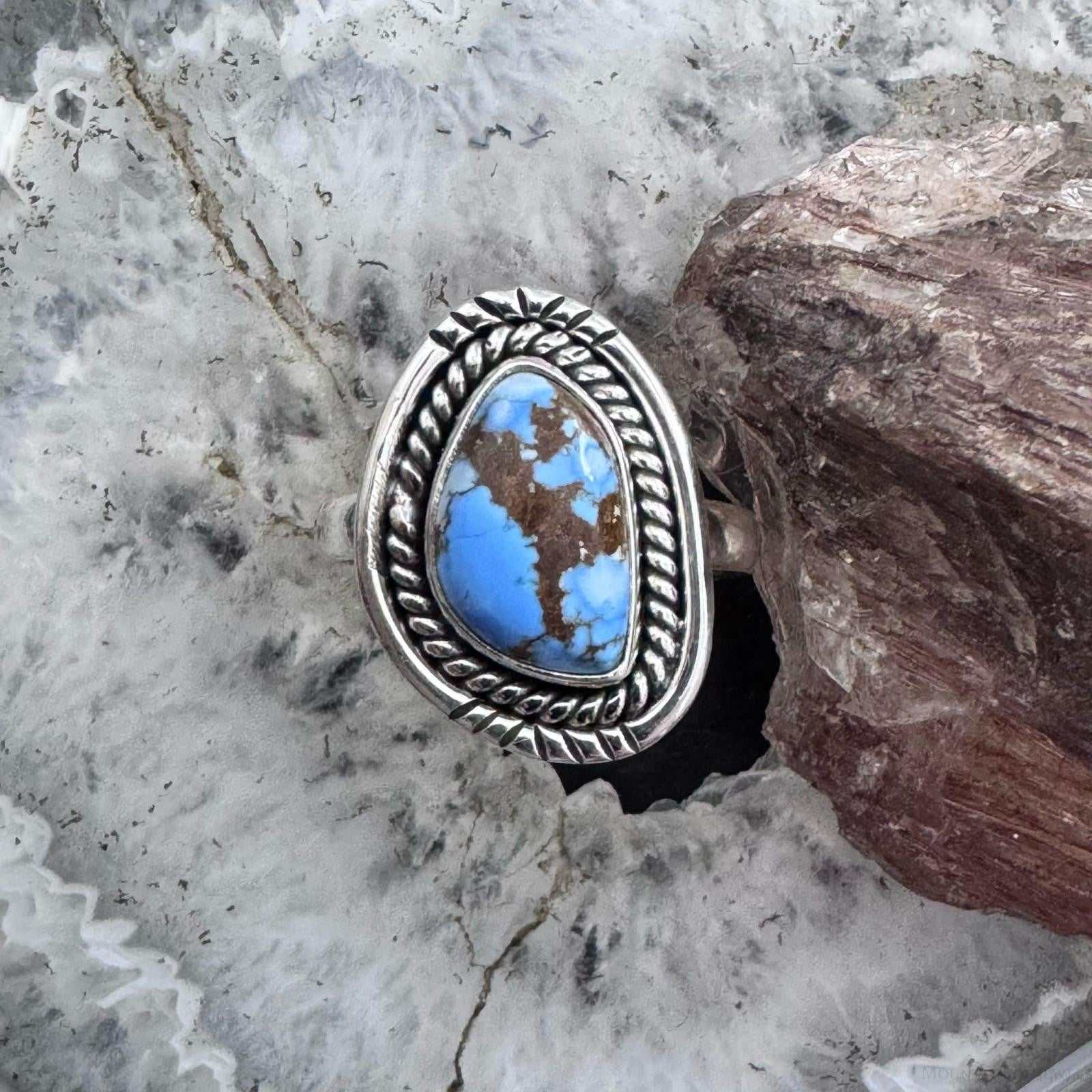 Sterling Silver Southwestern Style Golden Hill Turquoise Ring Size 6.5 For Women