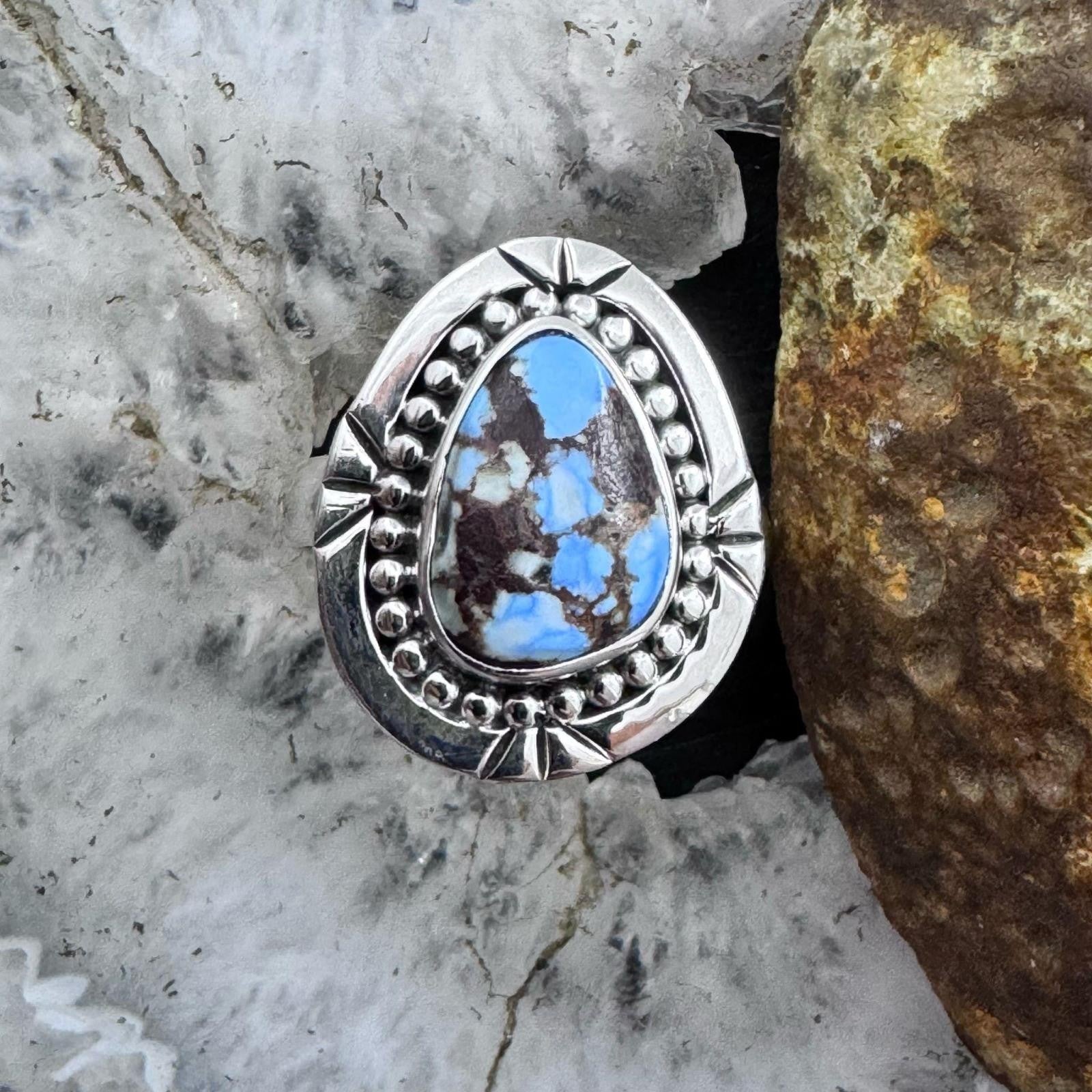 Sterling Silver Southwestern Style Golden Hill Turquoise Ring Size 8 For Women