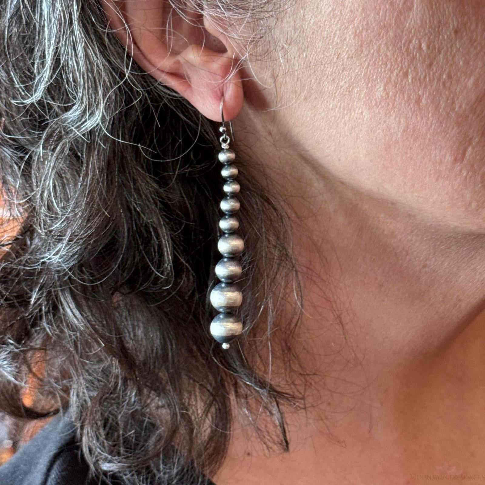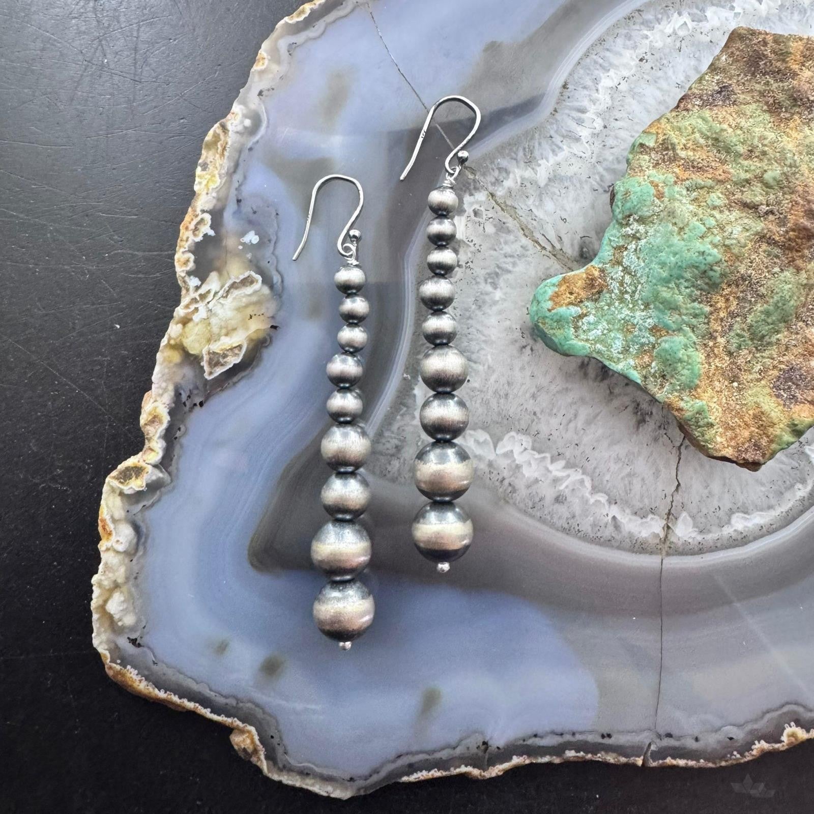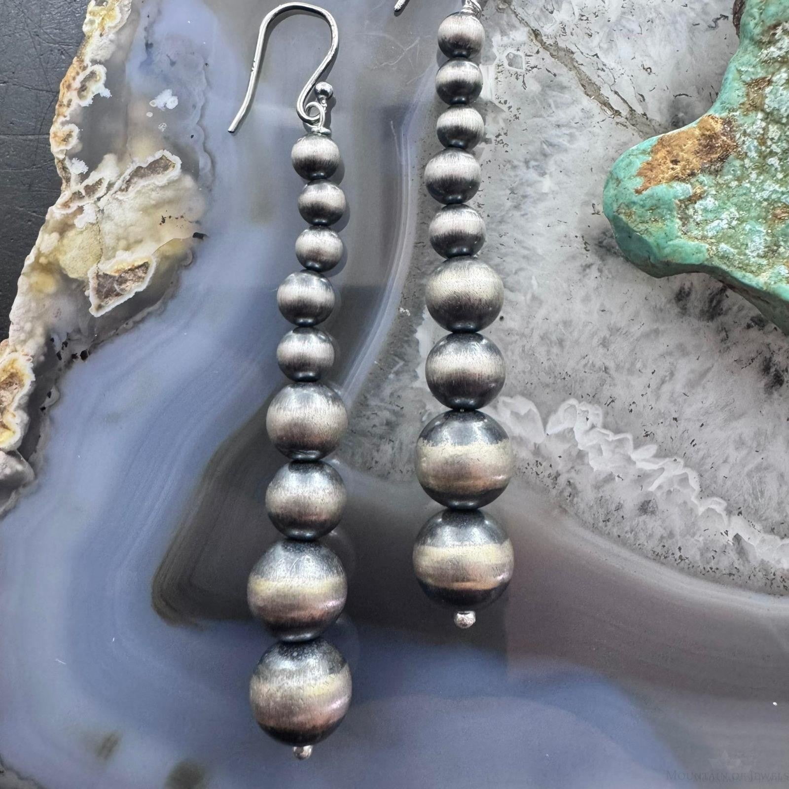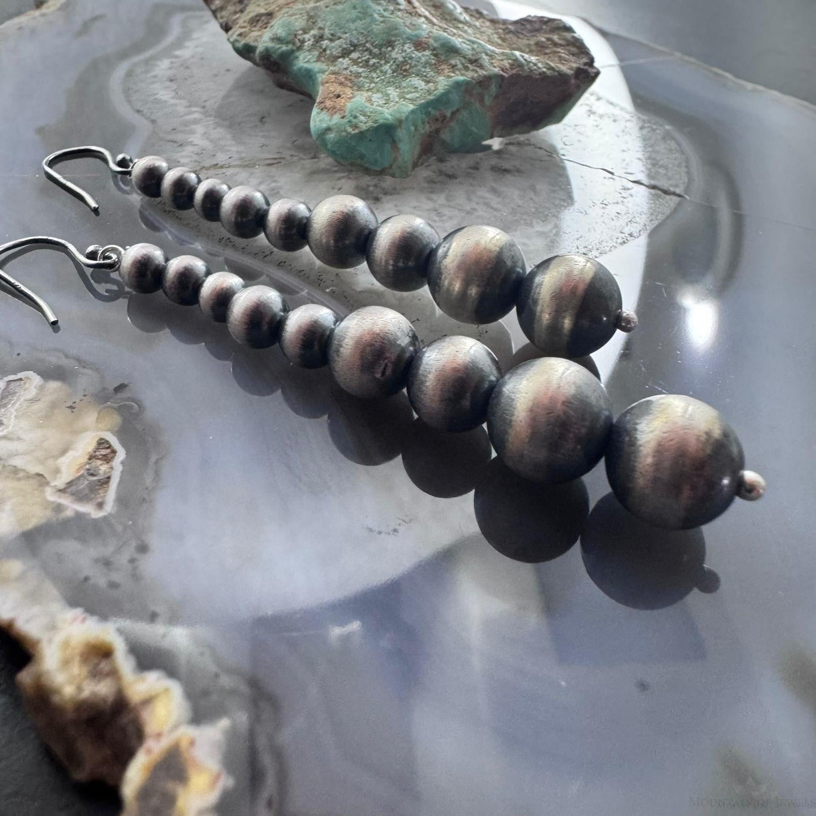 Sterling Silver Southwestern Style Graduated 4-10mm Navajo Pearl Dangle Earrings For Women.