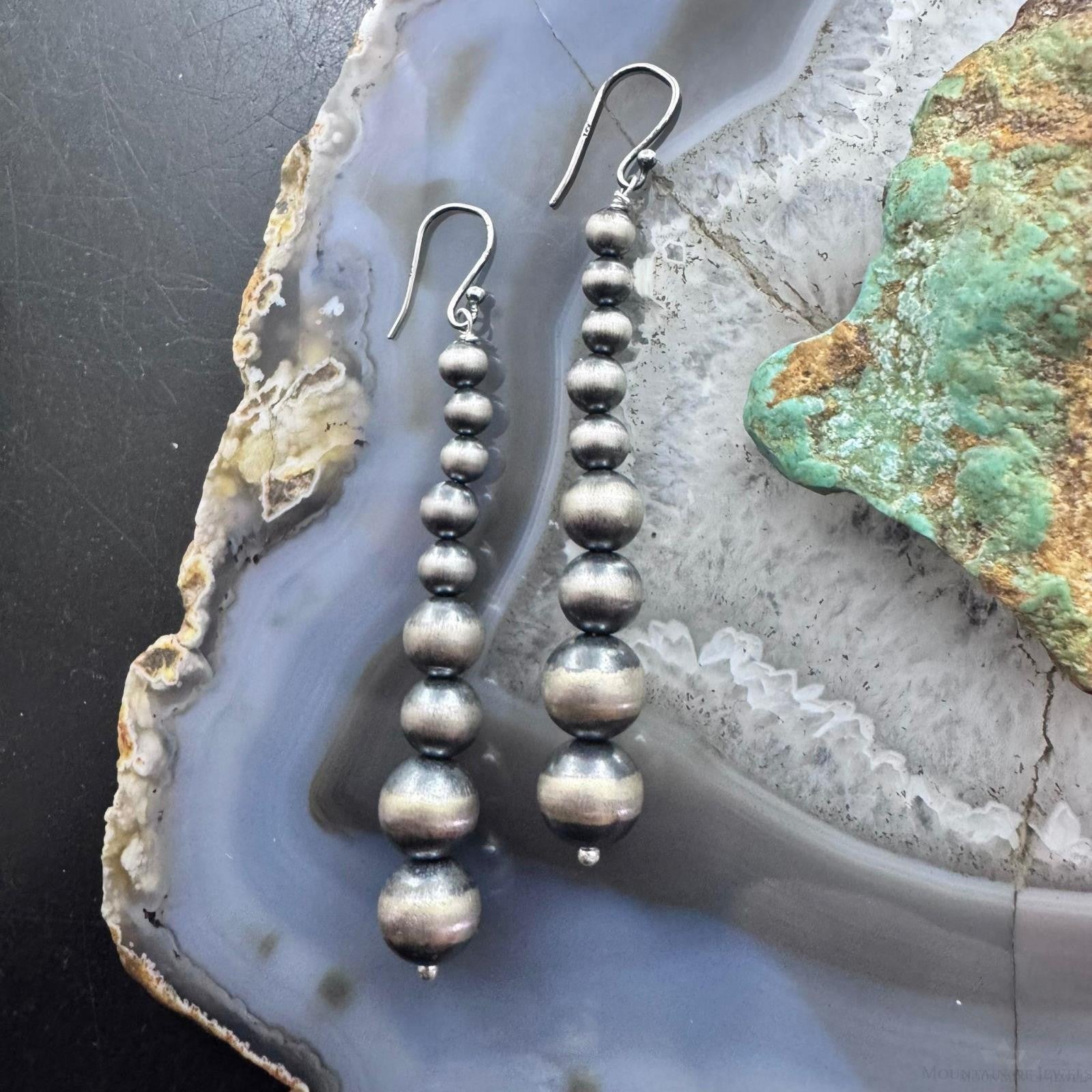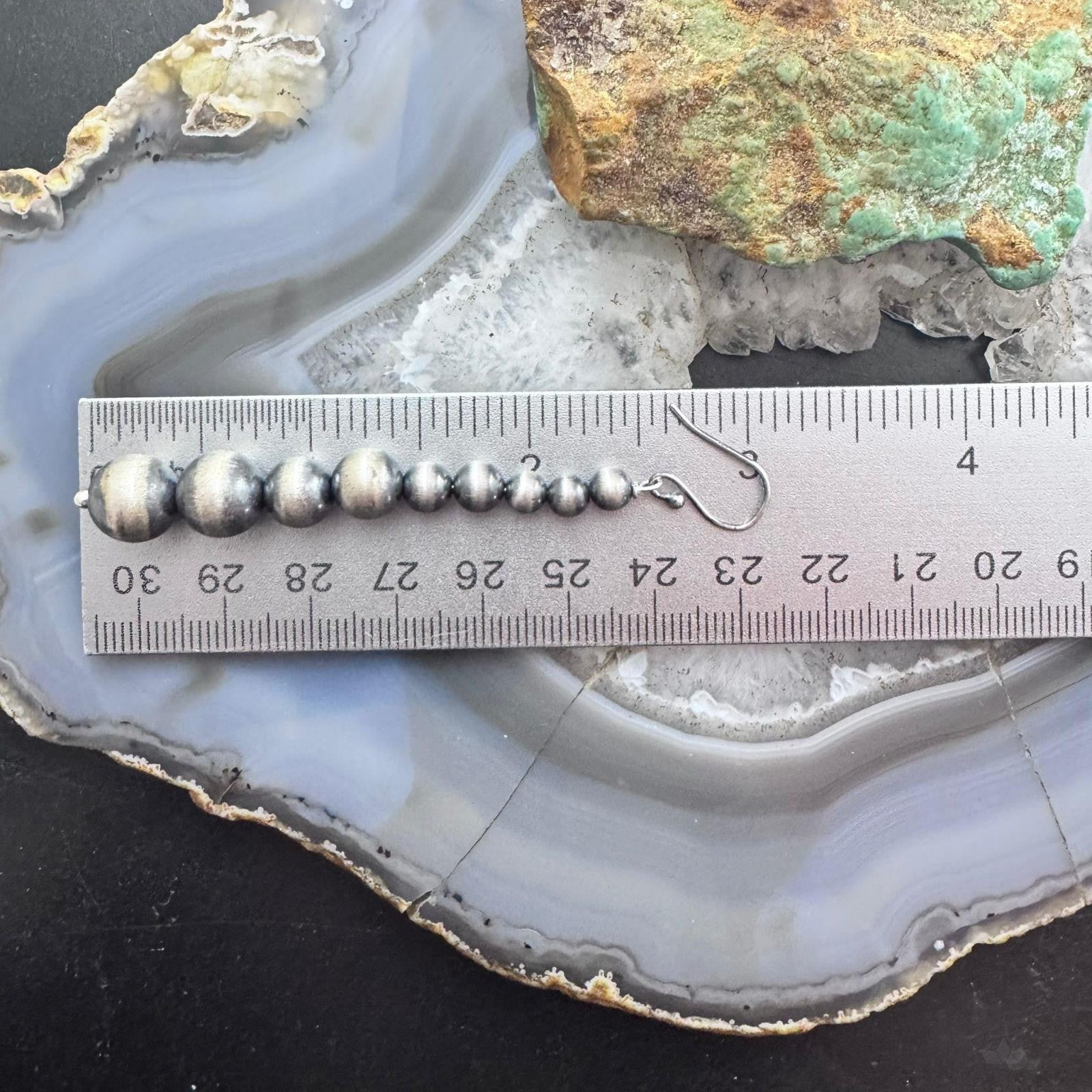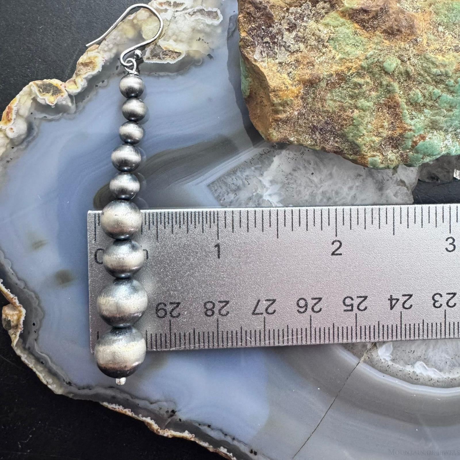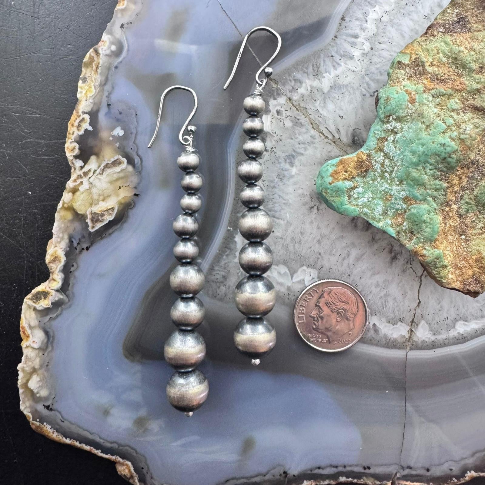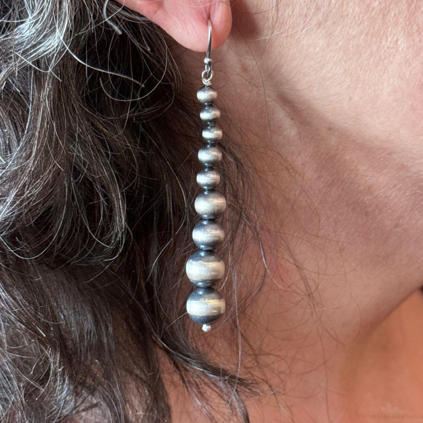 Sterling Silver Southwestern Style Graduated 4-10mm Navajo Pearl Dangle Earrings For Women.