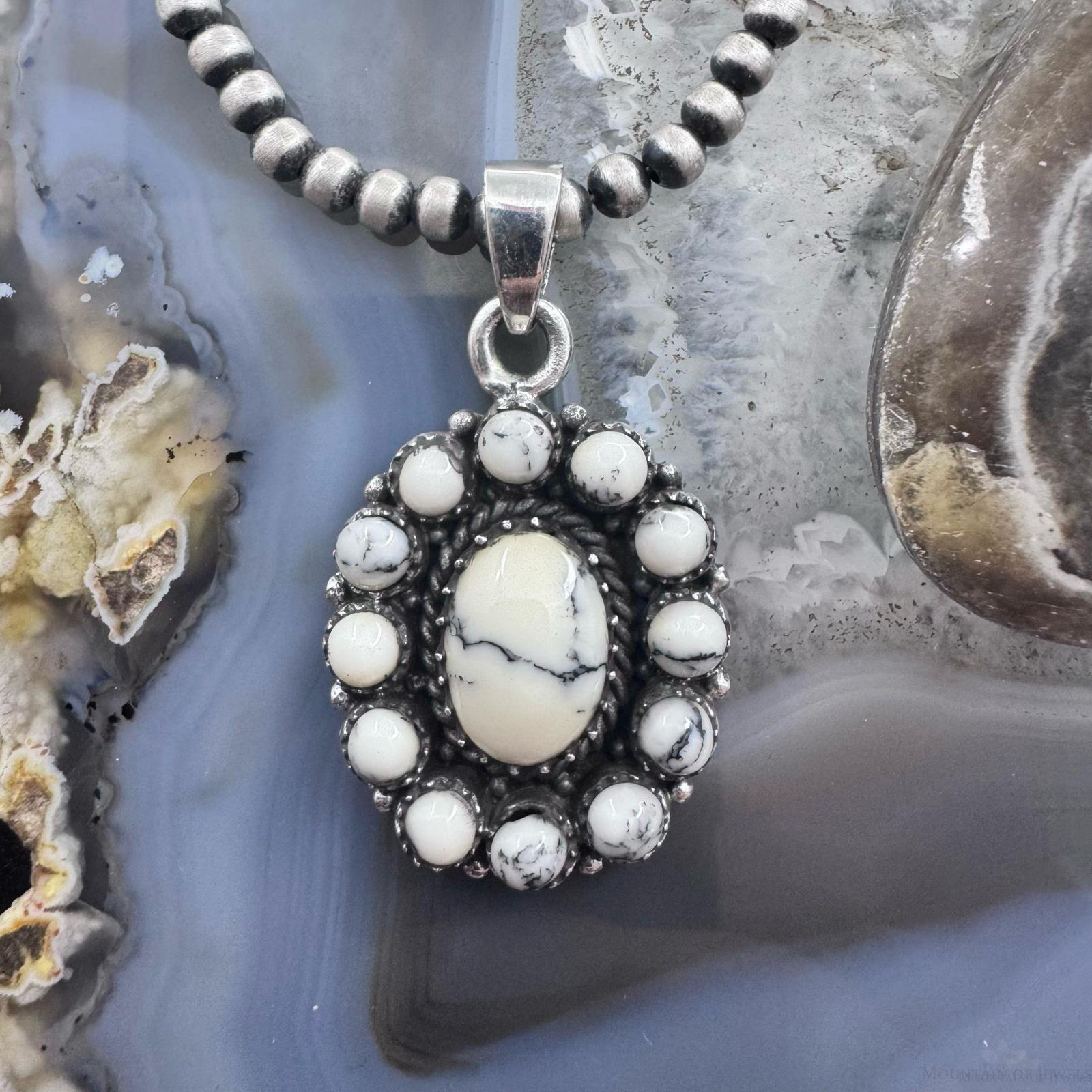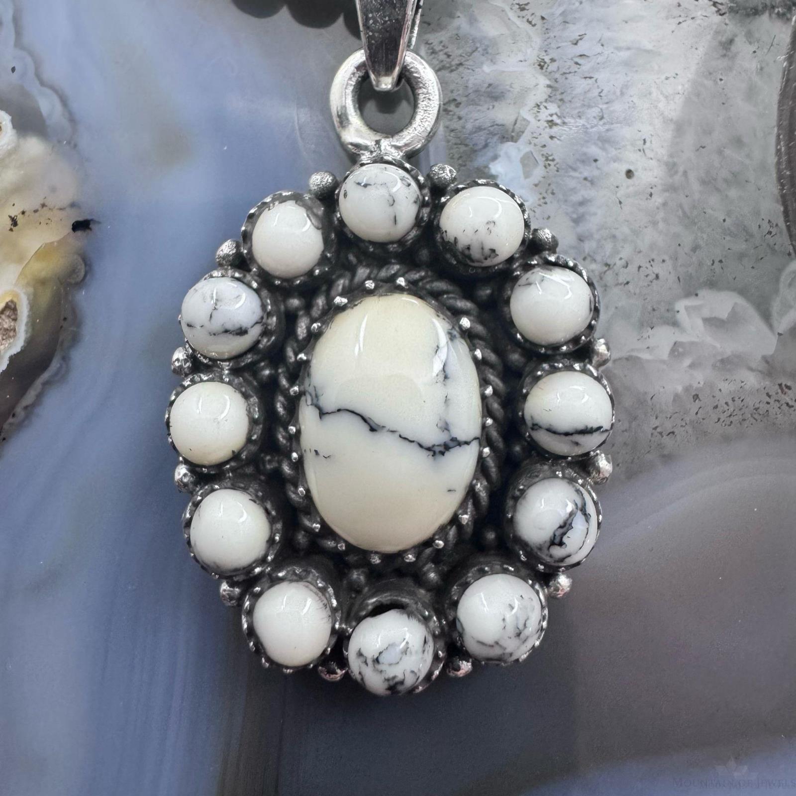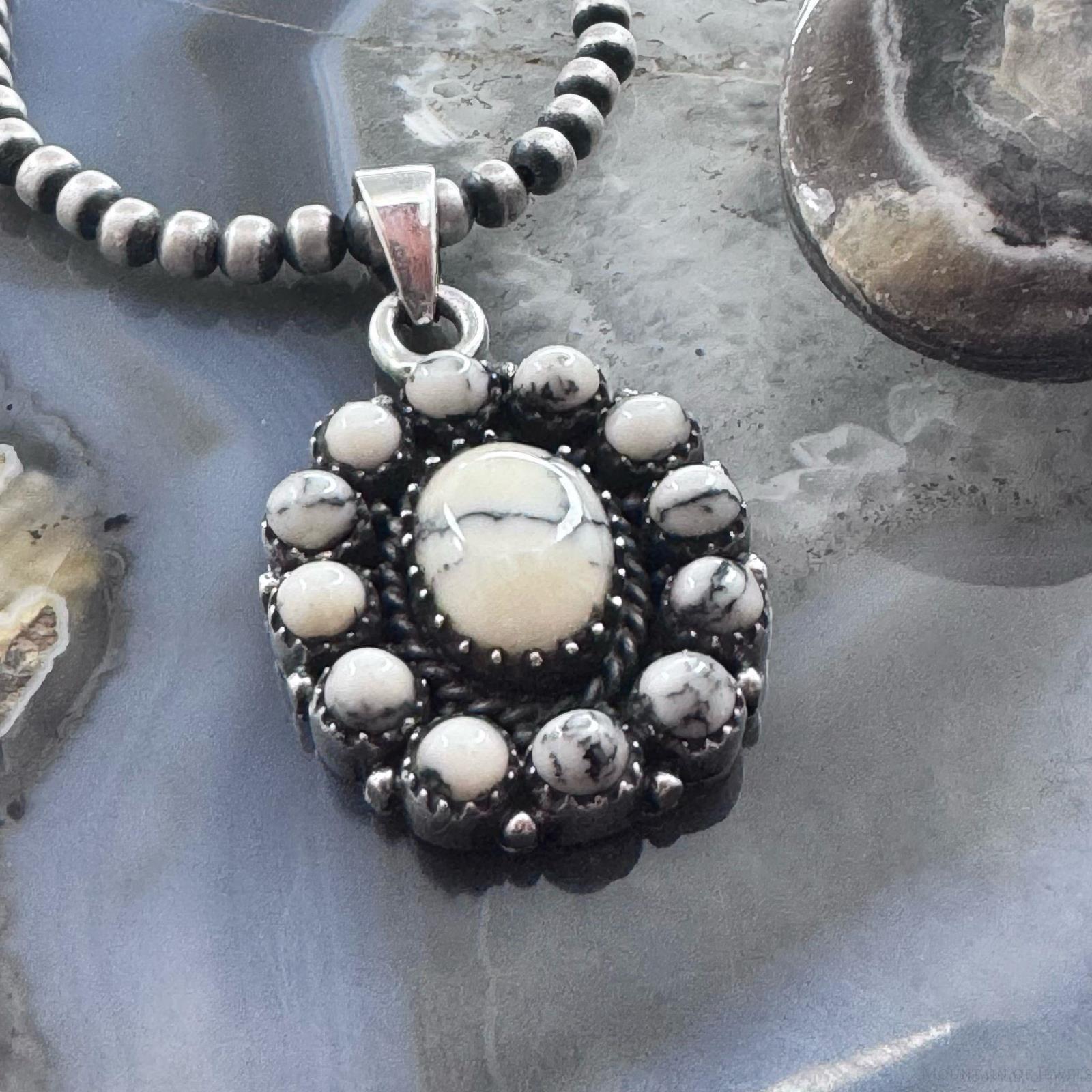 Sterling Silver Southwestern Style Howlite Cluster Decorated Pendant For Women