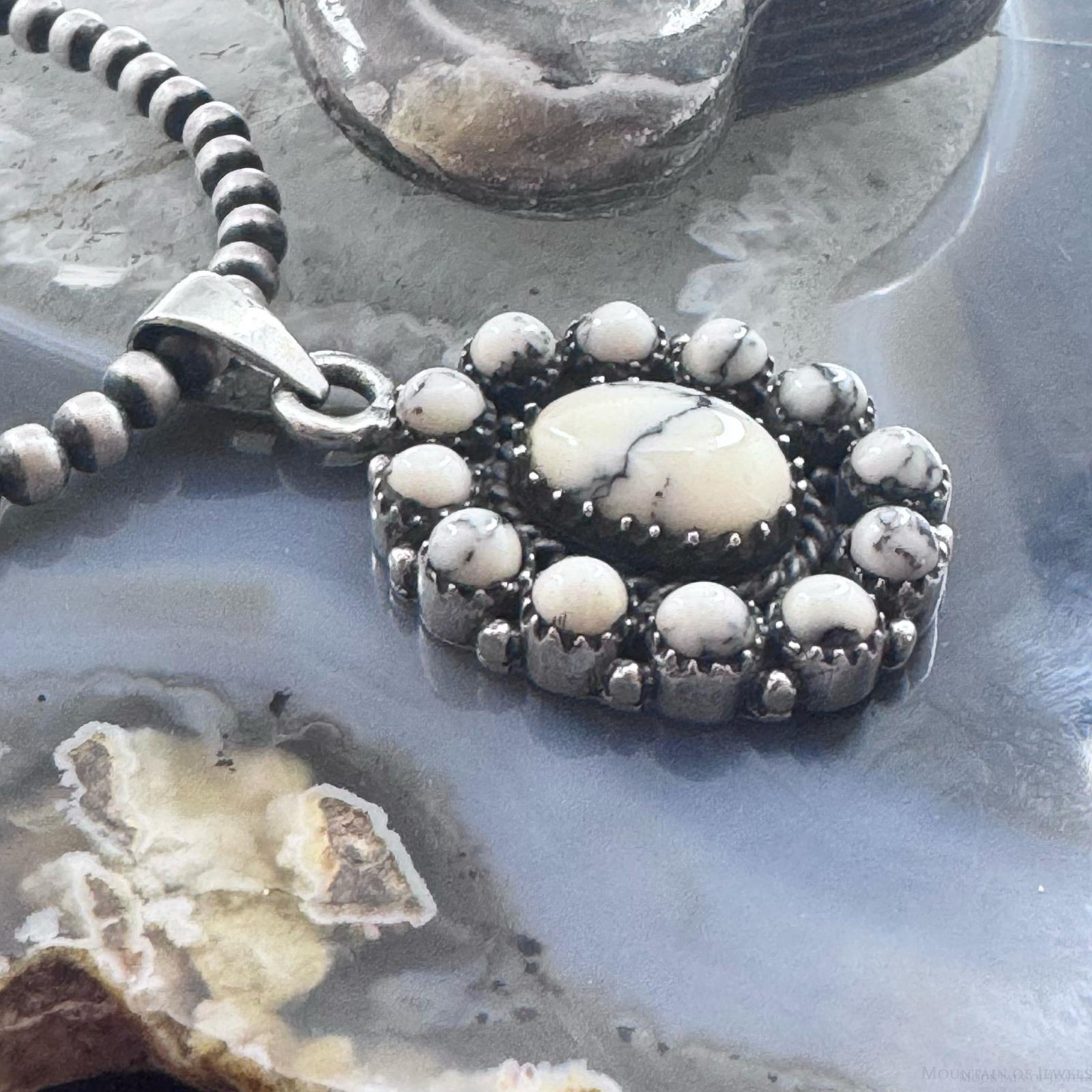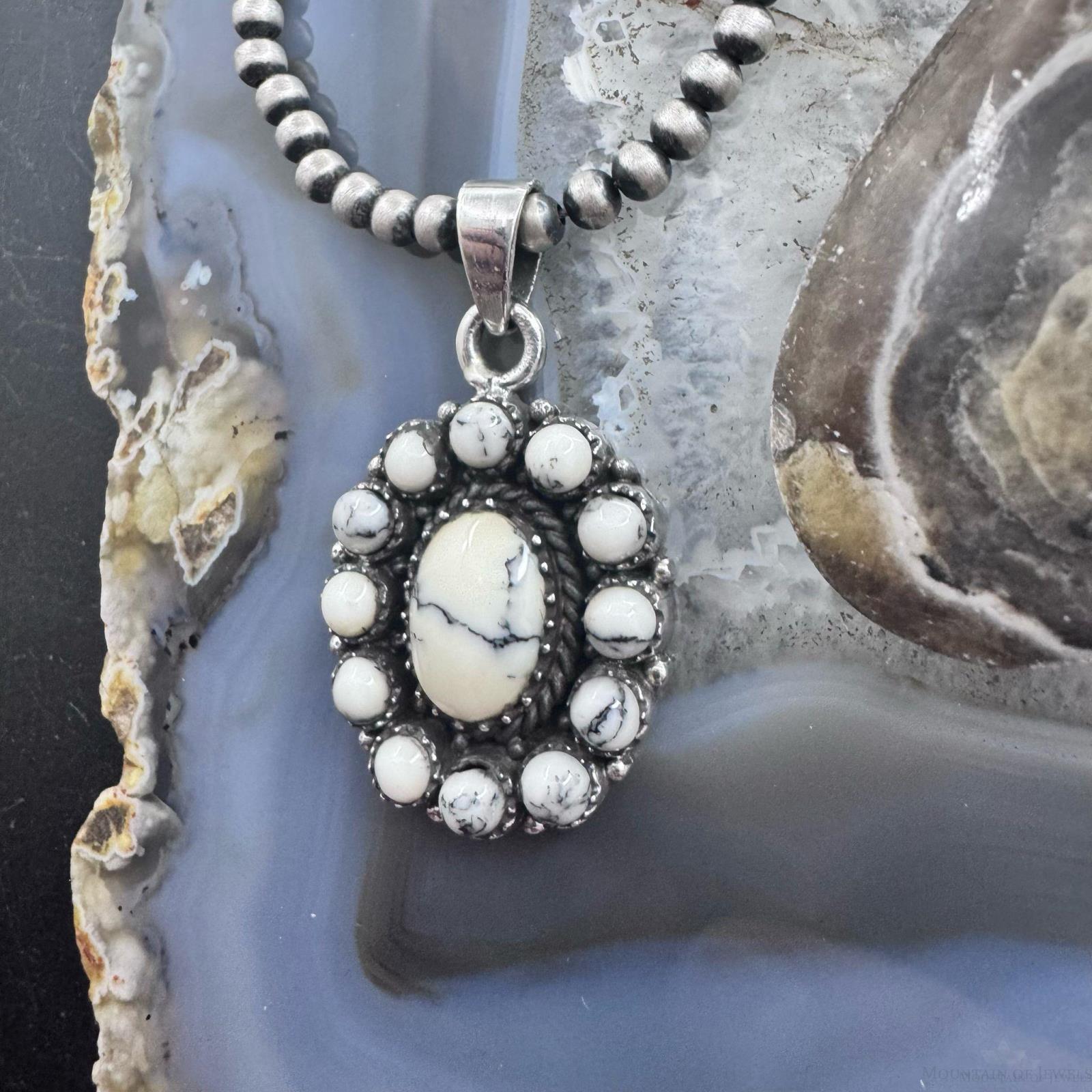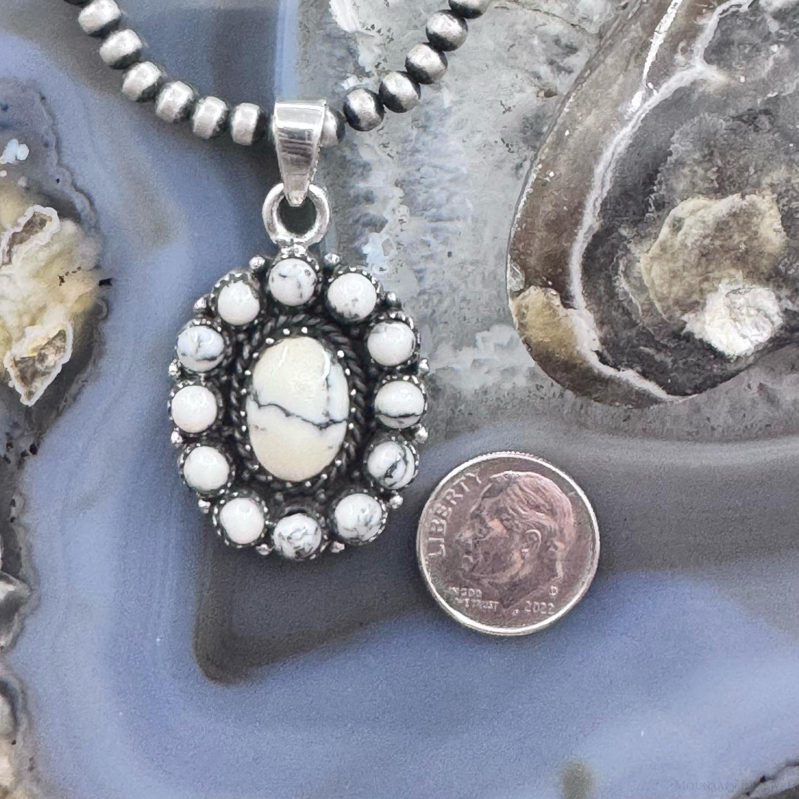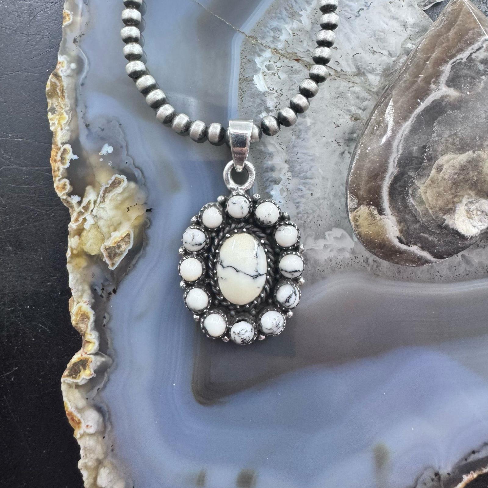 Sterling Silver Southwestern Style Howlite Cluster Decorated Pendant For Women