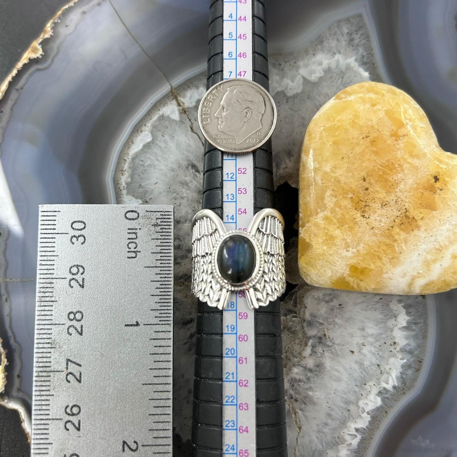 Sterling Silver Southwestern Style Labradorite Decorated Wing Ring For Women