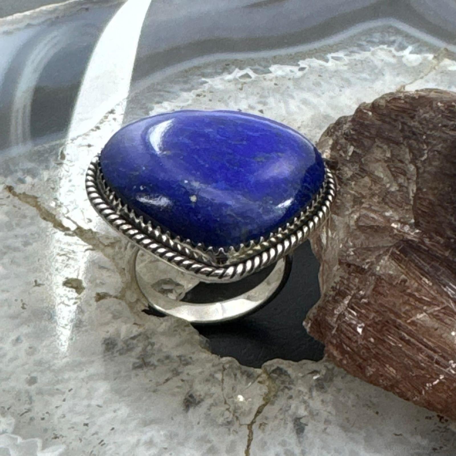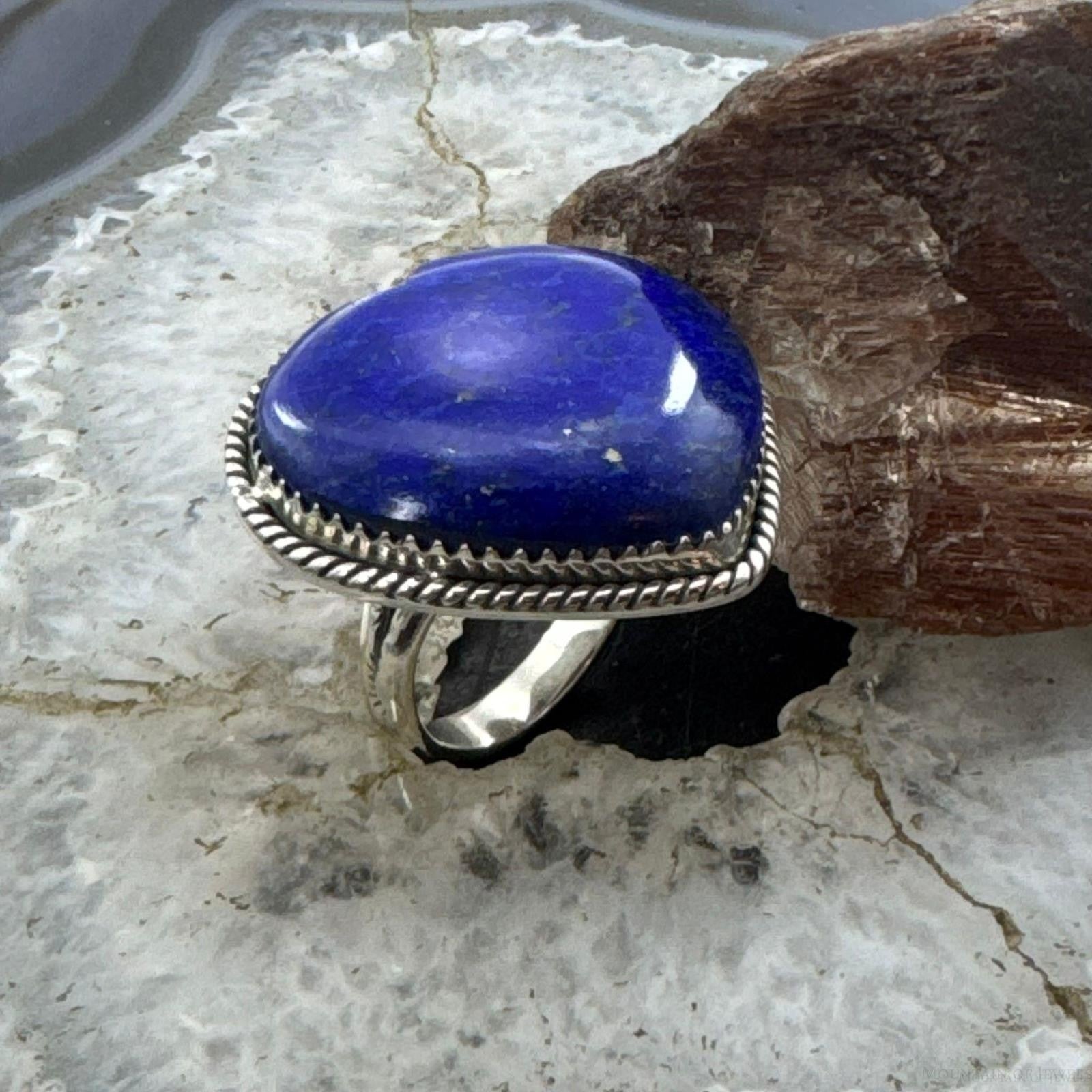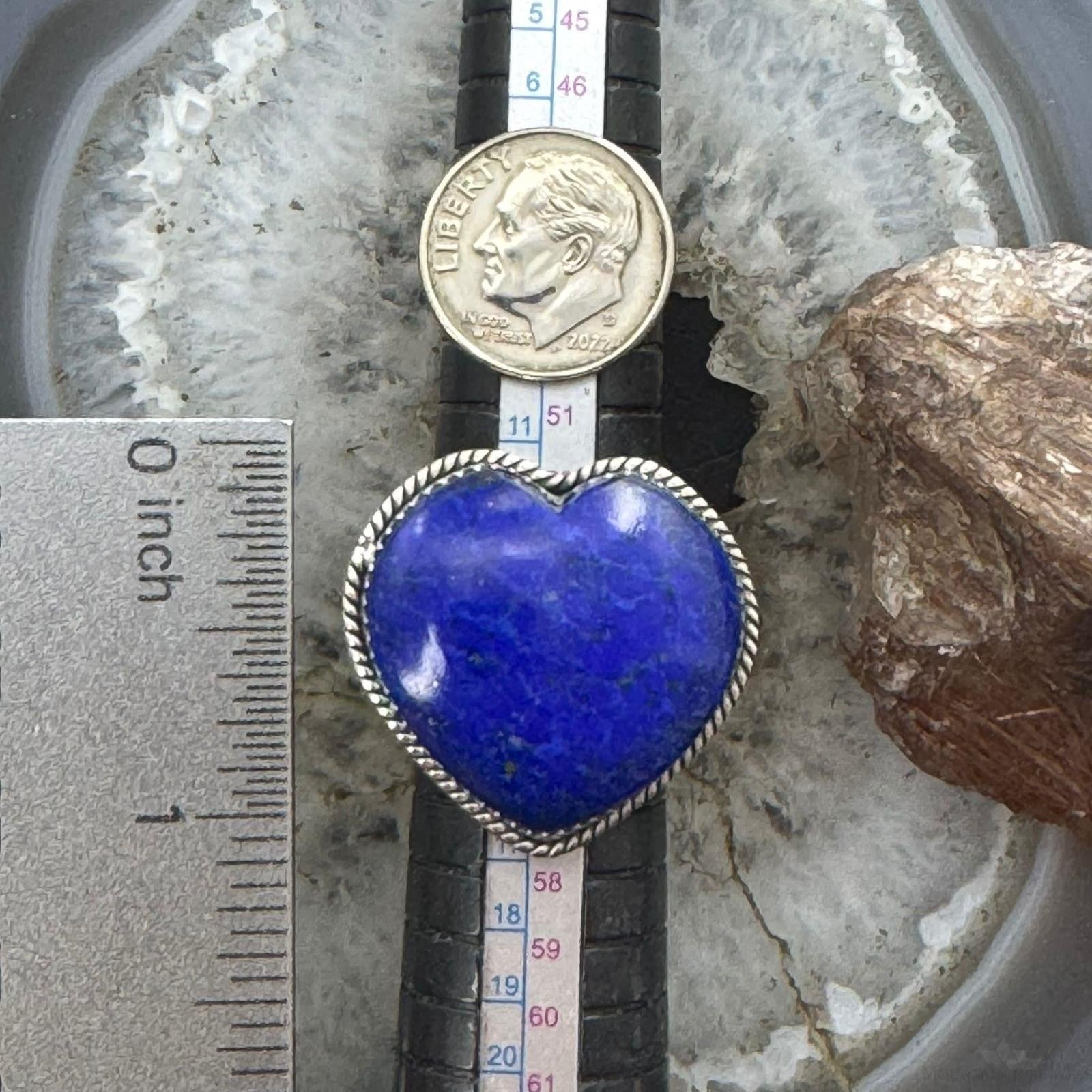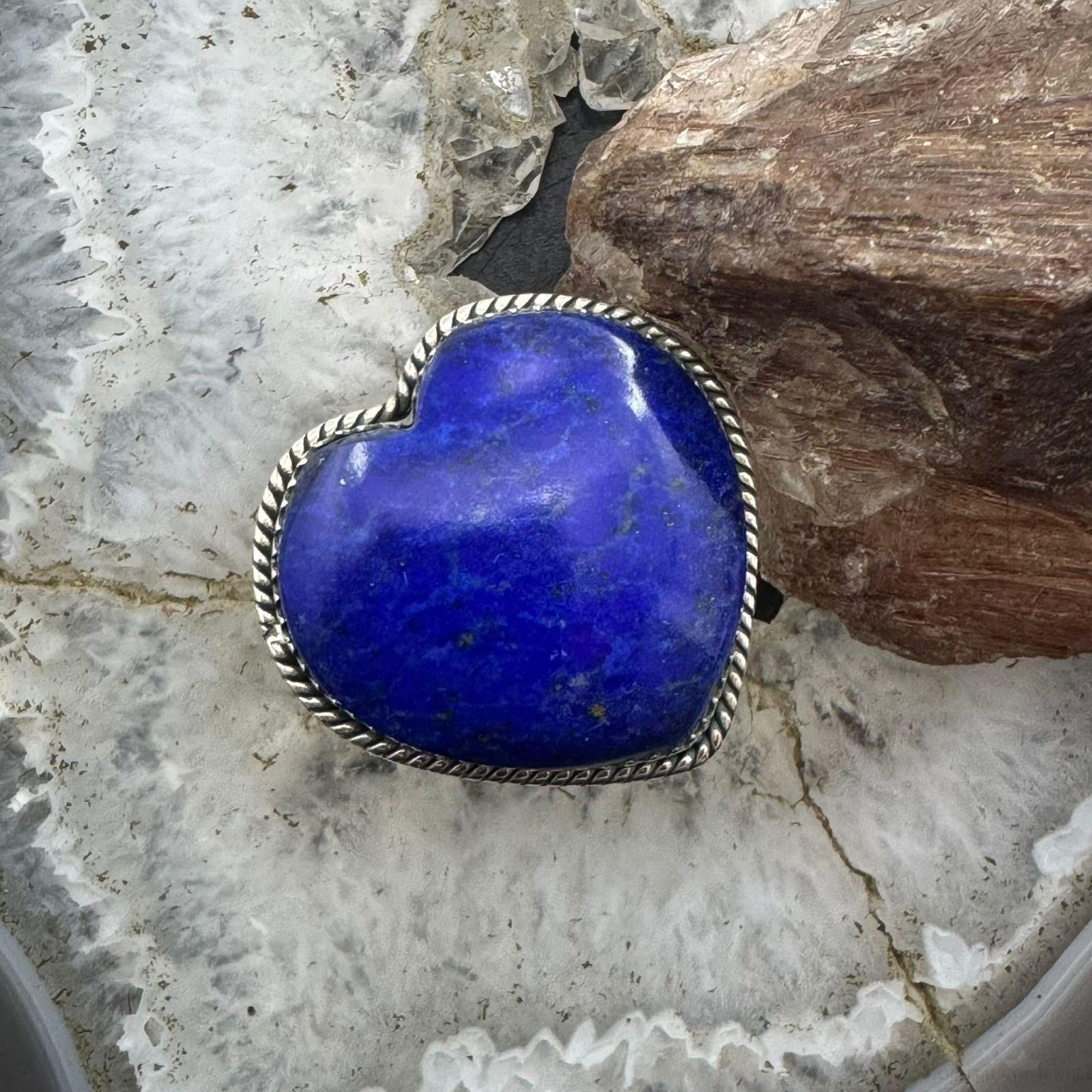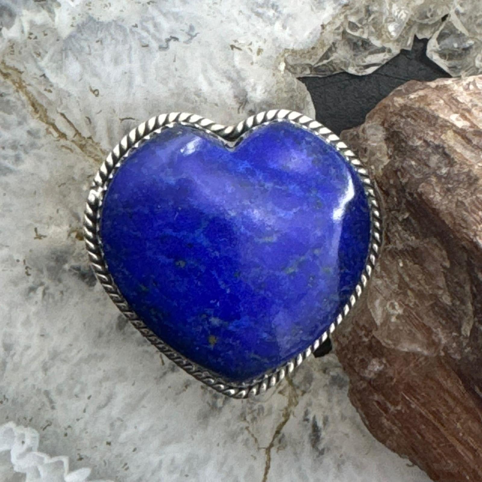 Sterling Silver Southwestern Style Lapis Heart Ring For Women.