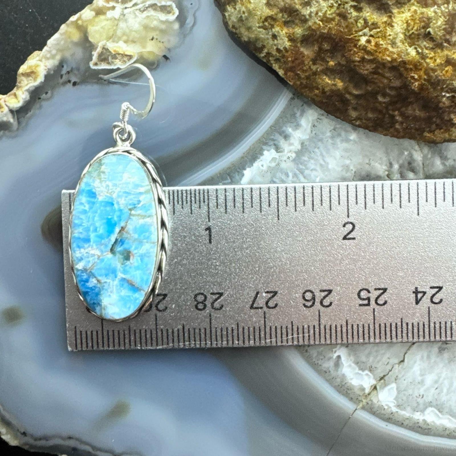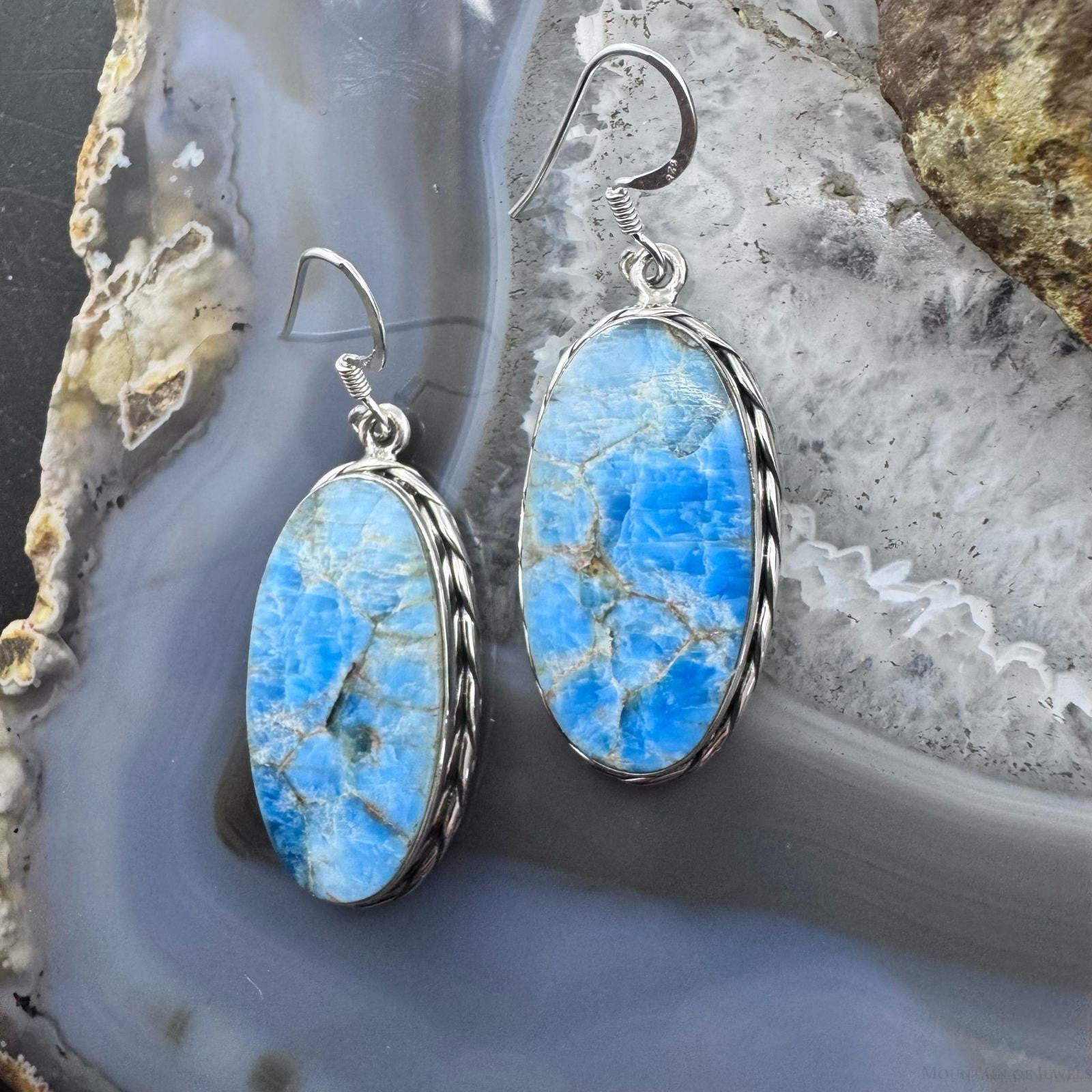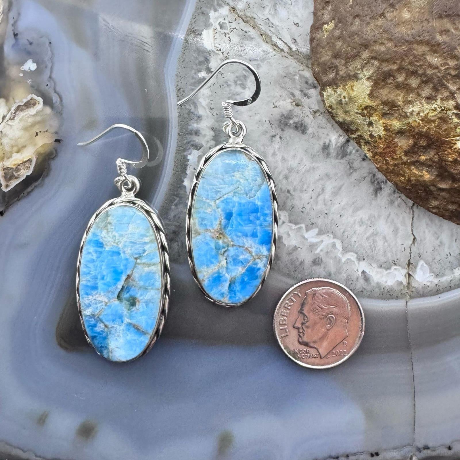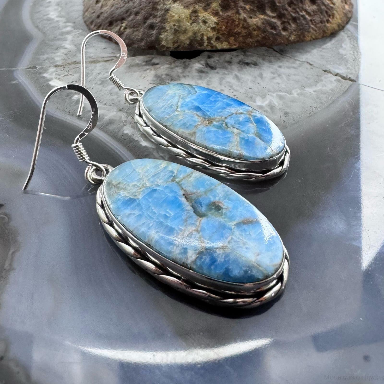 Sterling Silver Southwestern Style Large Oval Apatite Dangle Earrings For Women