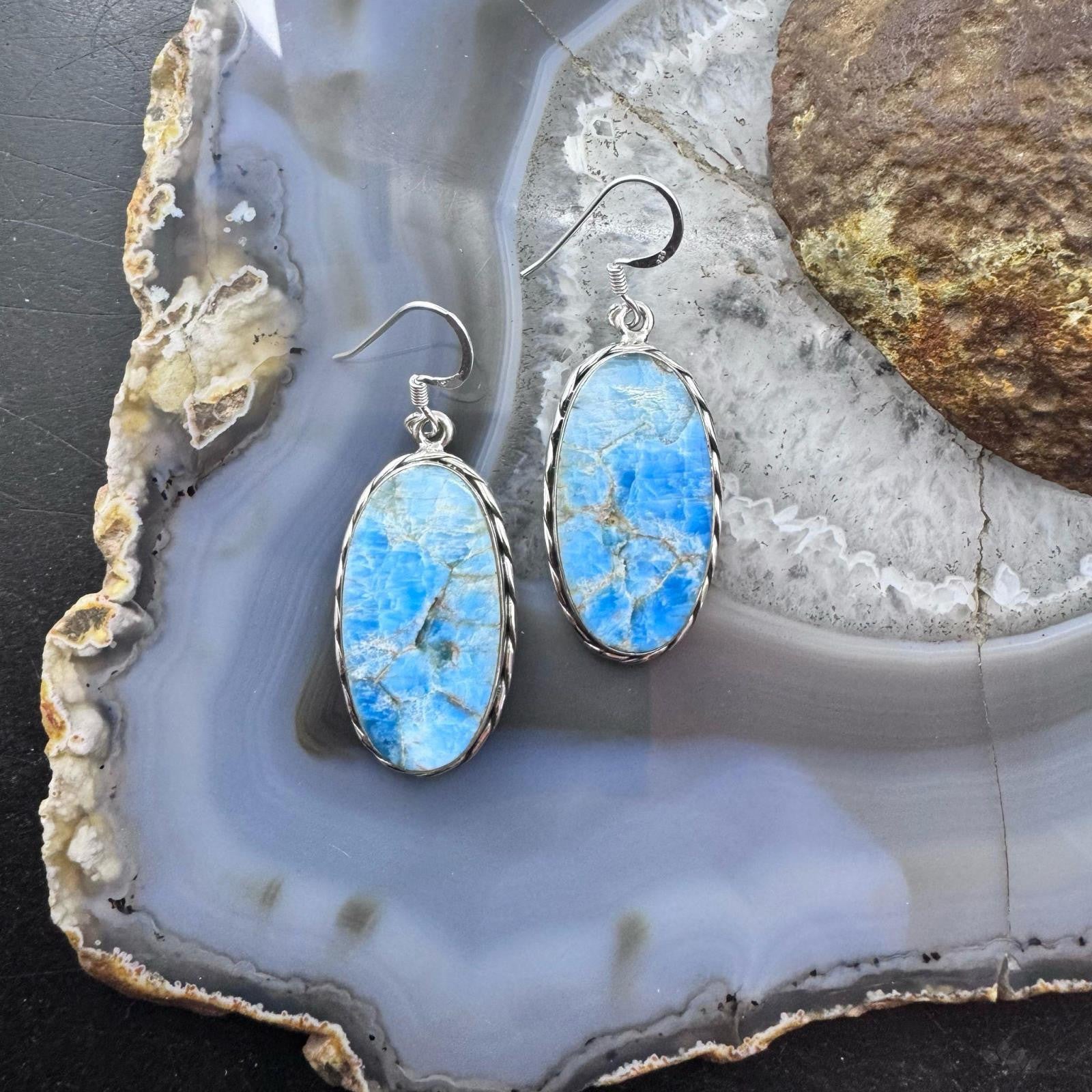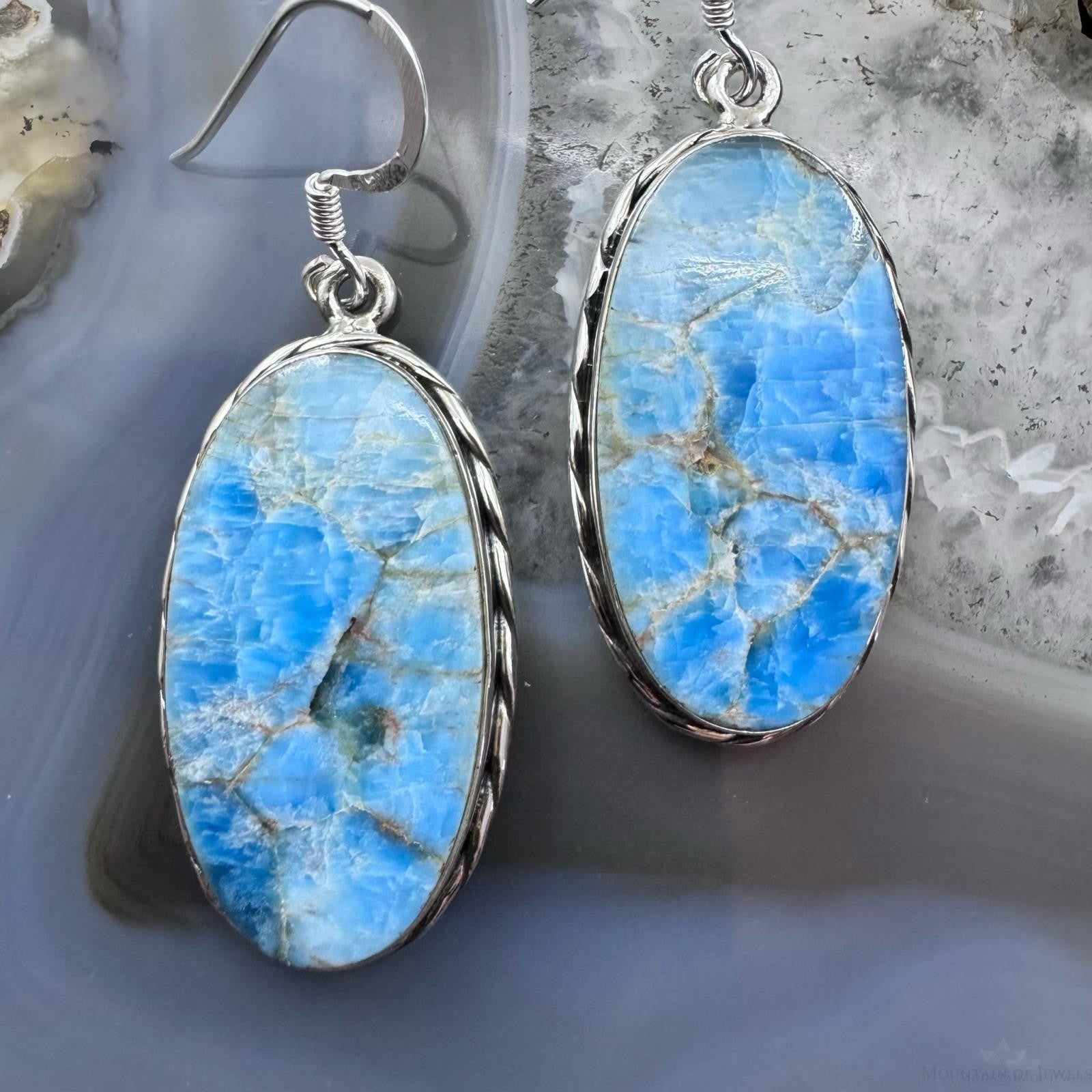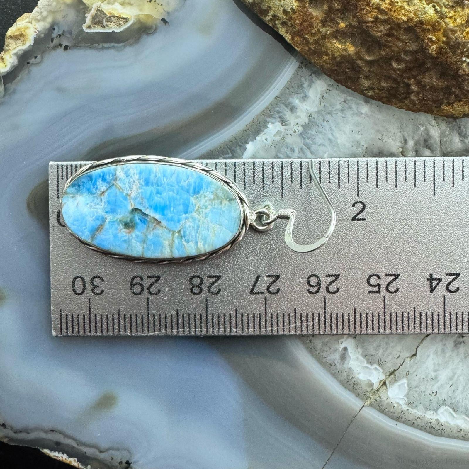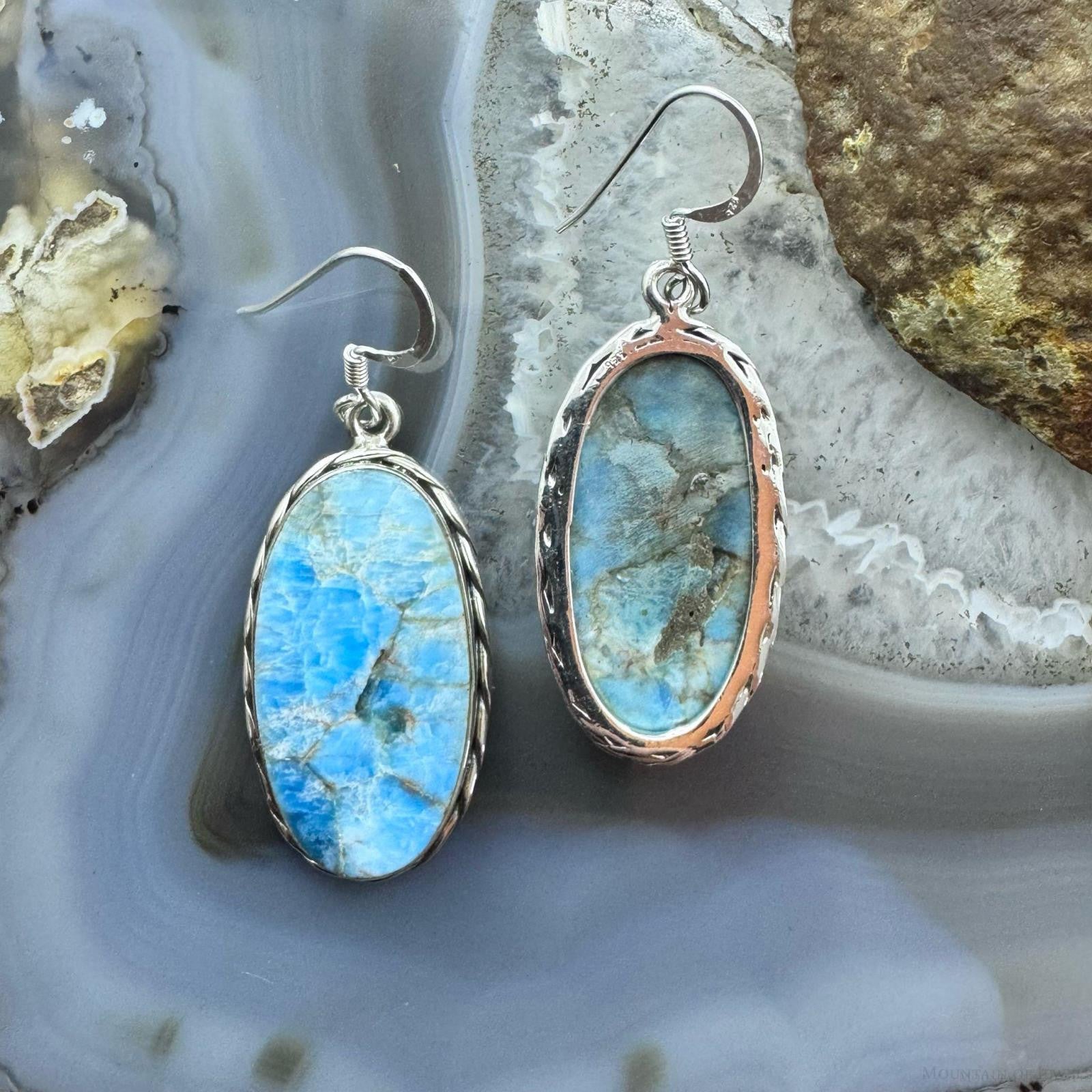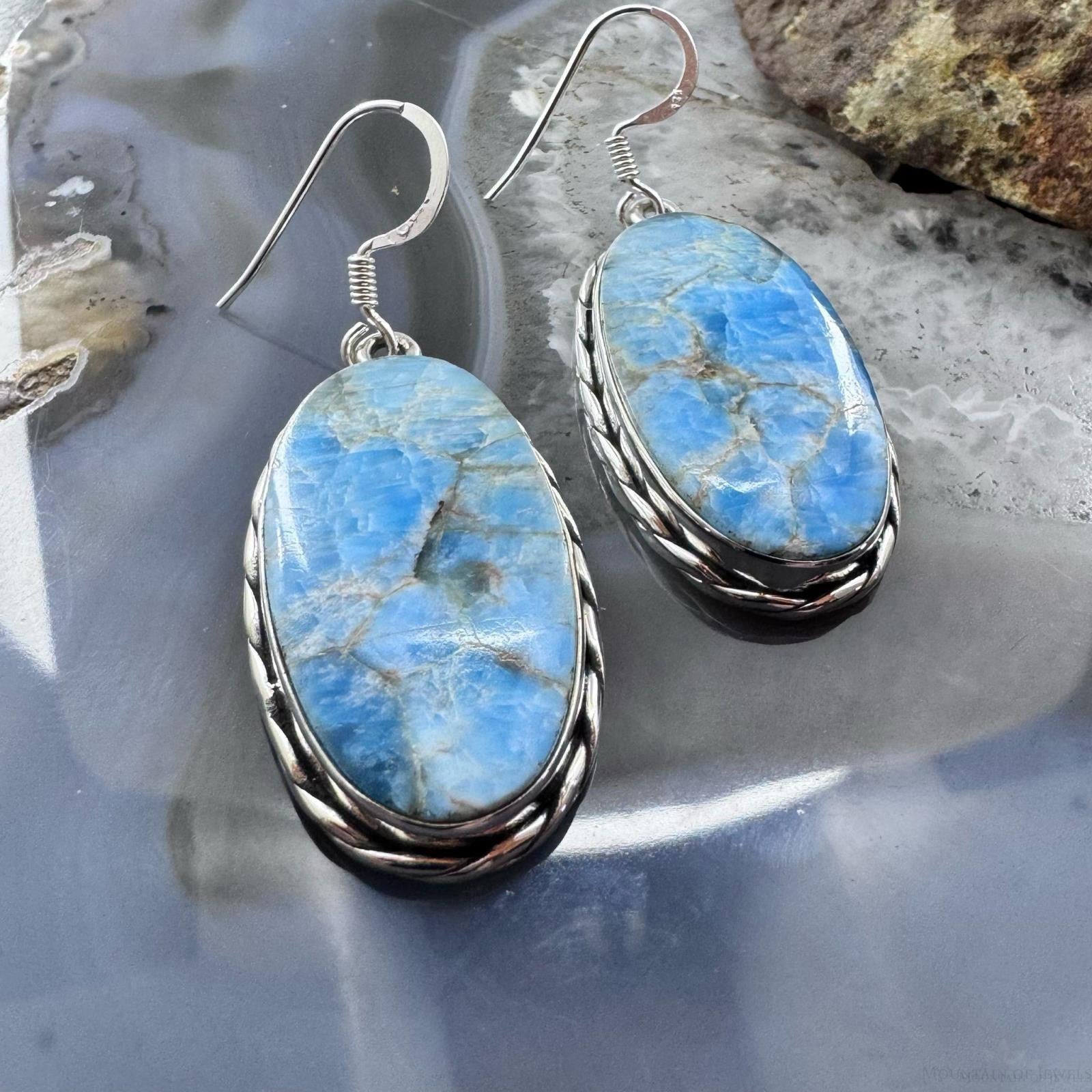 Sterling Silver Southwestern Style Large Oval Apatite Dangle Earrings For Women