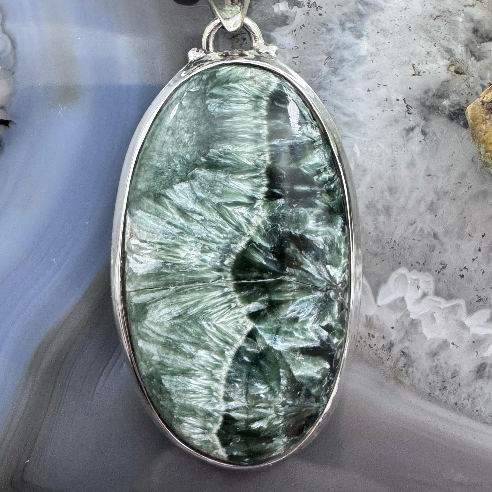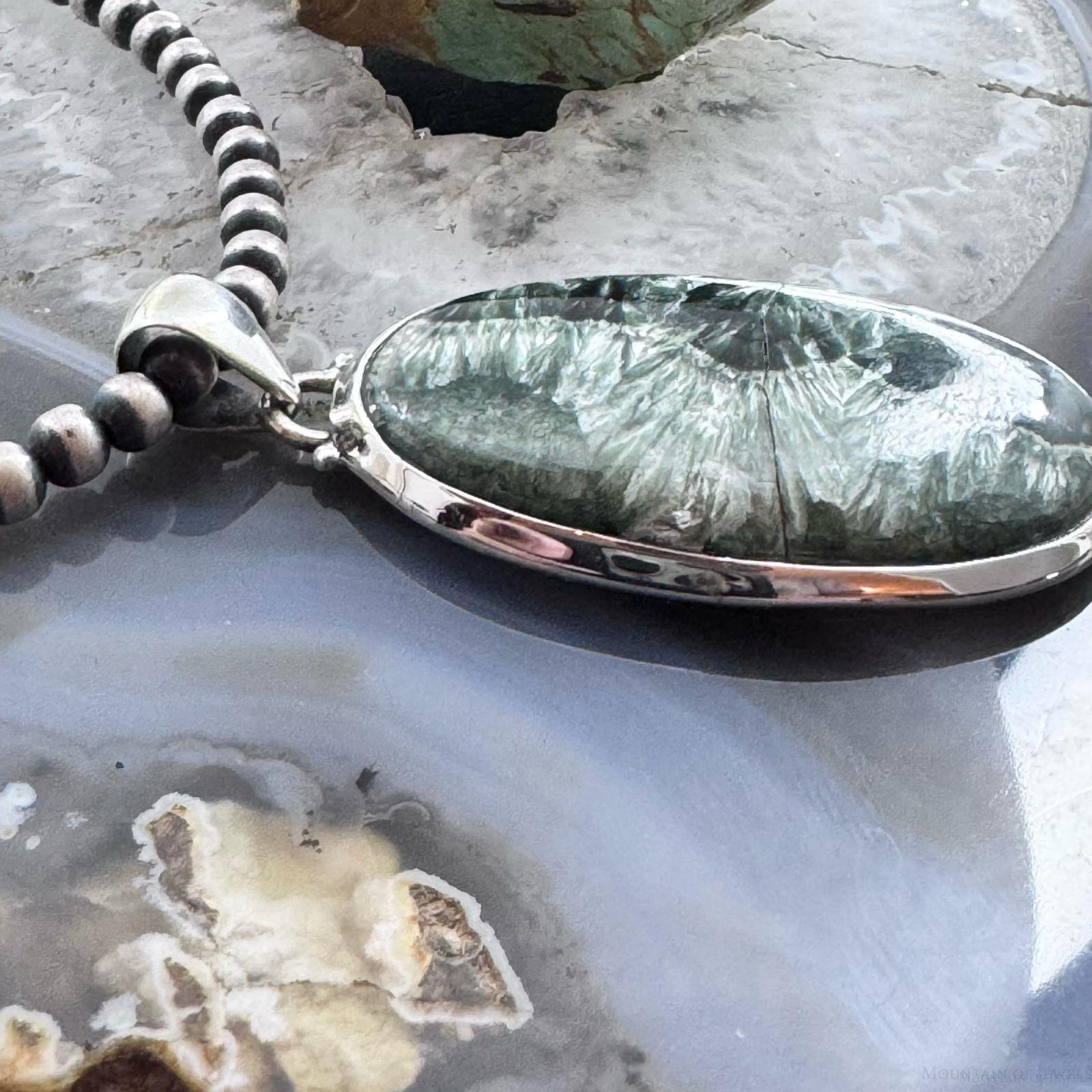 Sterling Silver Southwestern Style Large Oval Serpentine Pendant For Women
