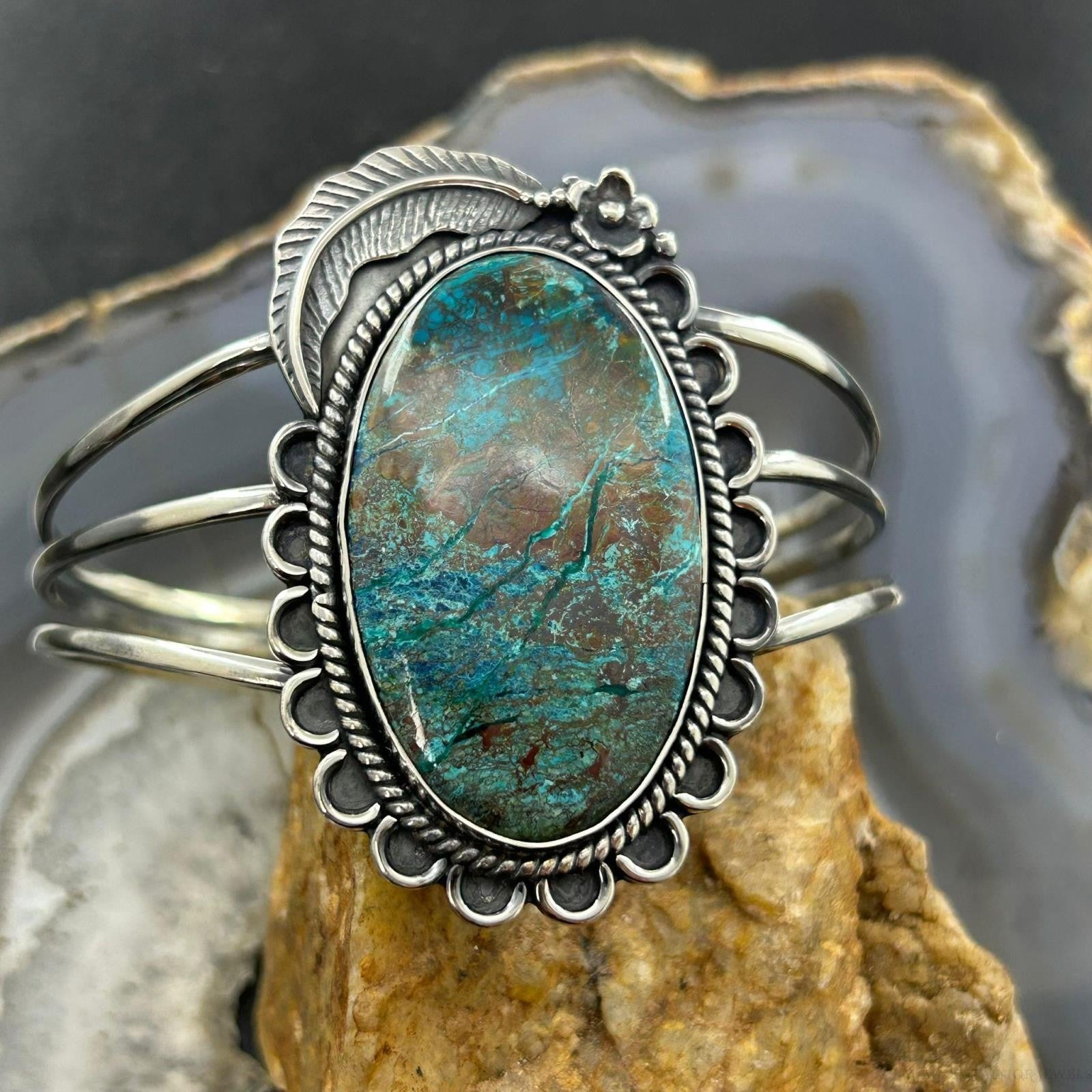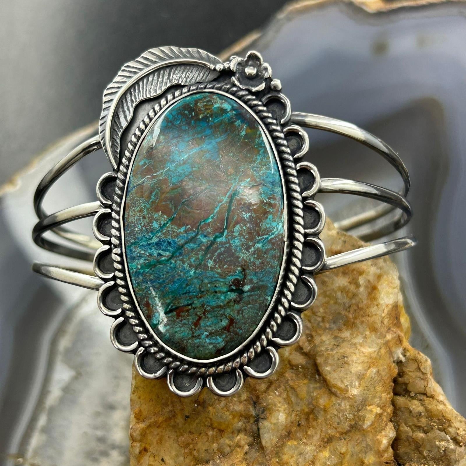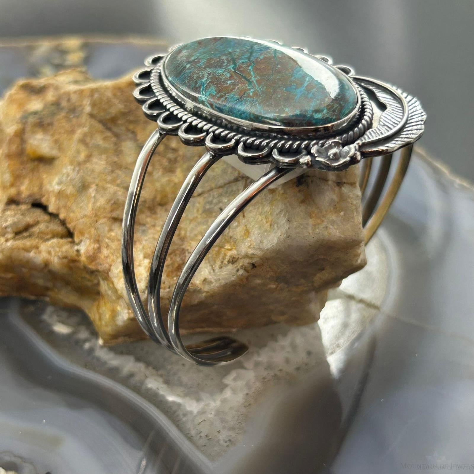 Sterling Silver Southwestern Style Large Oval Shattuckite Bracelet For Women