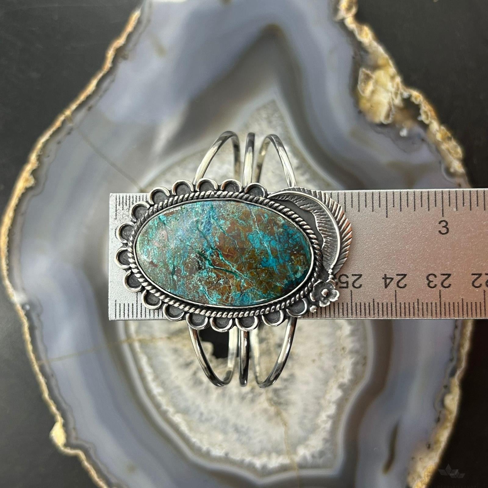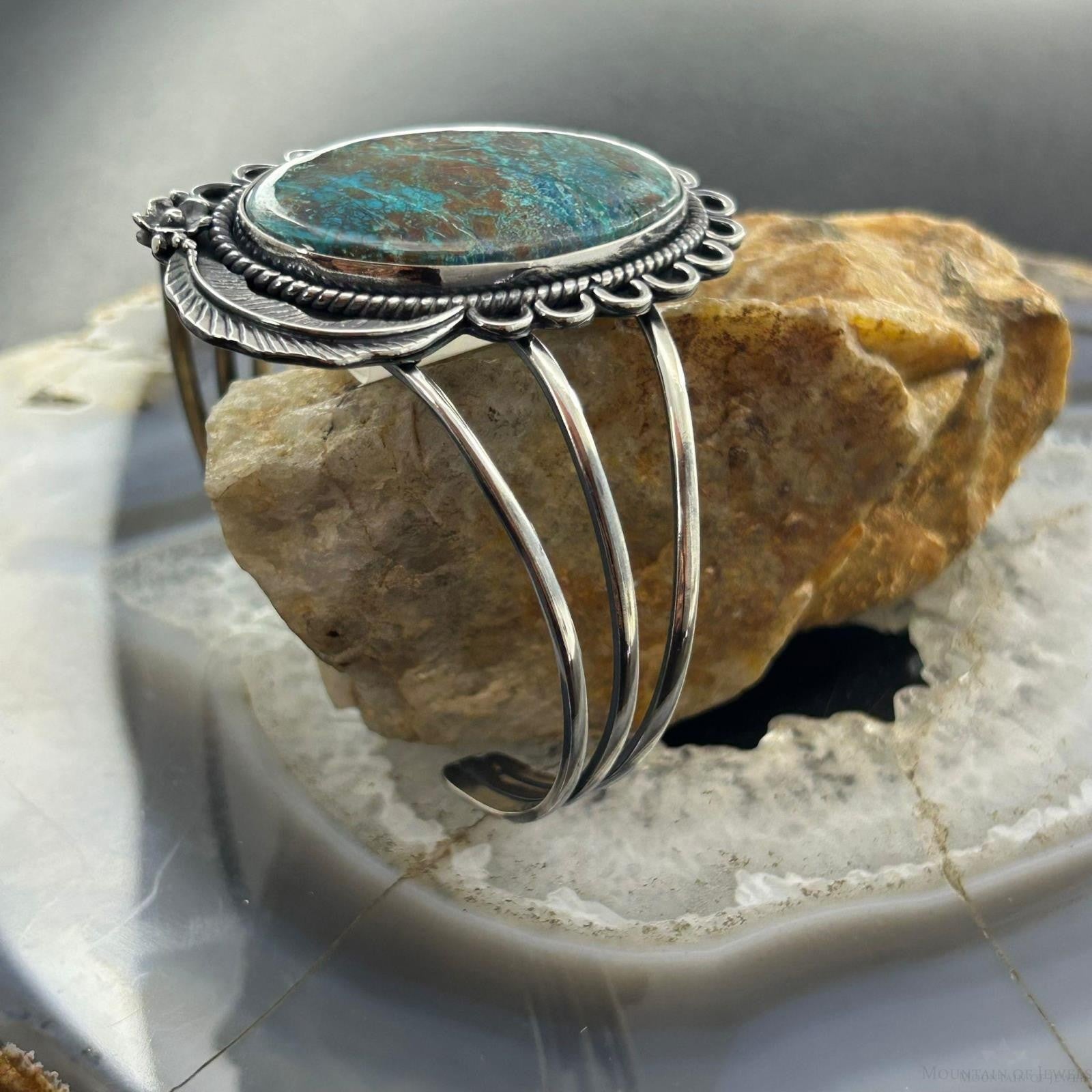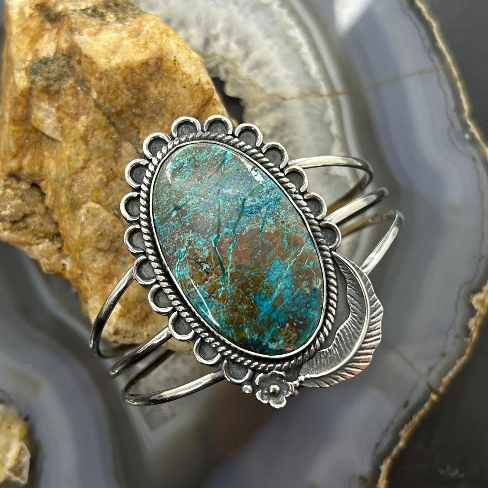 Sterling Silver Southwestern Style Large Oval Shattuckite Bracelet For Women