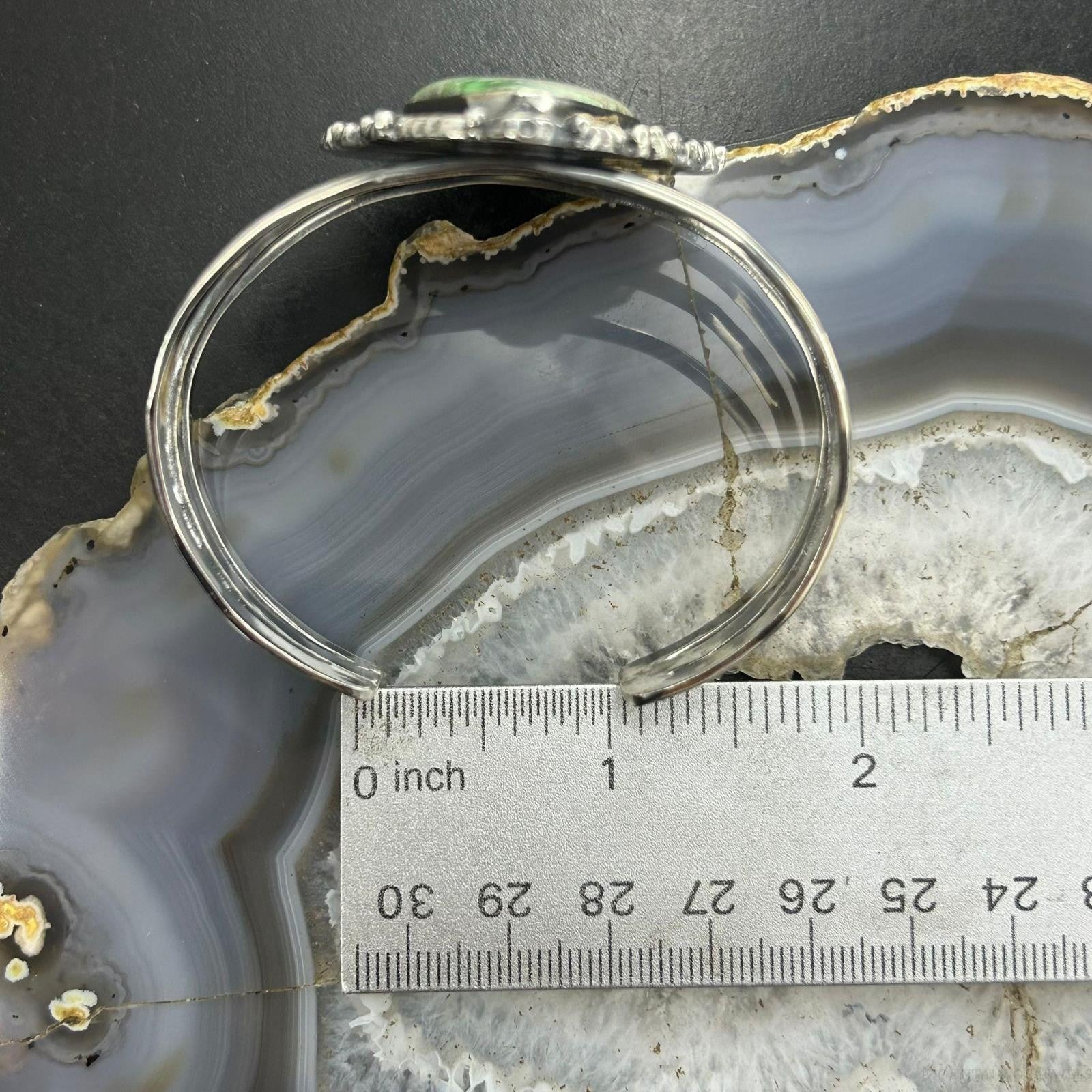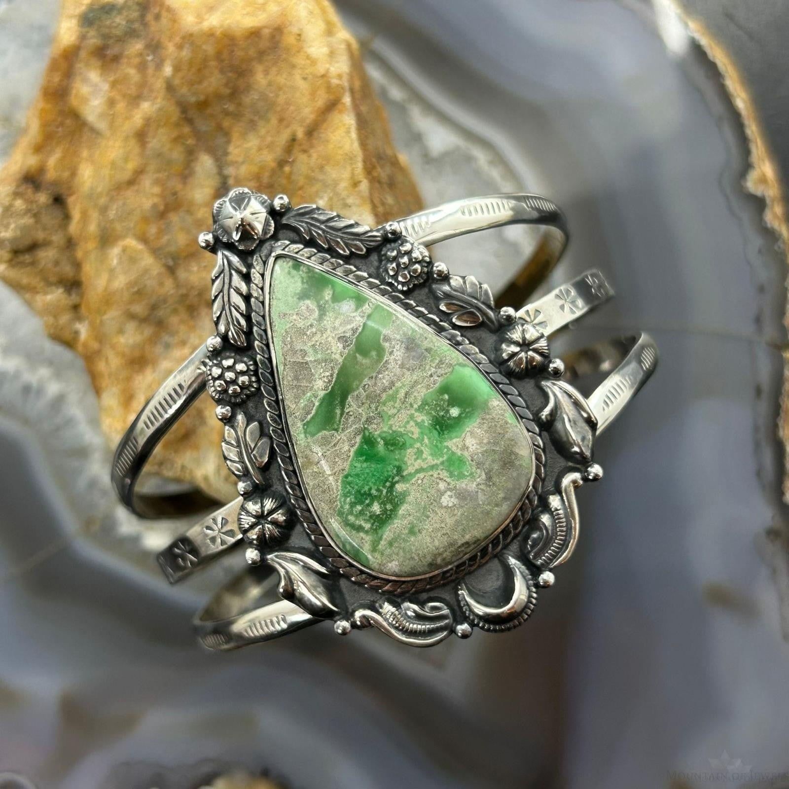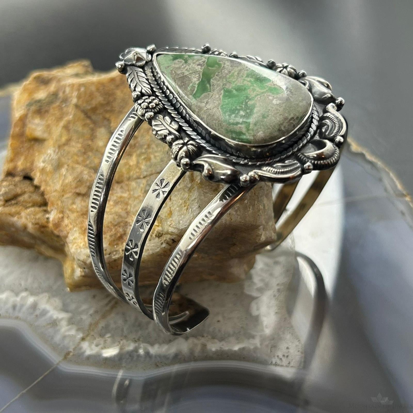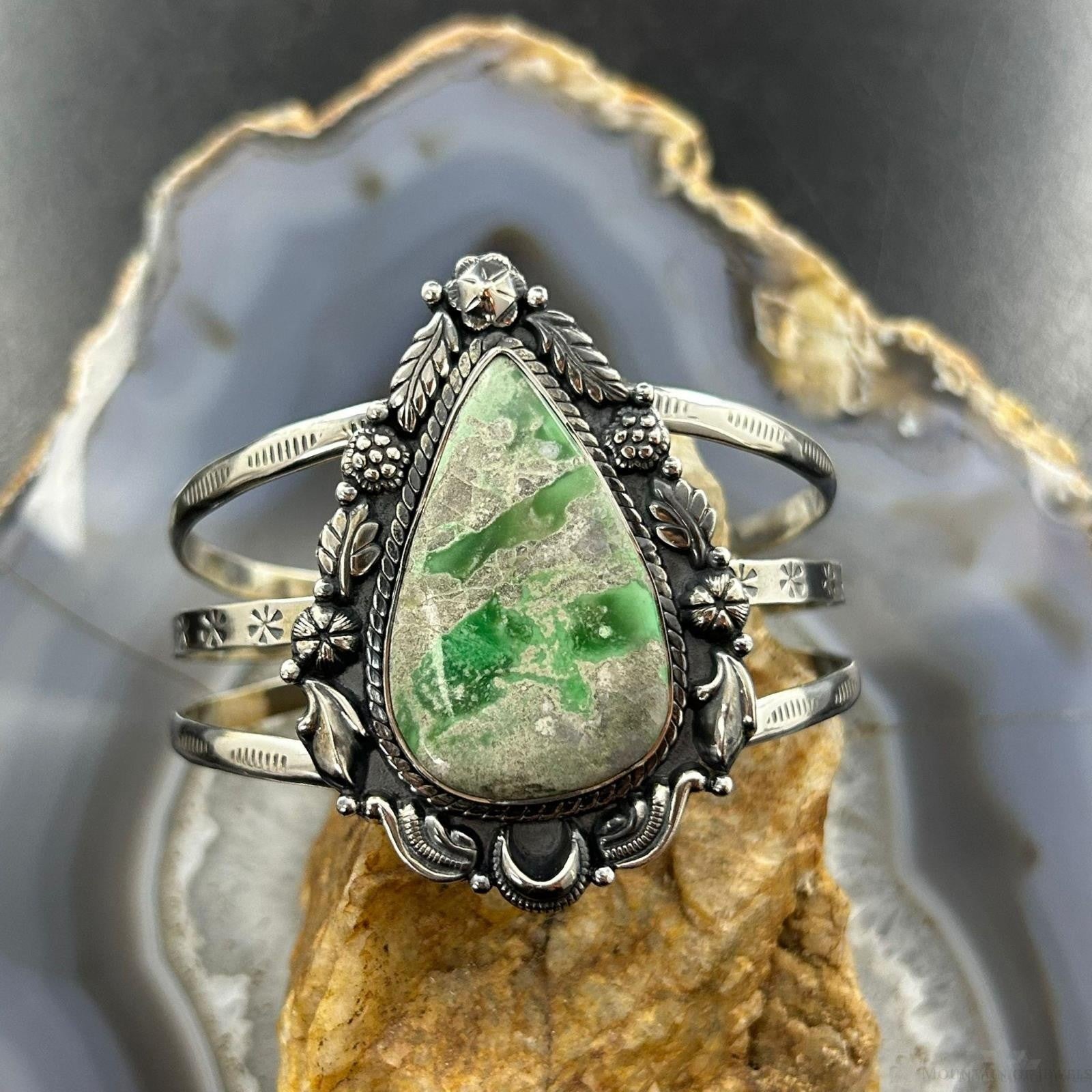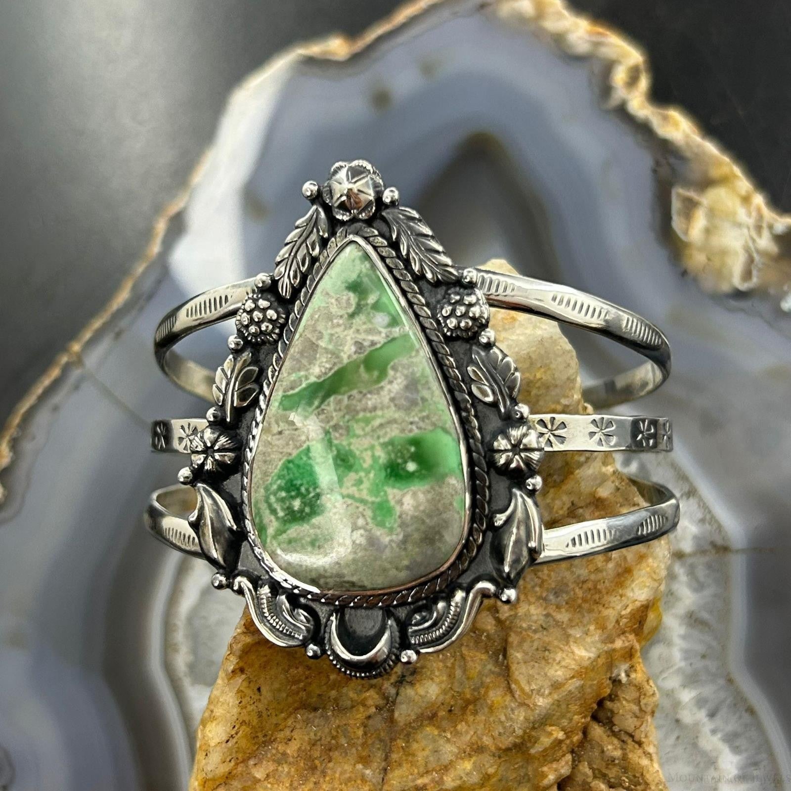 Sterling Silver Southwestern Style Large Teardrop Variscite Bracelet For Women