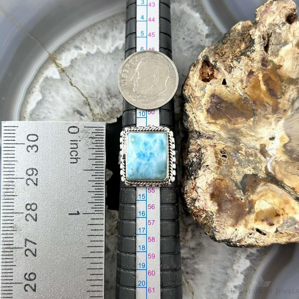 Sterling Silver Southwestern Style Larimar Decorated Bar Ring Size 6.5 For Women