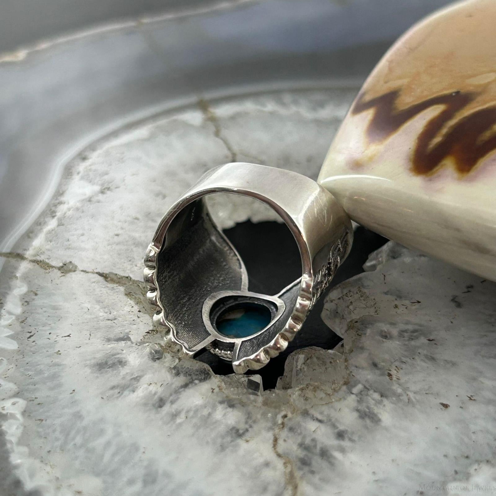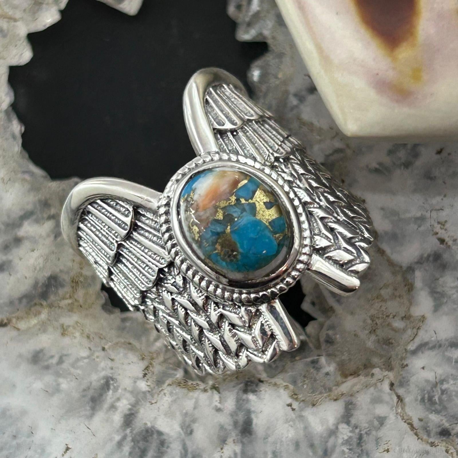 Sterling Silver Southwestern Style Mohave Turquoise Wing Ring Size 7 For Women