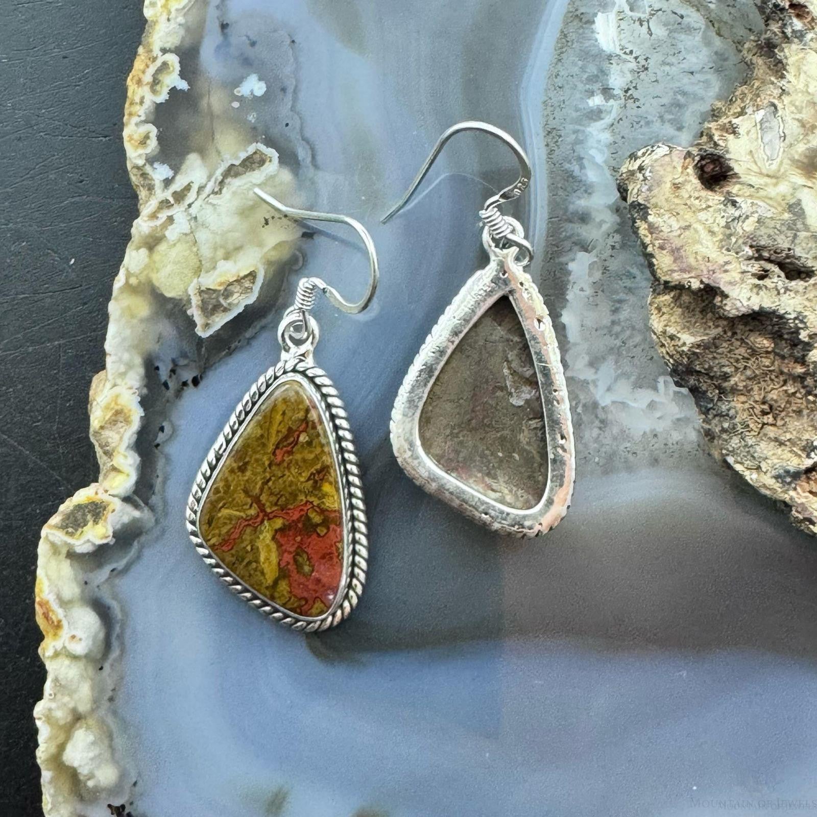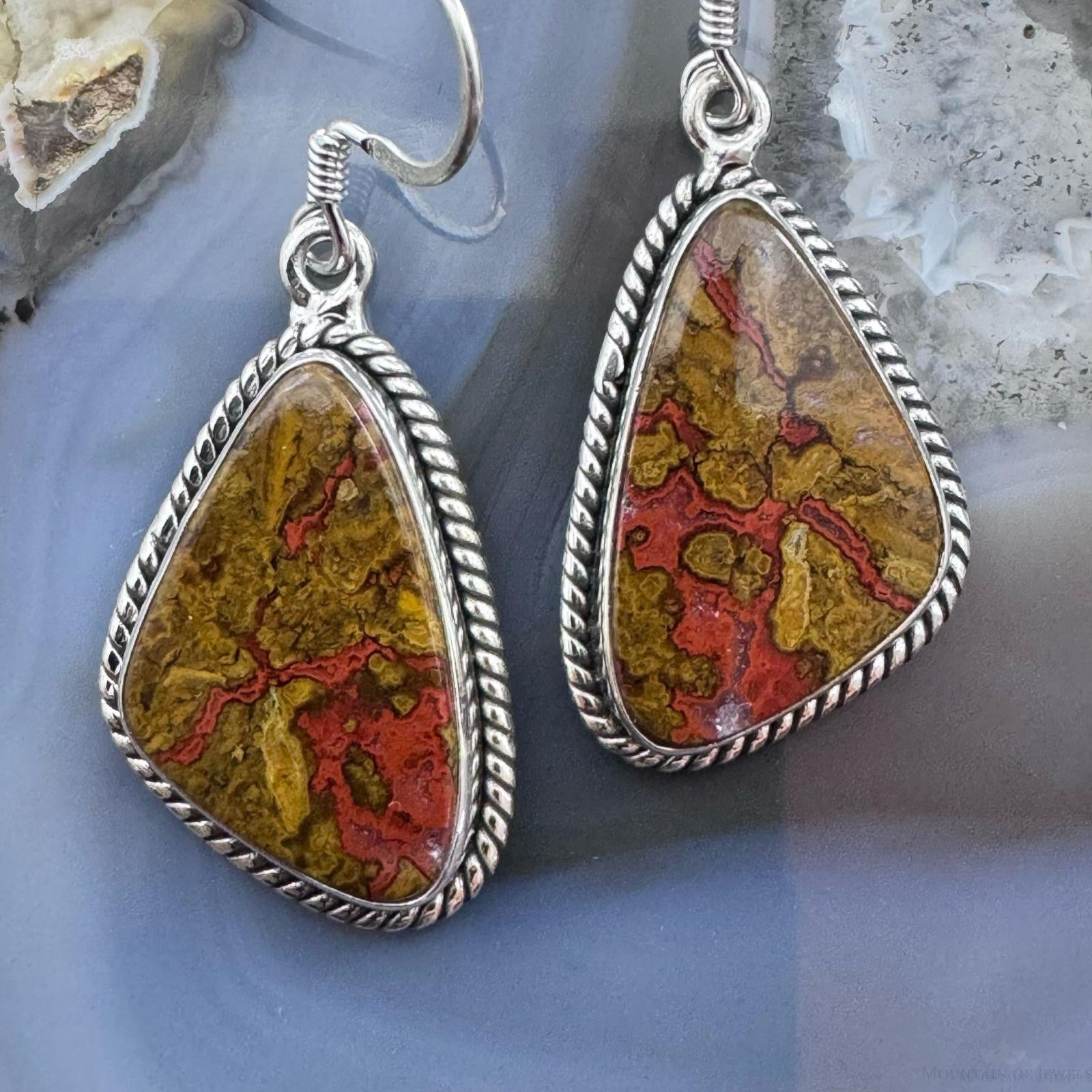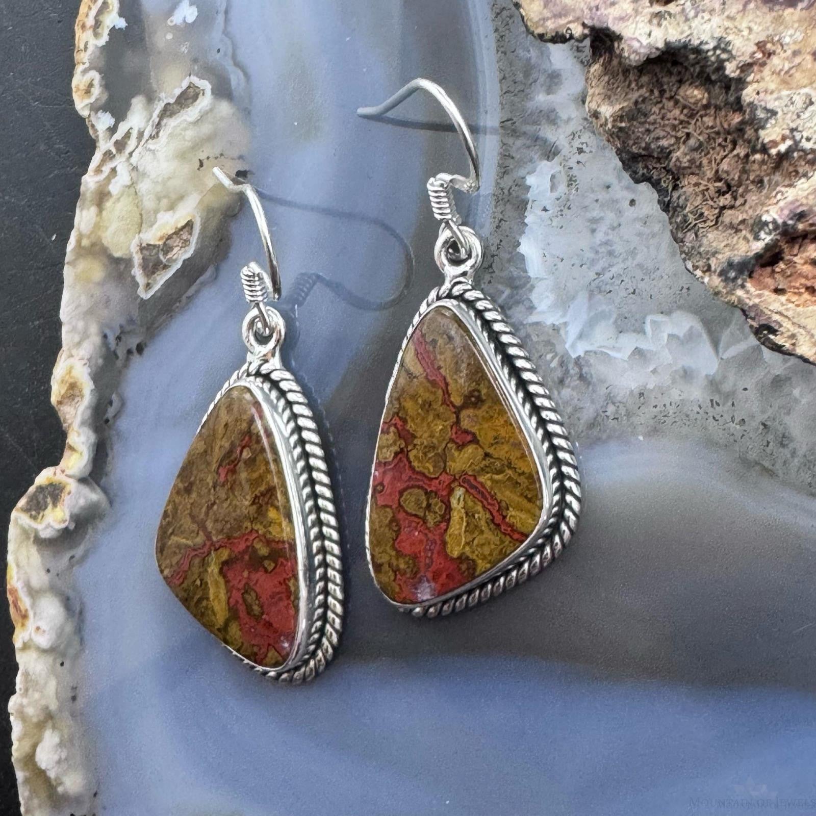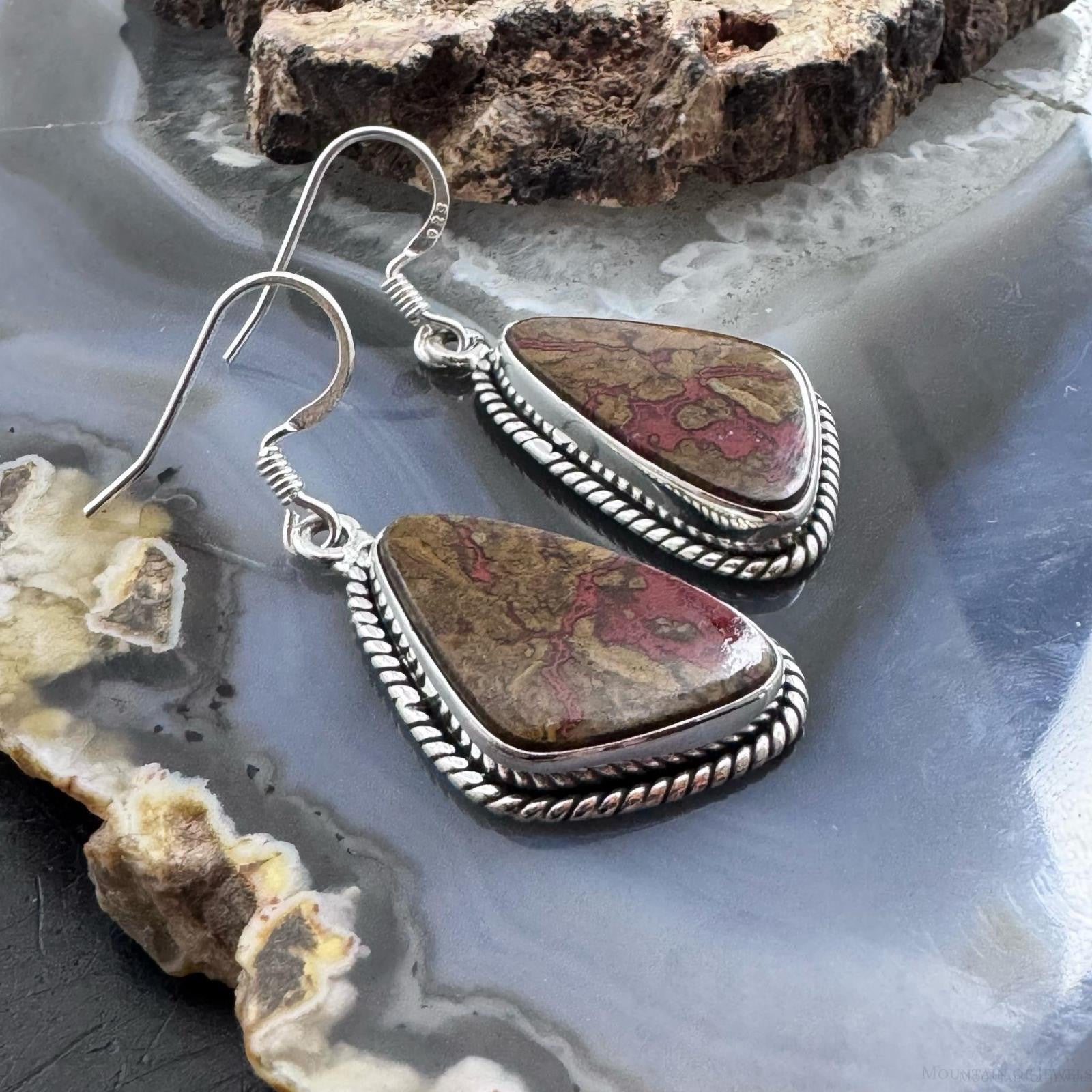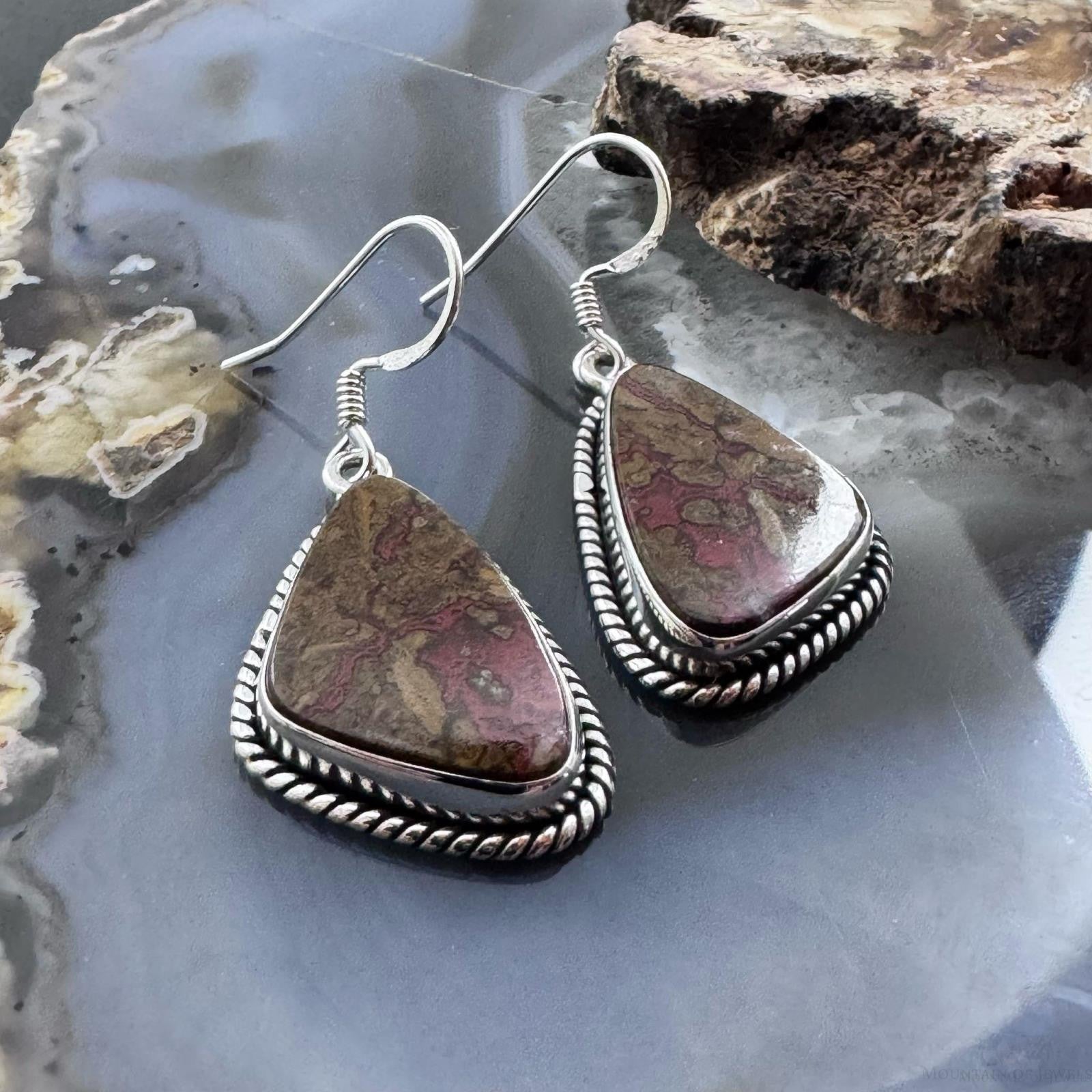 Sterling Silver Southwestern Style Moroccan Seam Agate Dangle Earrings For Women