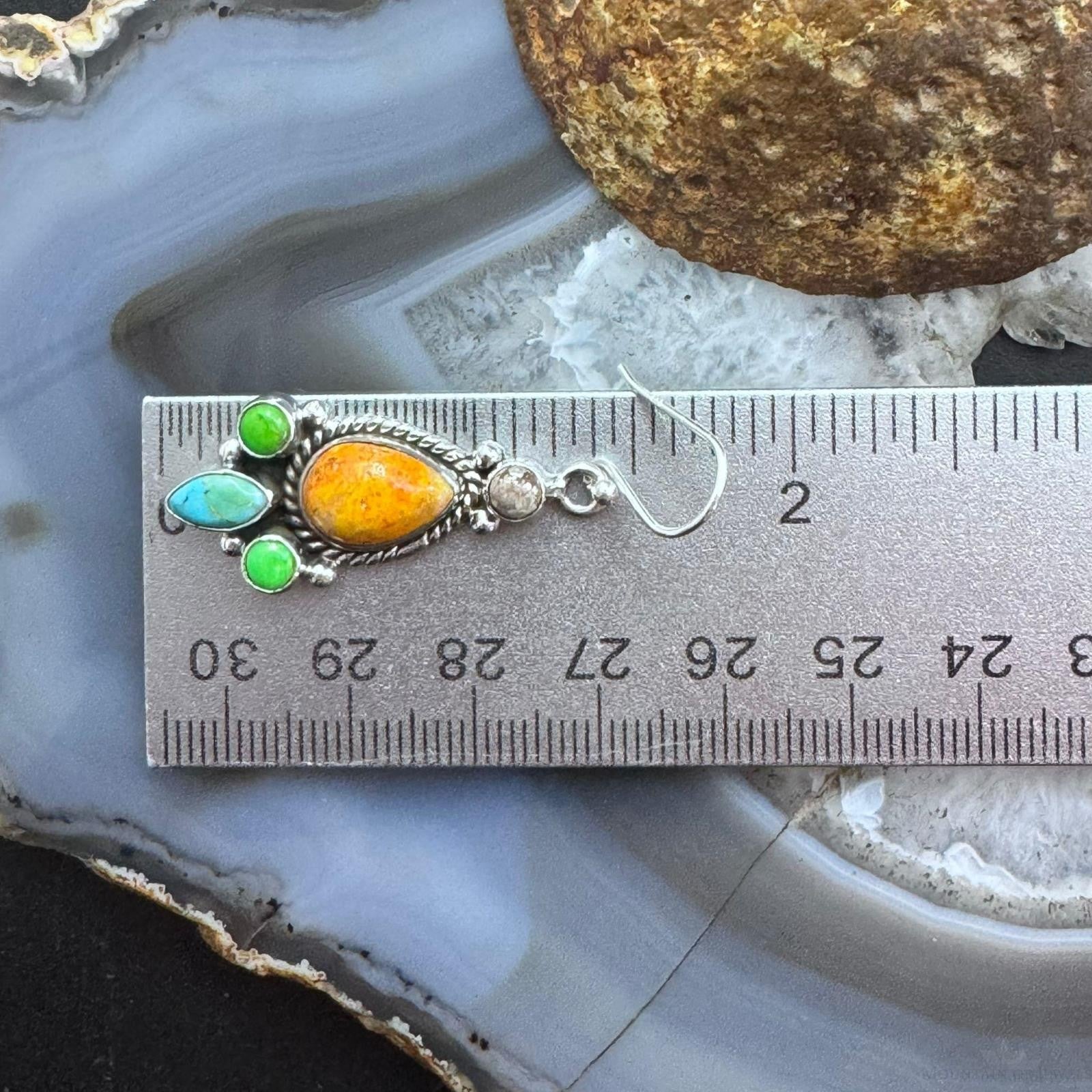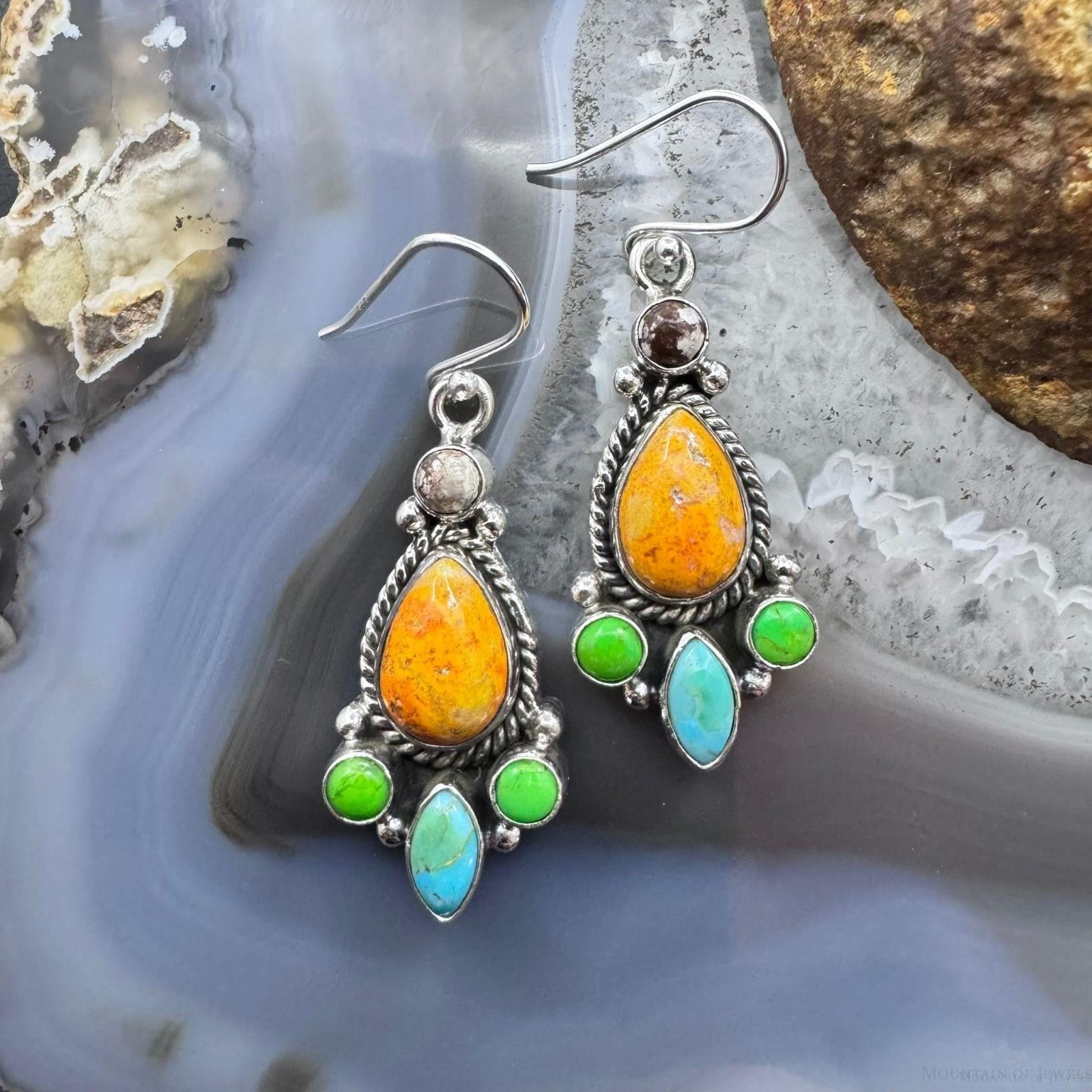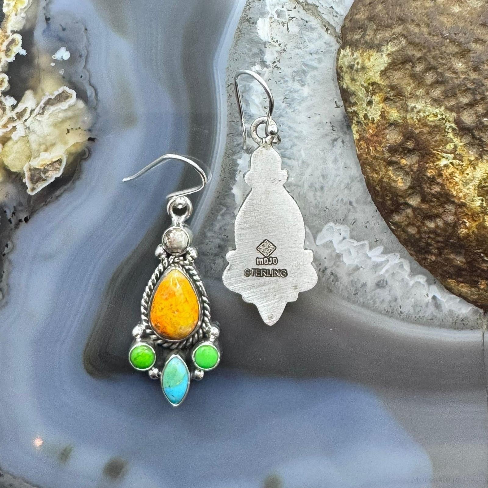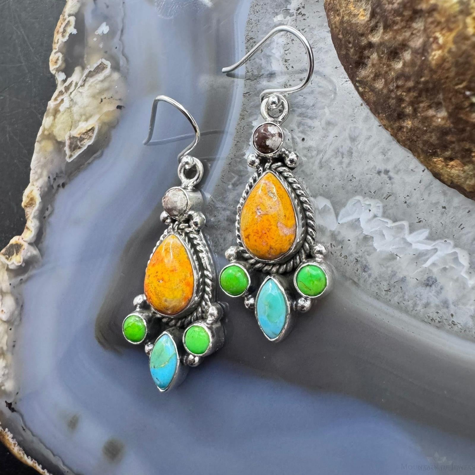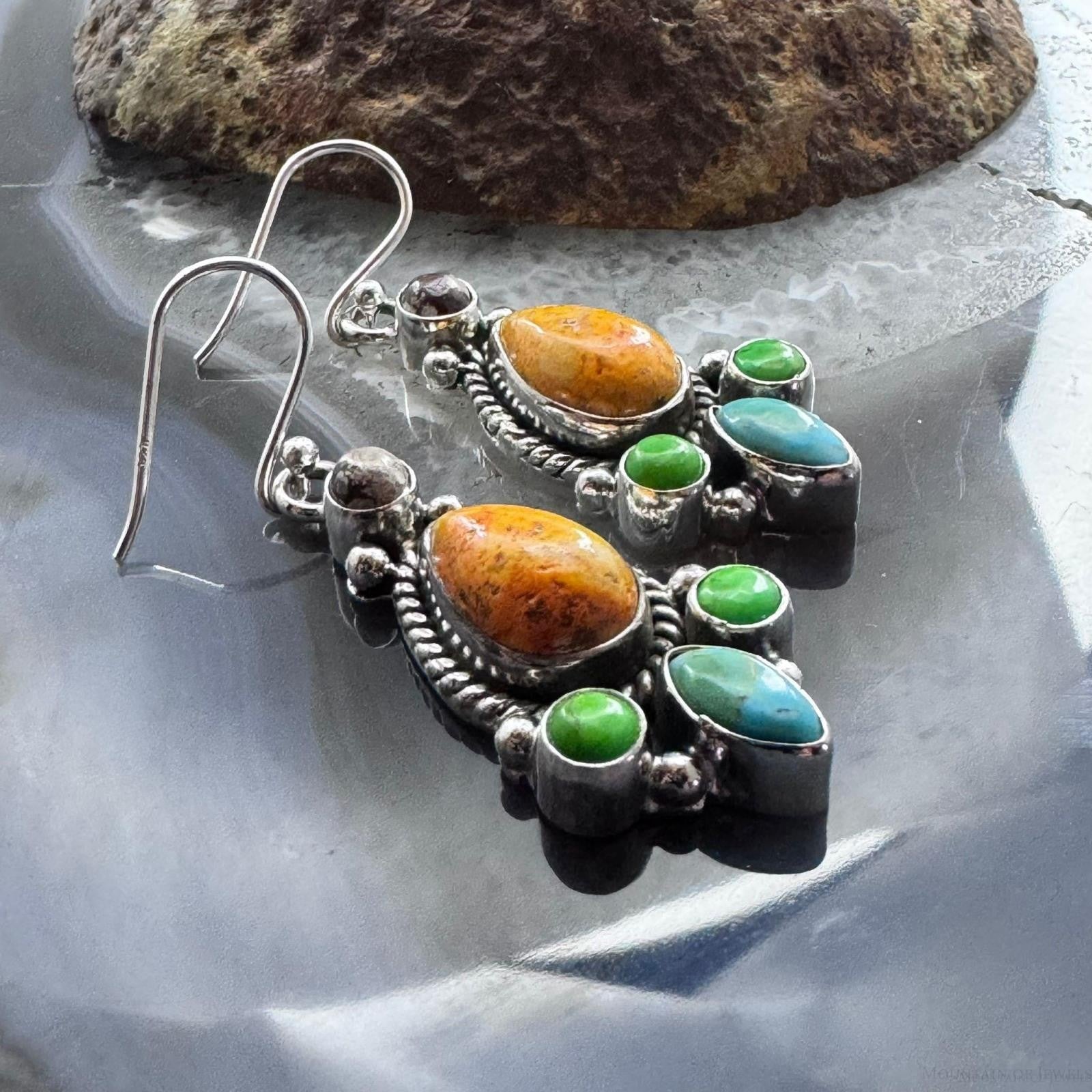 Sterling Silver Southwestern Style Multistone Cluster Dangle Earrings For Women