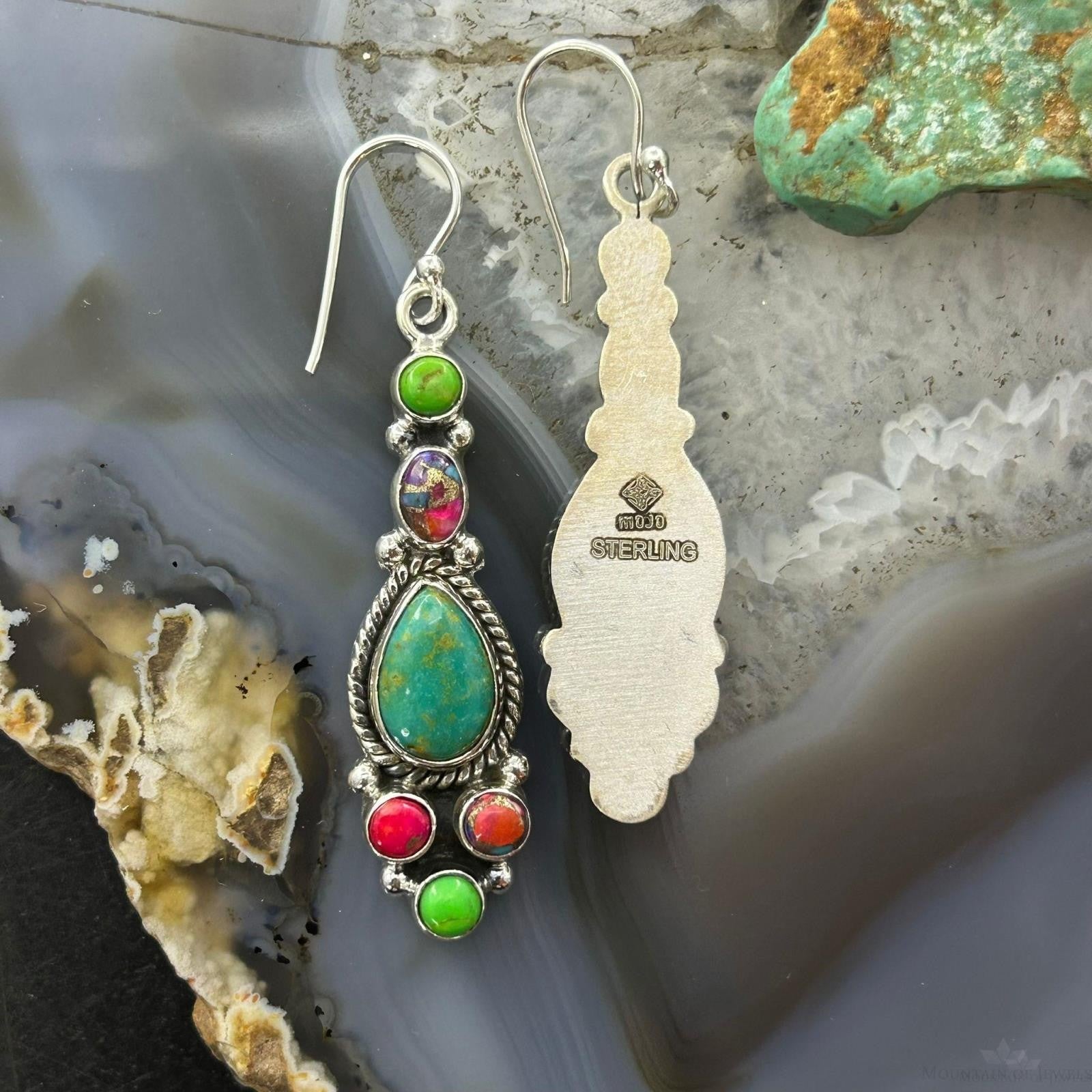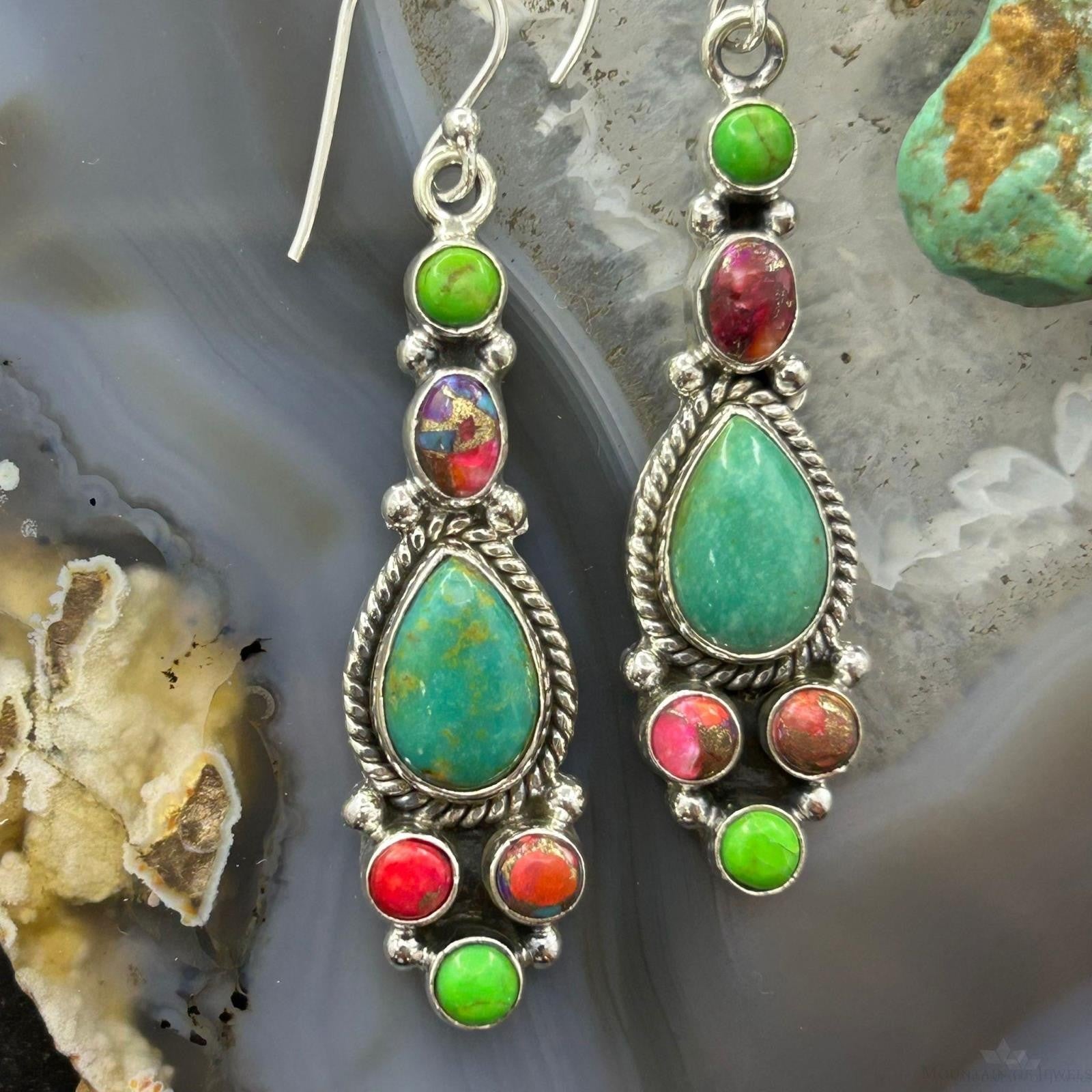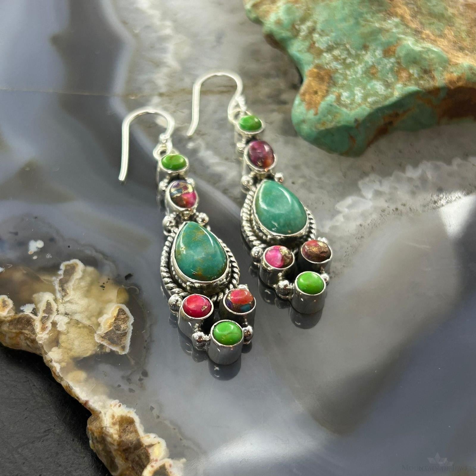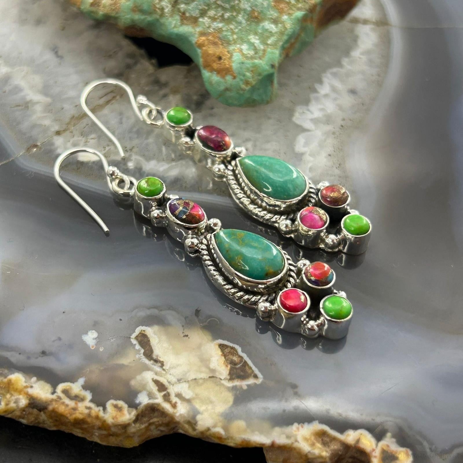 Sterling Silver Southwestern Style Multistone Dangle Earrings For Women