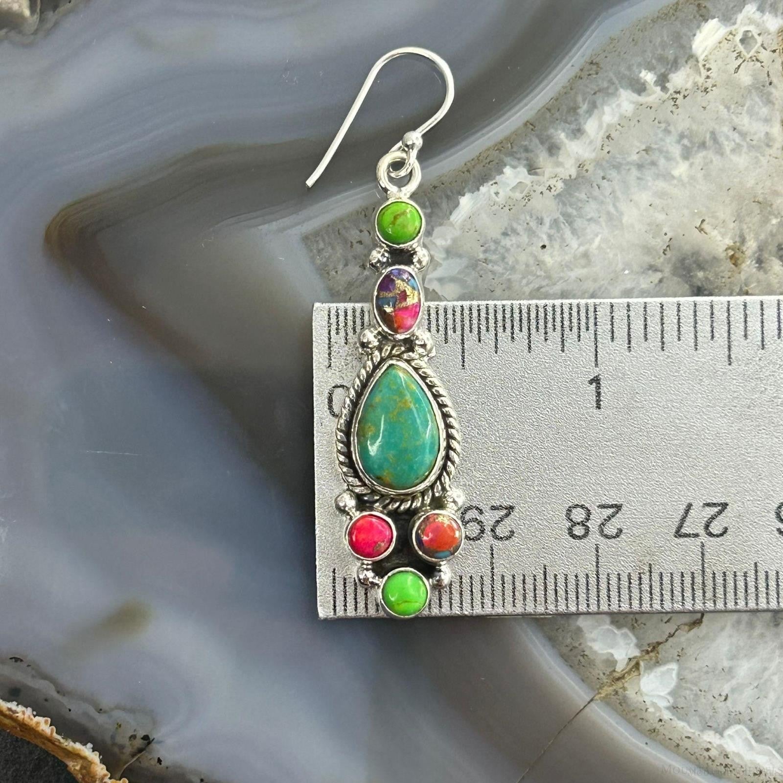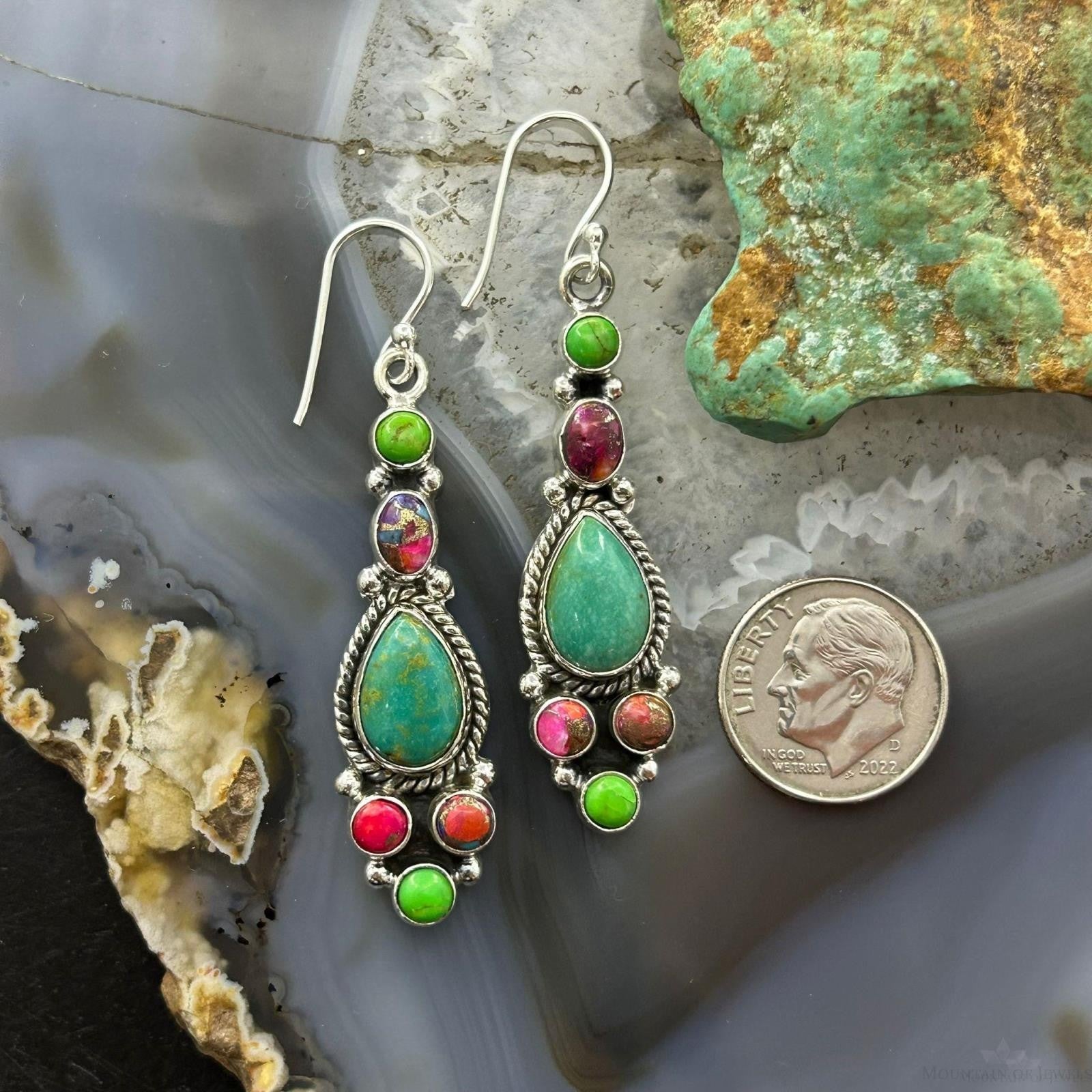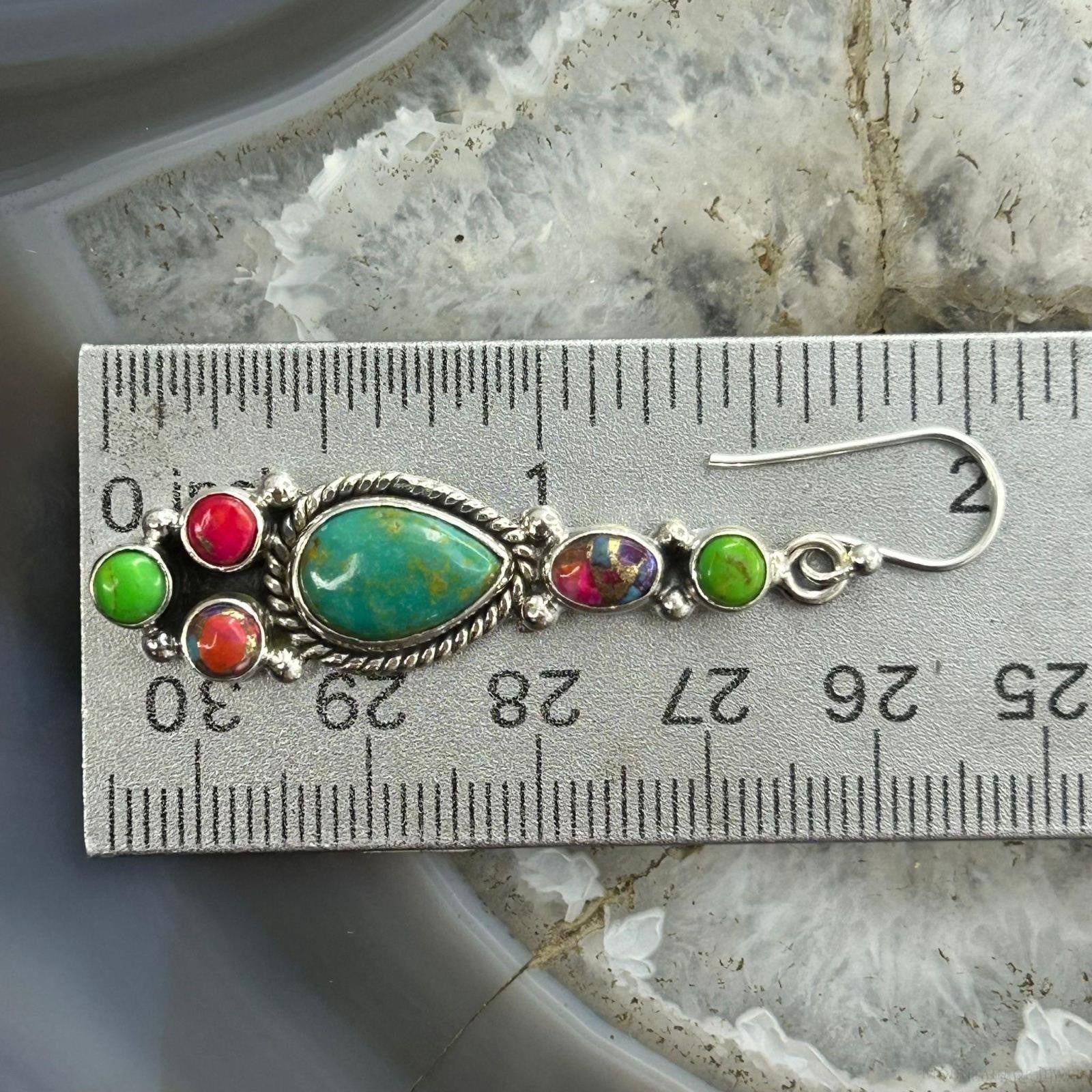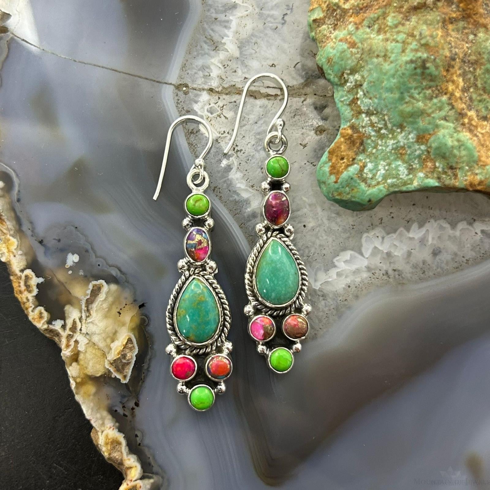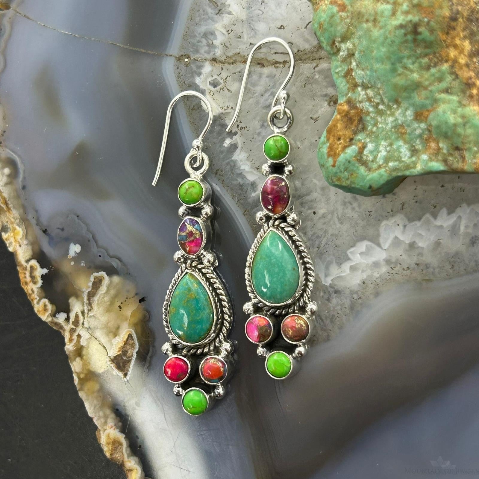 Sterling Silver Southwestern Style Multistone Dangle Earrings For Women
