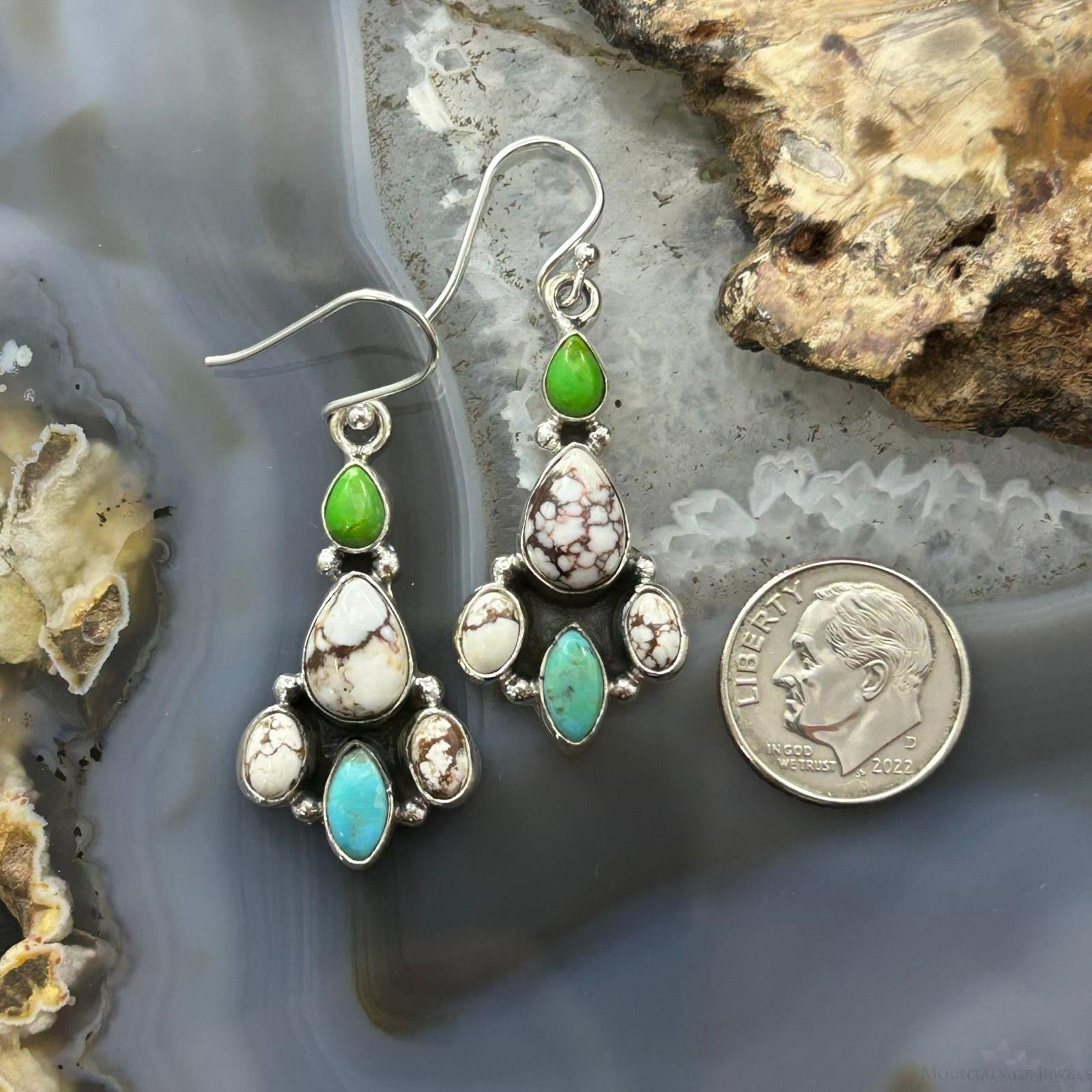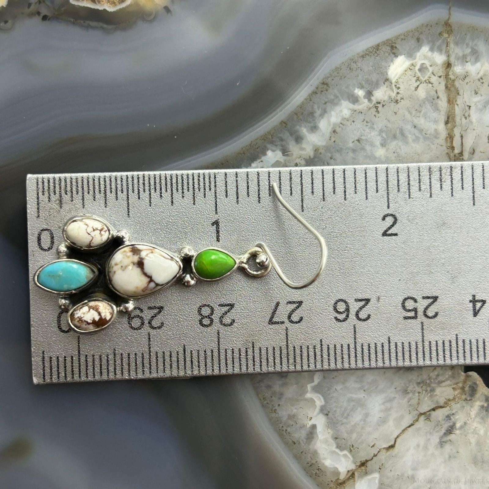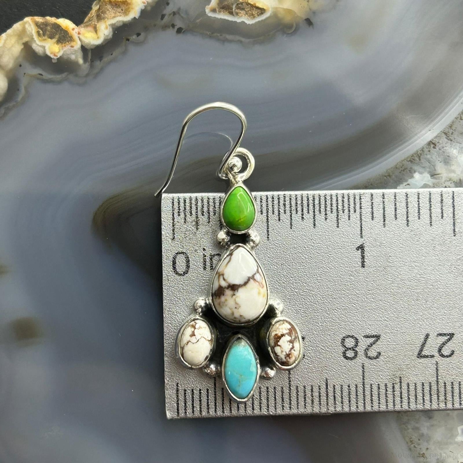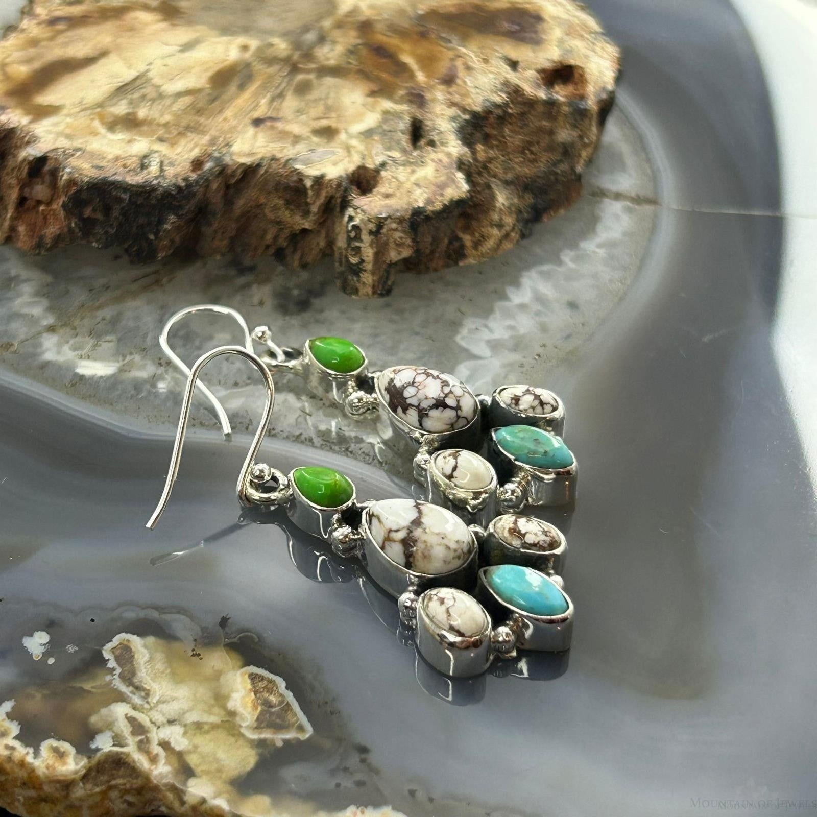Sterling Silver Southwestern Style Multistone Dangle Earrings For Women