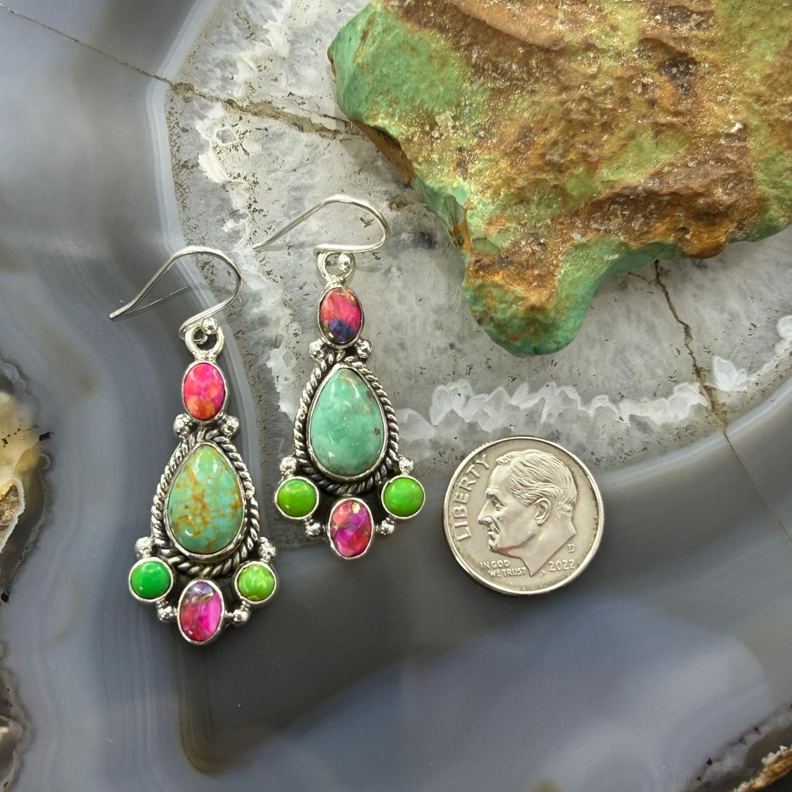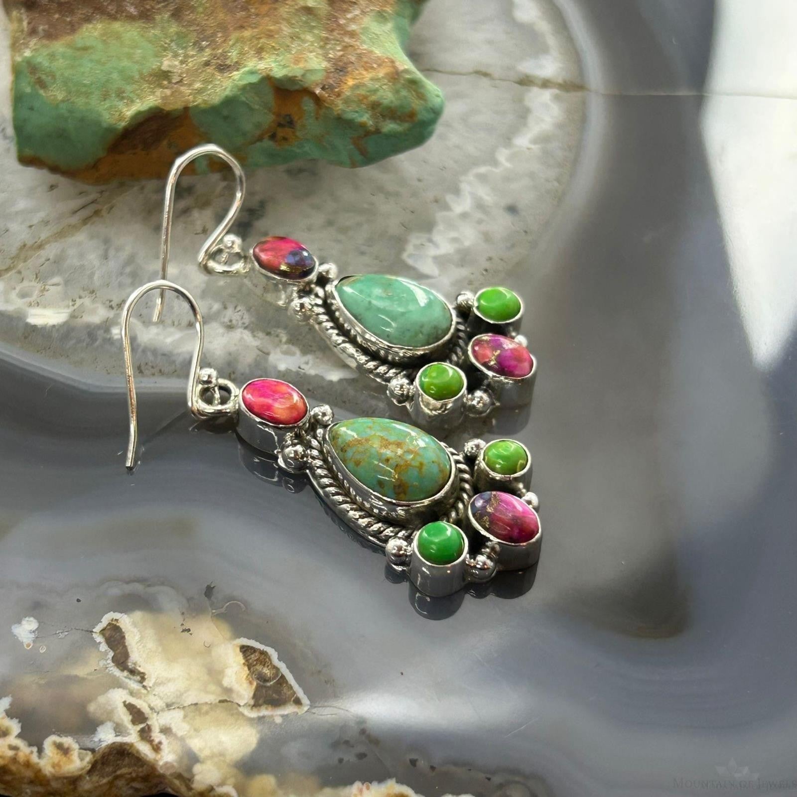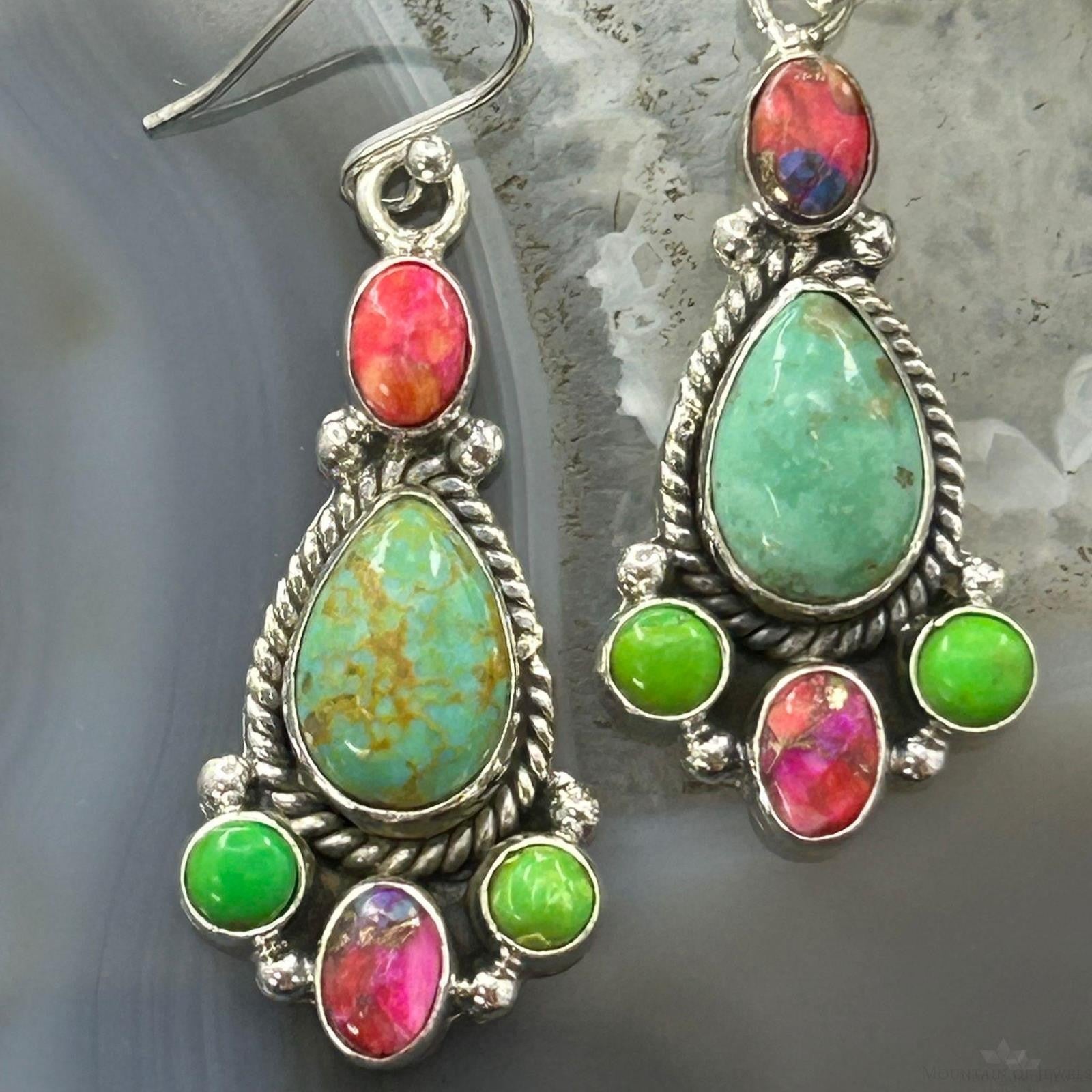 Sterling Silver Southwestern Style Multistone Dangle Earrings For Women #4