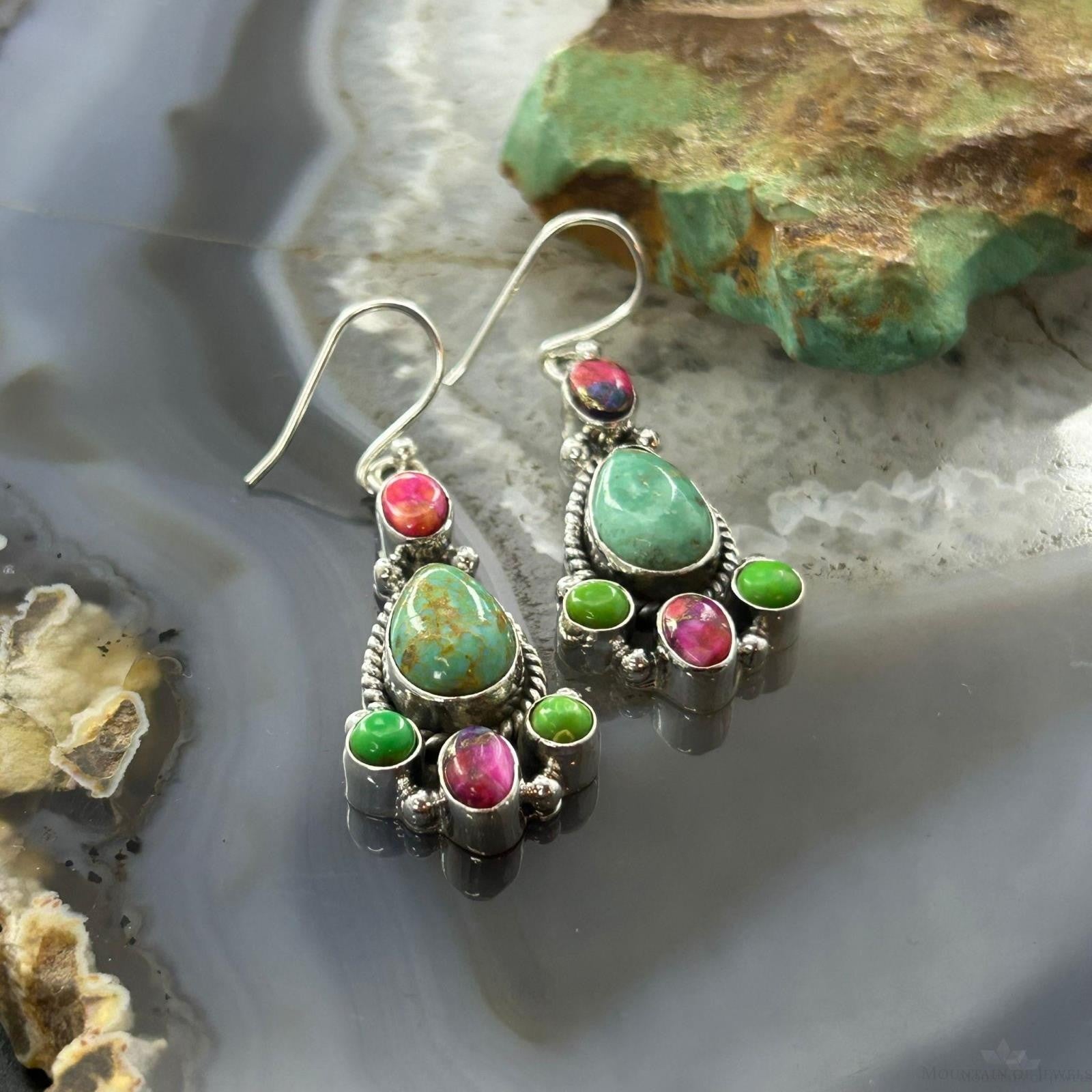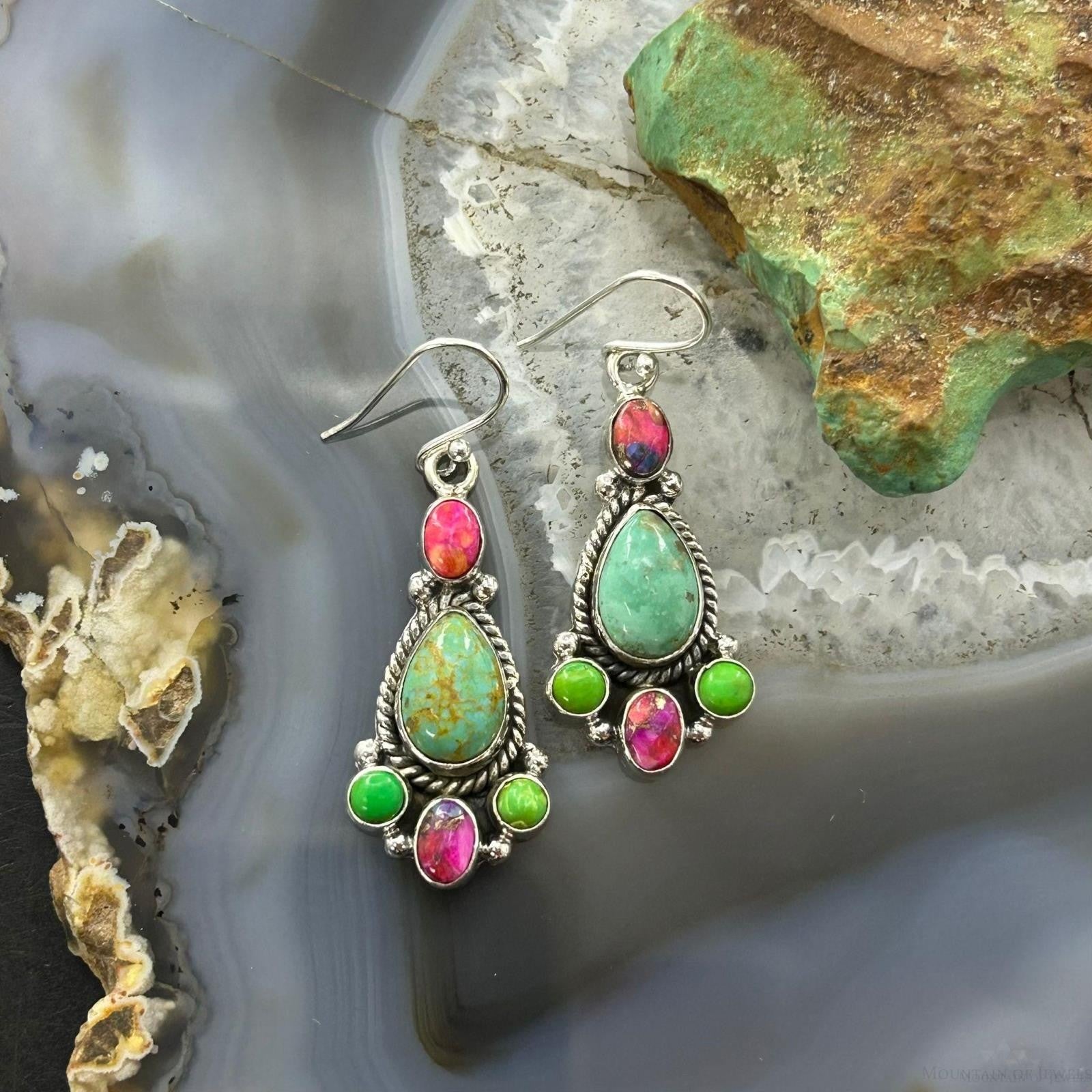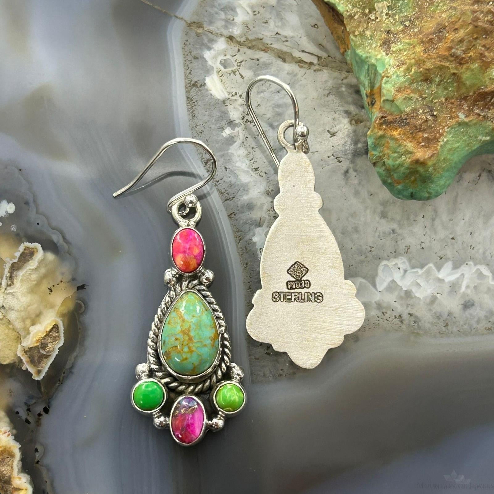 Sterling Silver Southwestern Style Multistone Dangle Earrings For Women #4