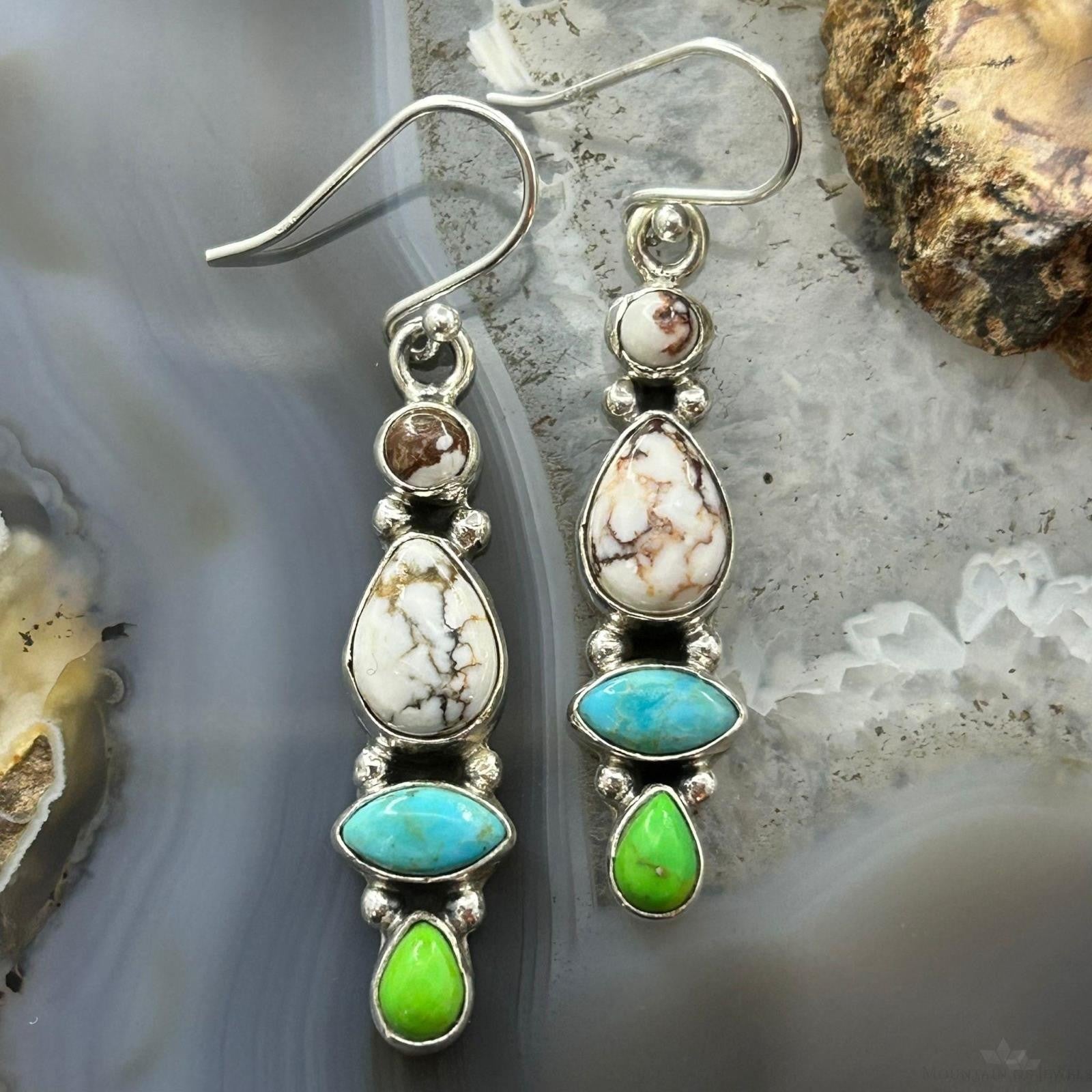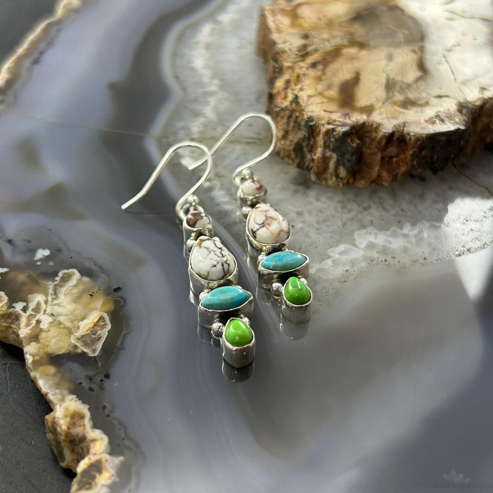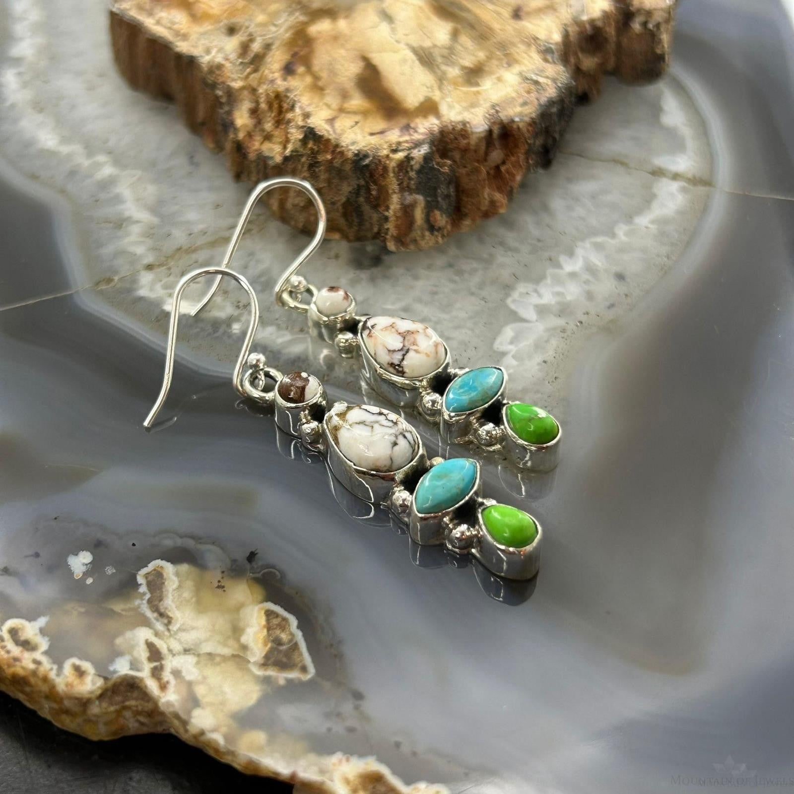 Sterling Silver Southwestern Style Multistone Dangle Earrings For Women #11