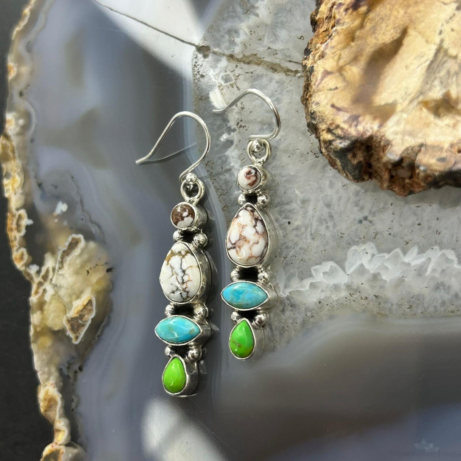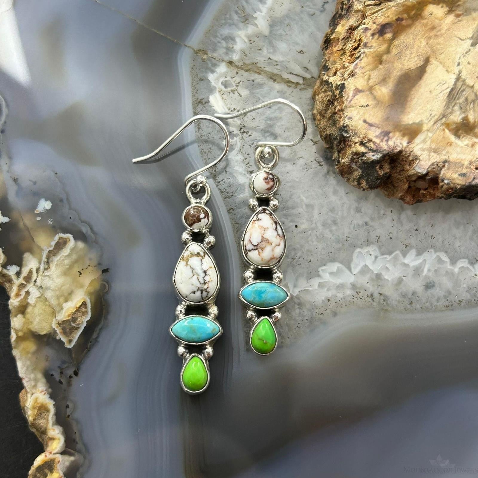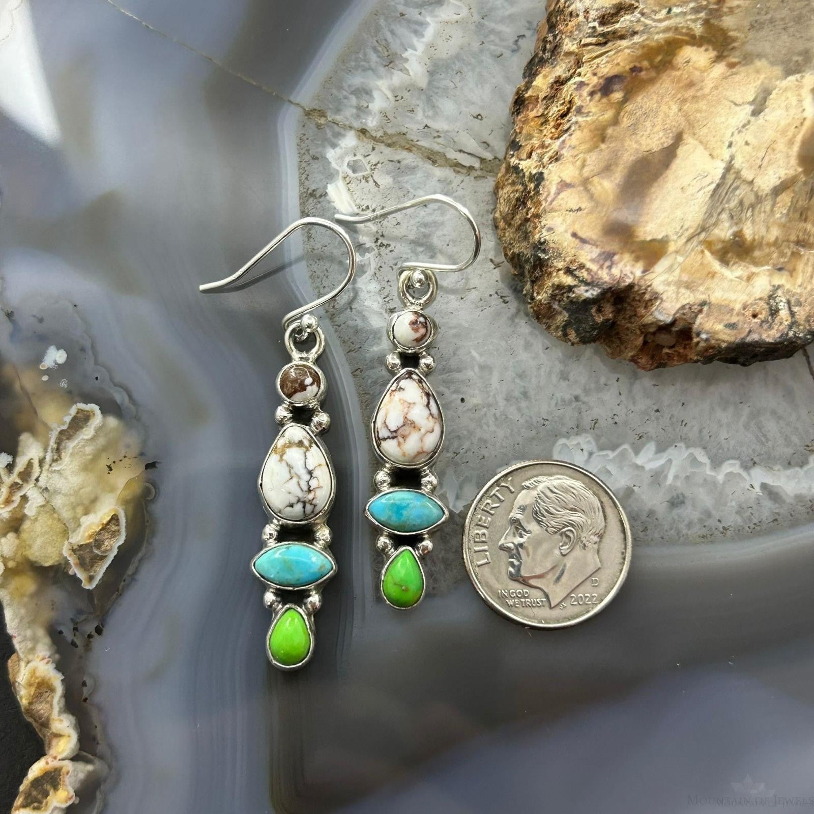 Sterling Silver Southwestern Style Multistone Dangle Earrings For Women #11