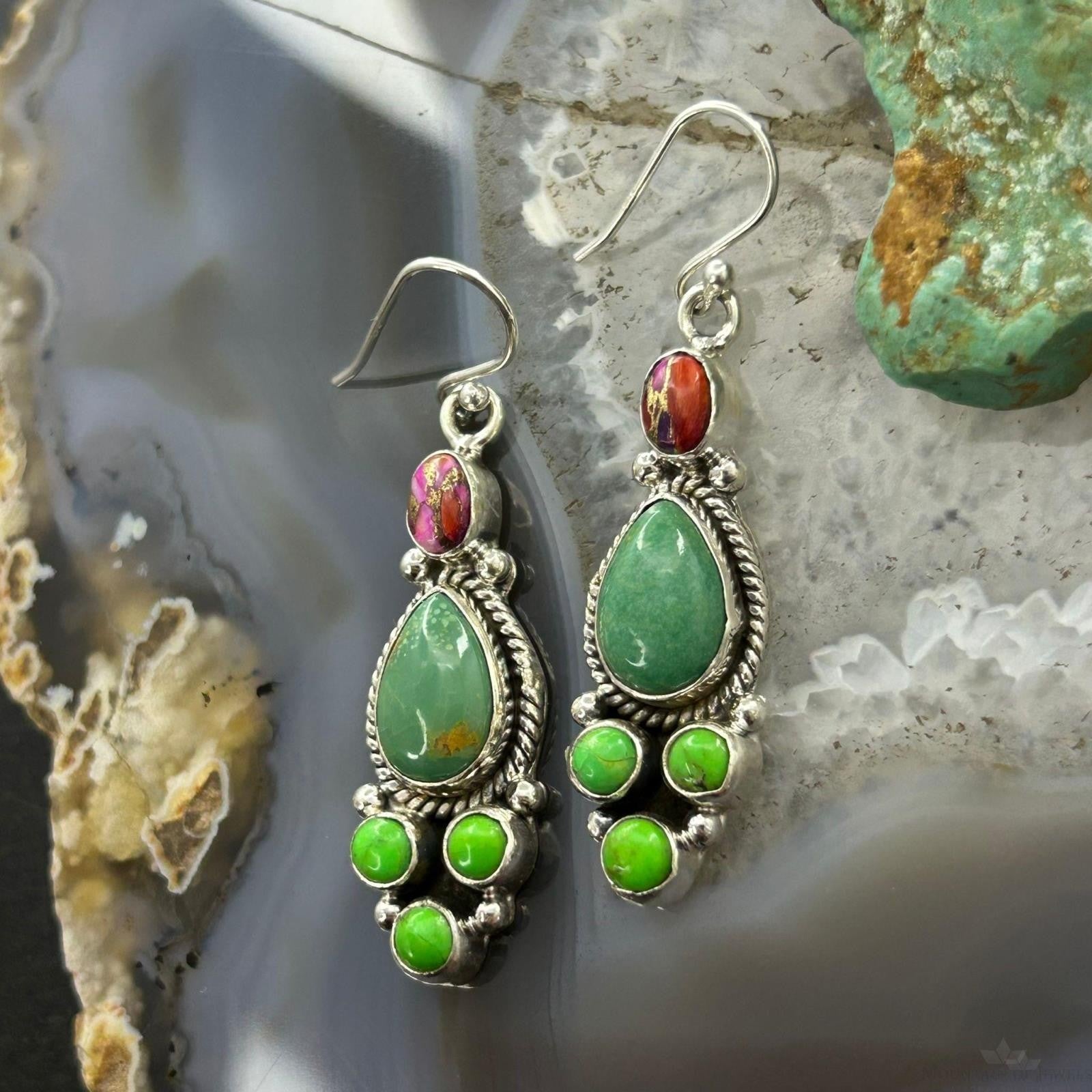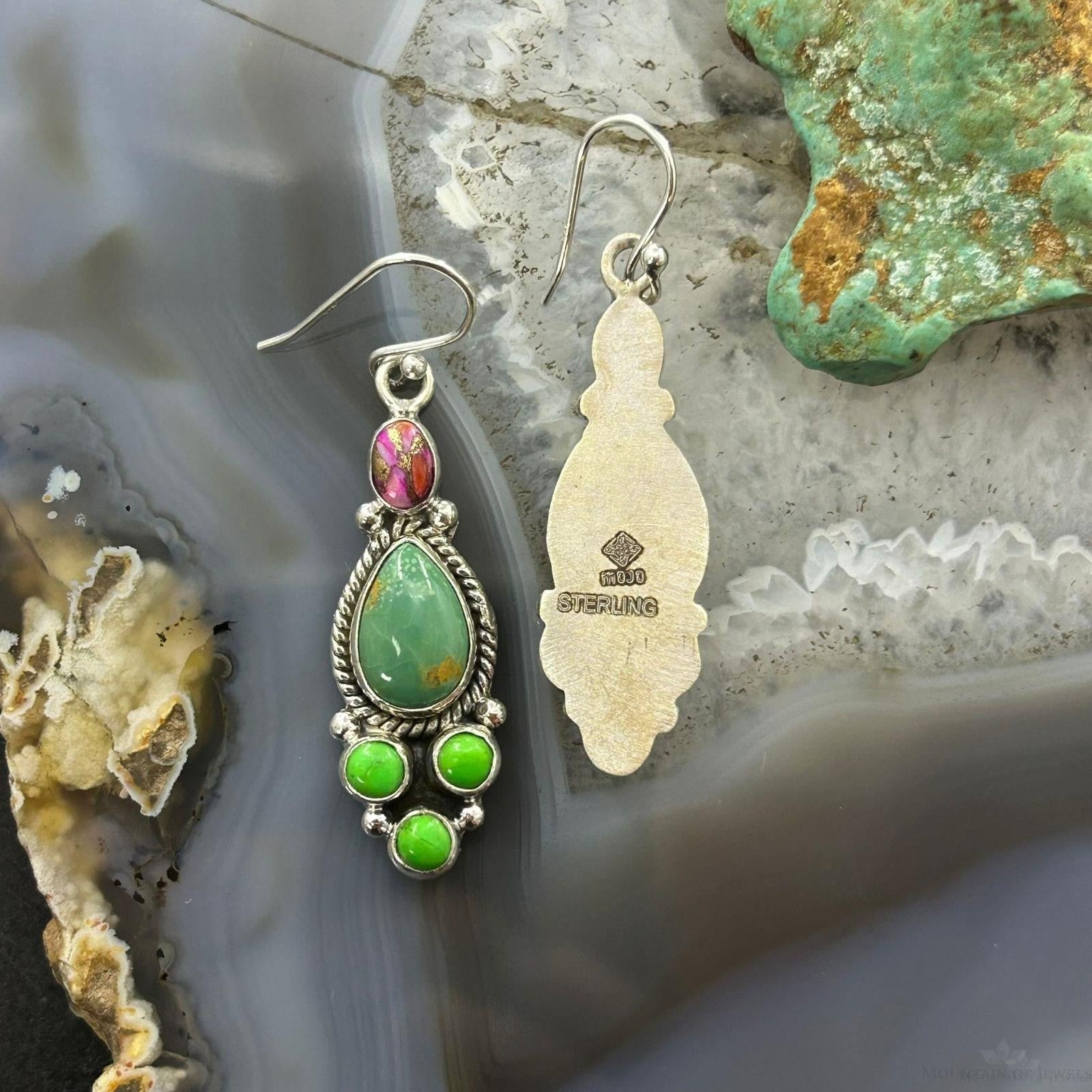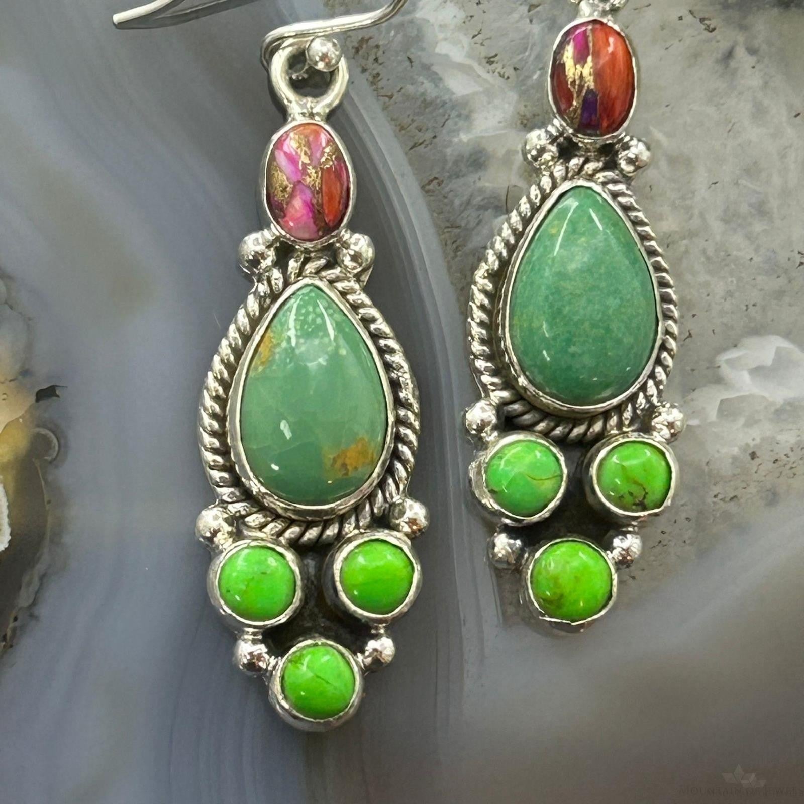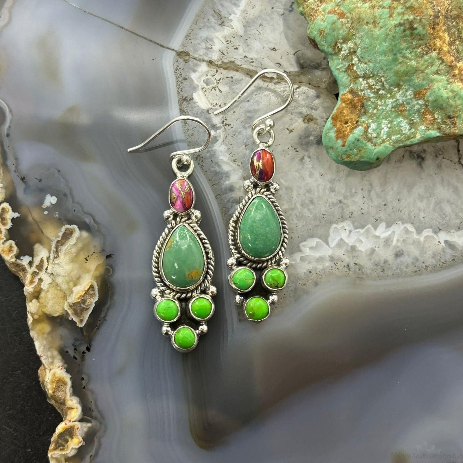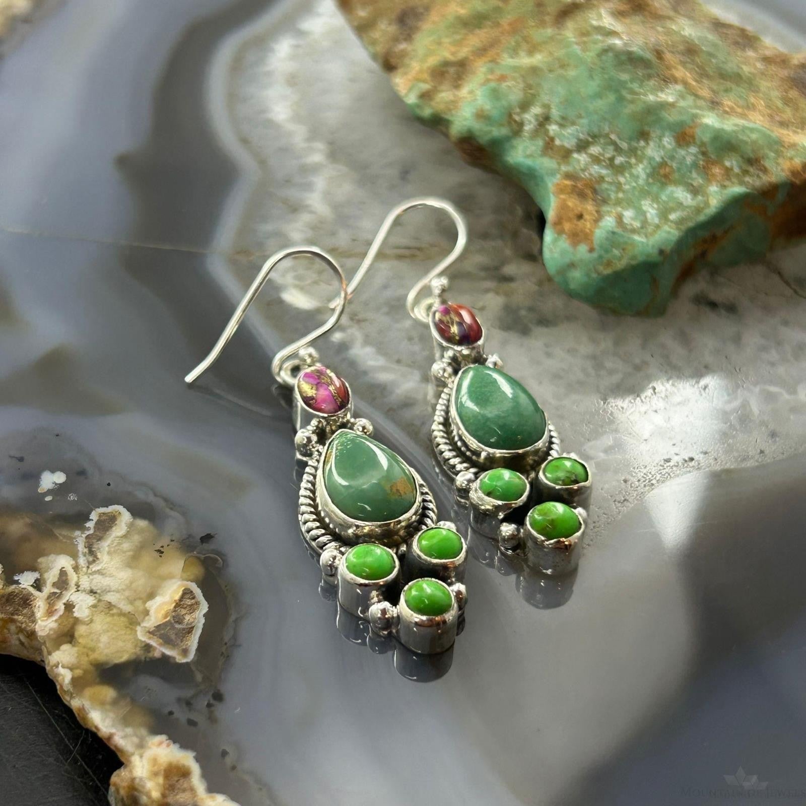 Sterling Silver Southwestern Style Multistone Dangle Earrings For Women #12