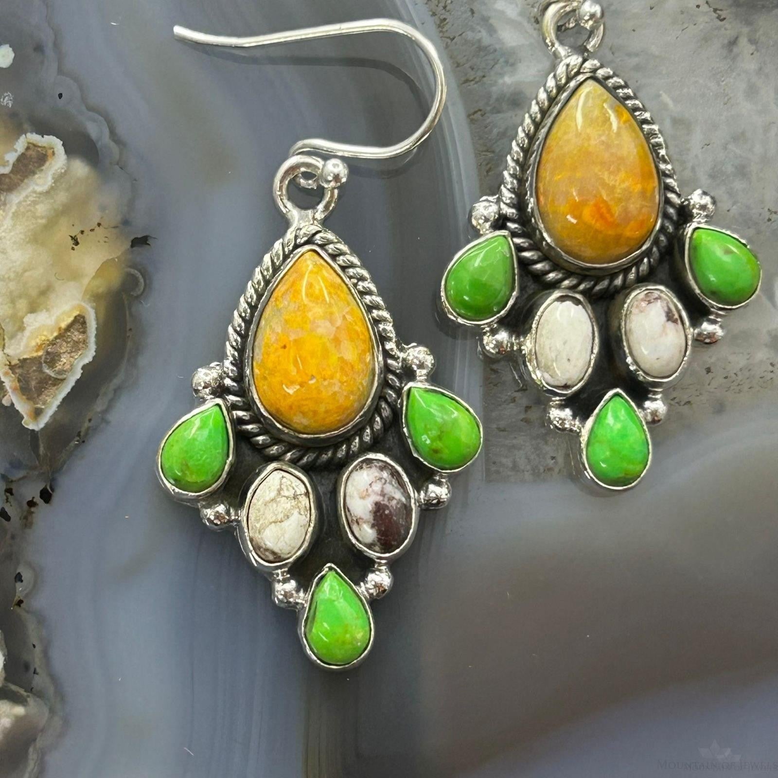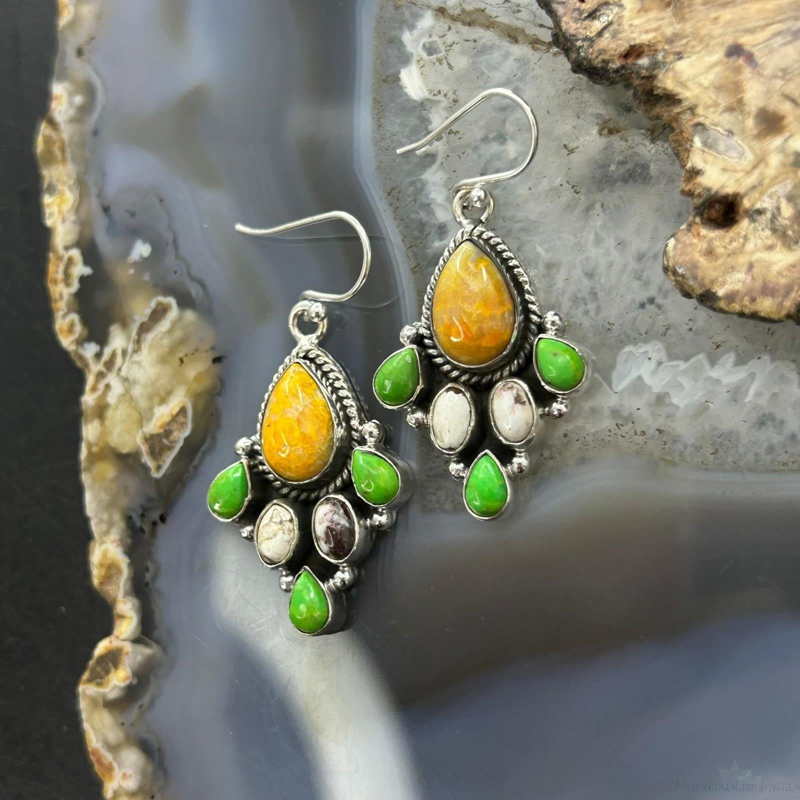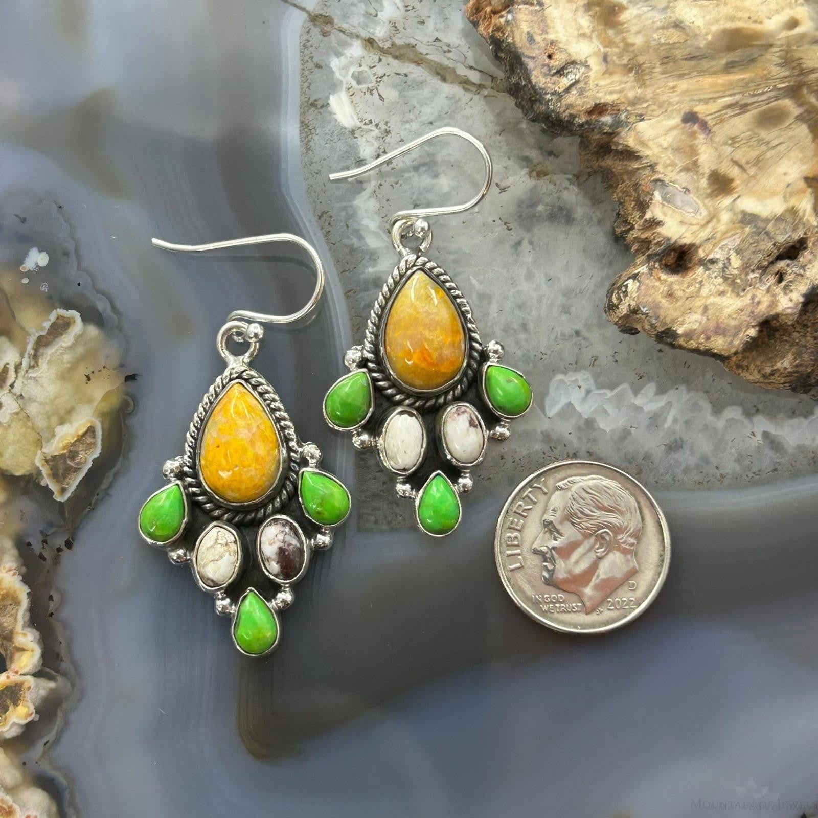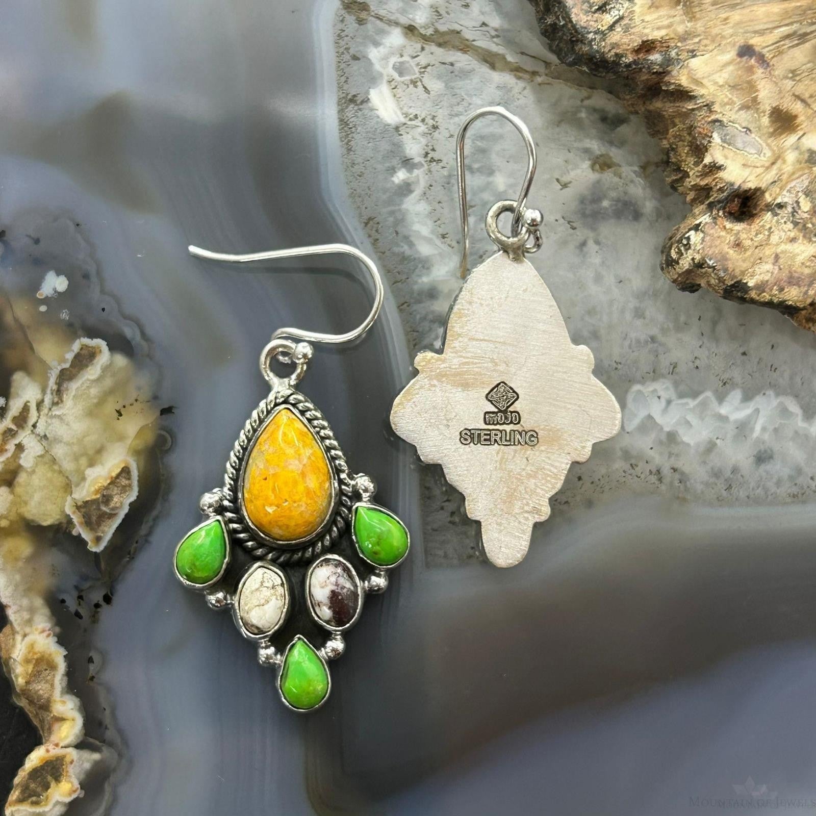 Sterling Silver Southwestern Style Multistone Dangle Earrings For Women #5