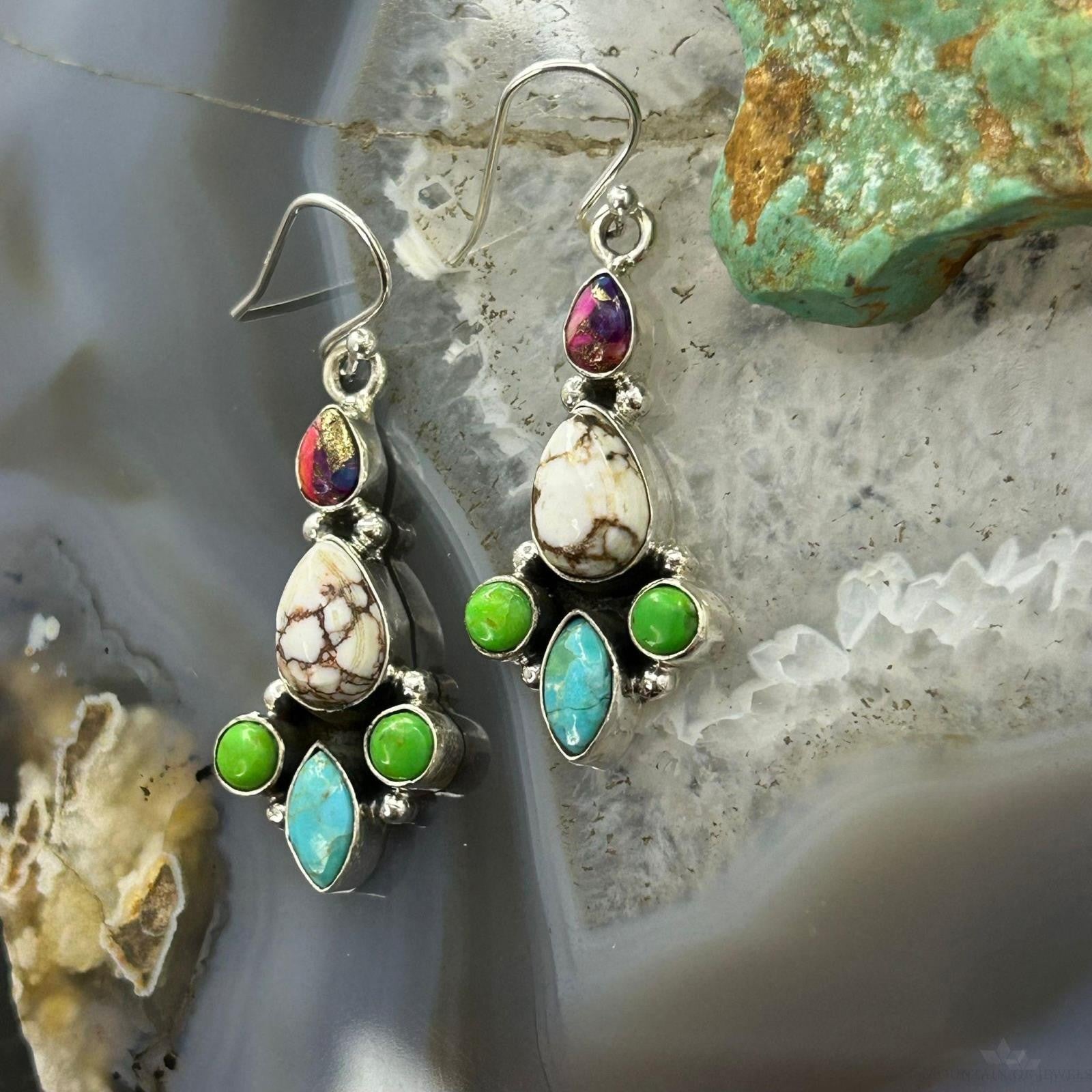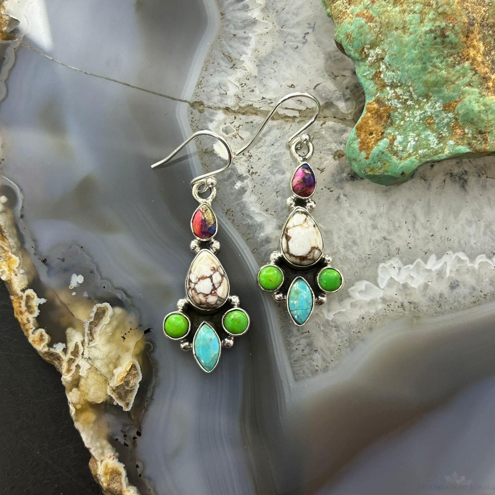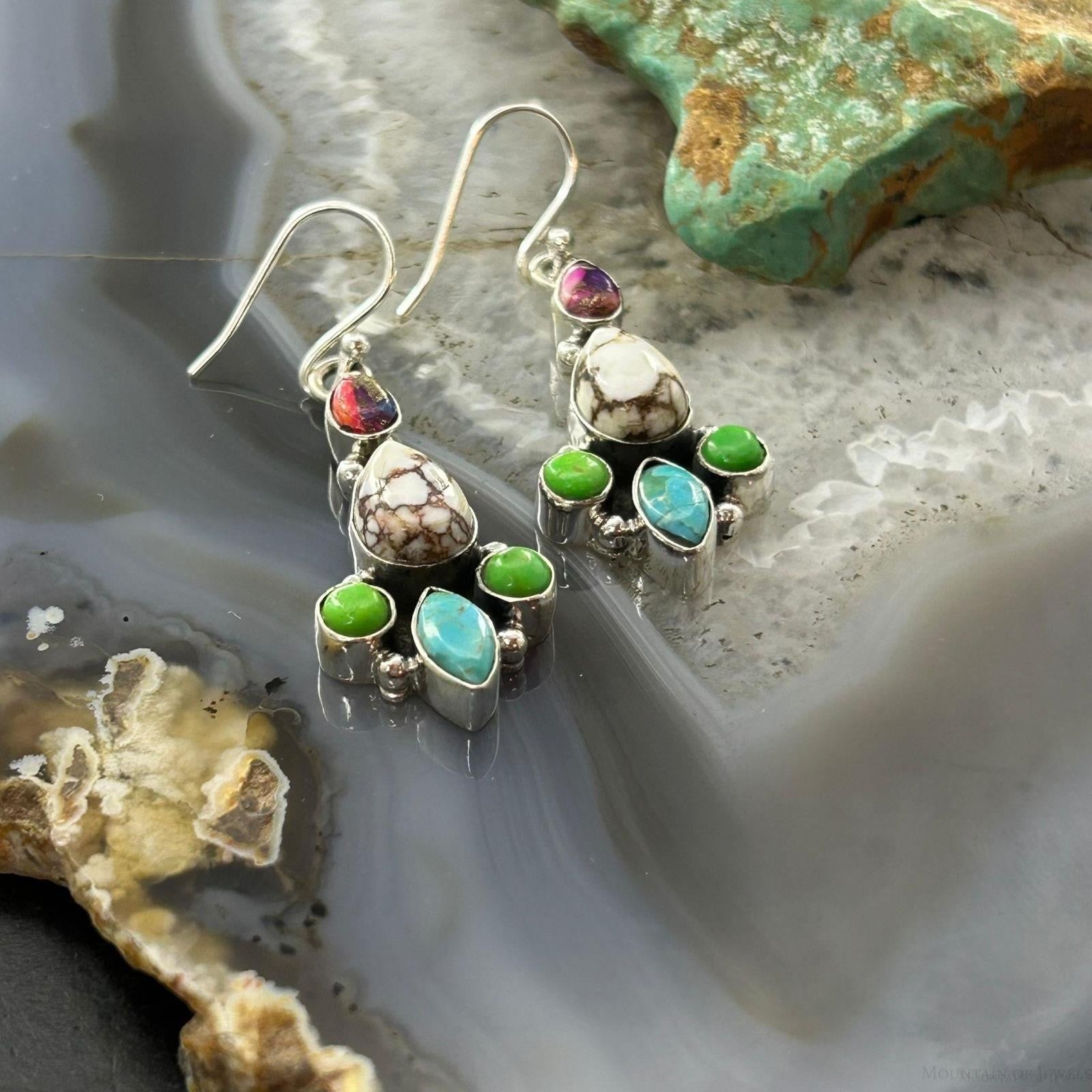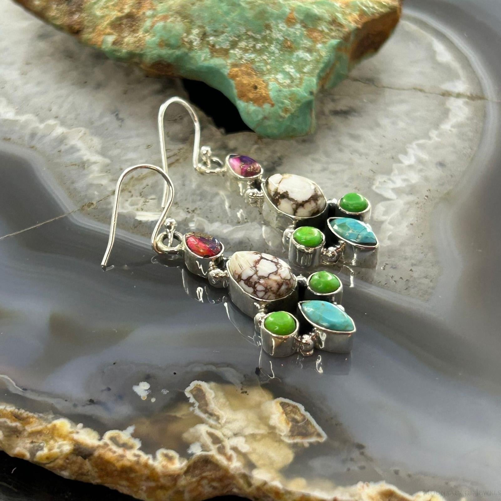 Sterling Silver Southwestern Style Multistone Dangle Earrings For Women #9