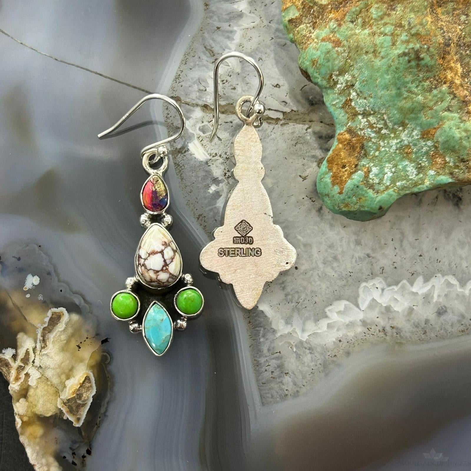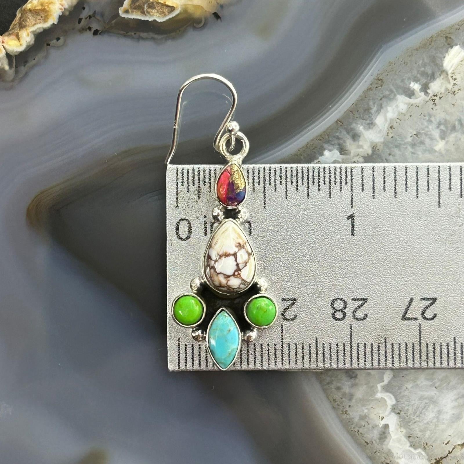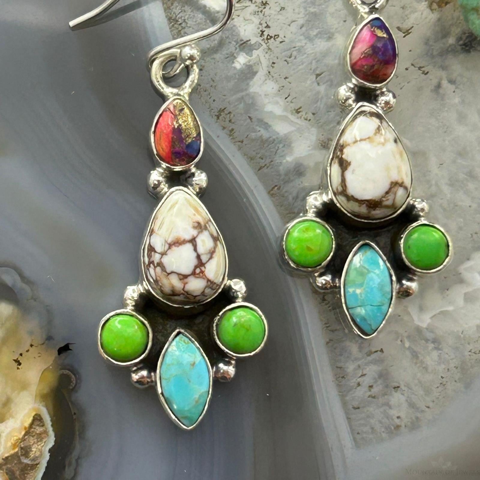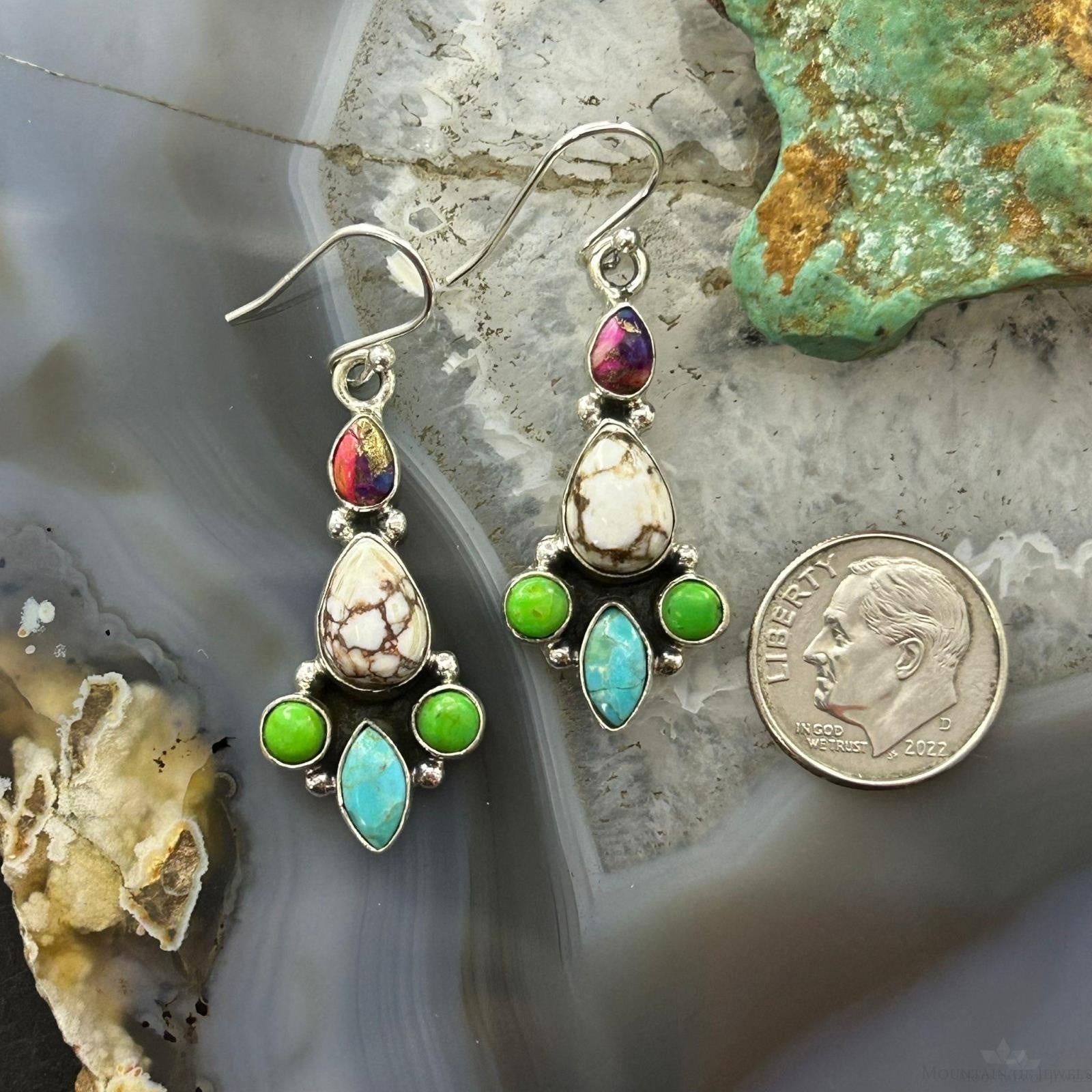 Sterling Silver Southwestern Style Multistone Dangle Earrings For Women #9