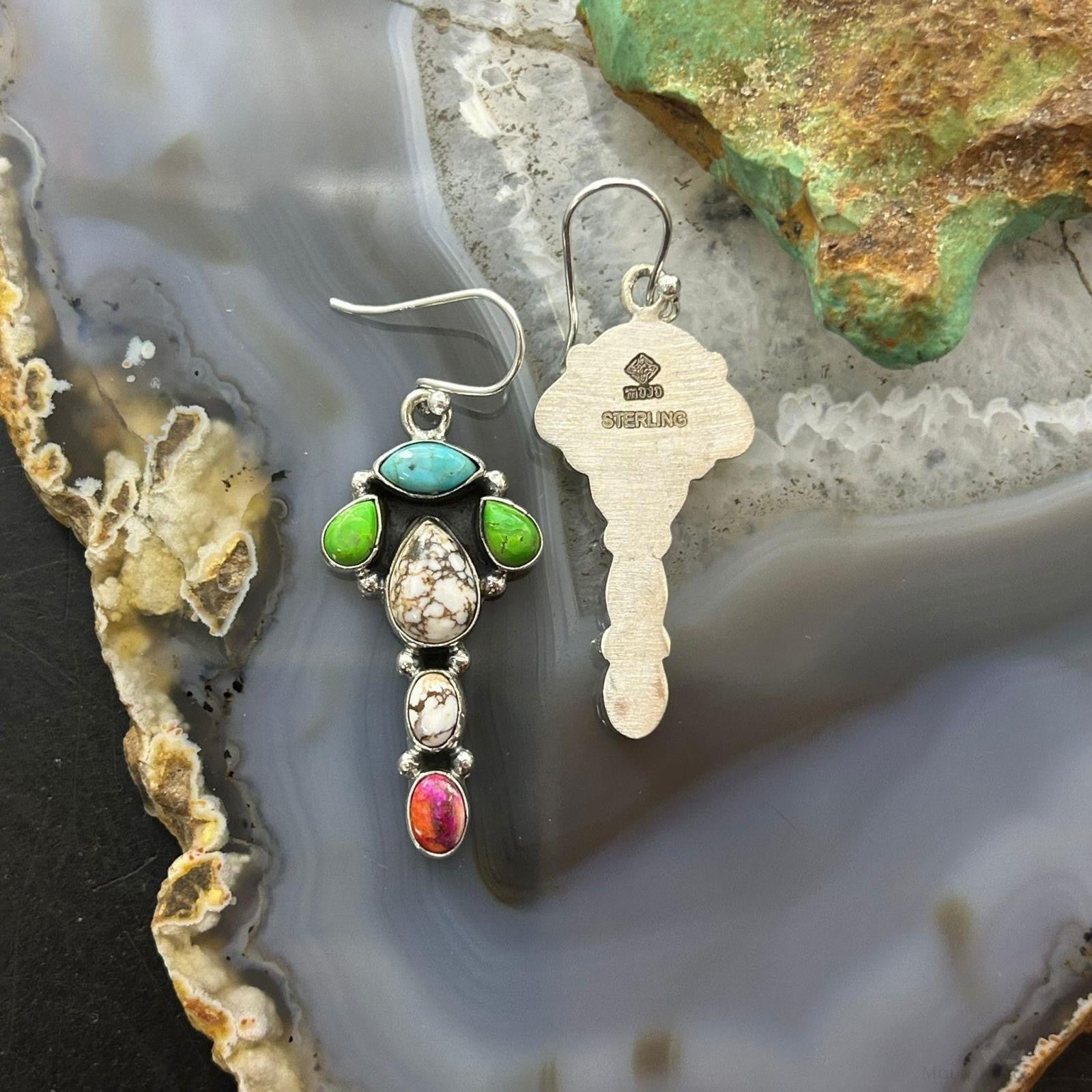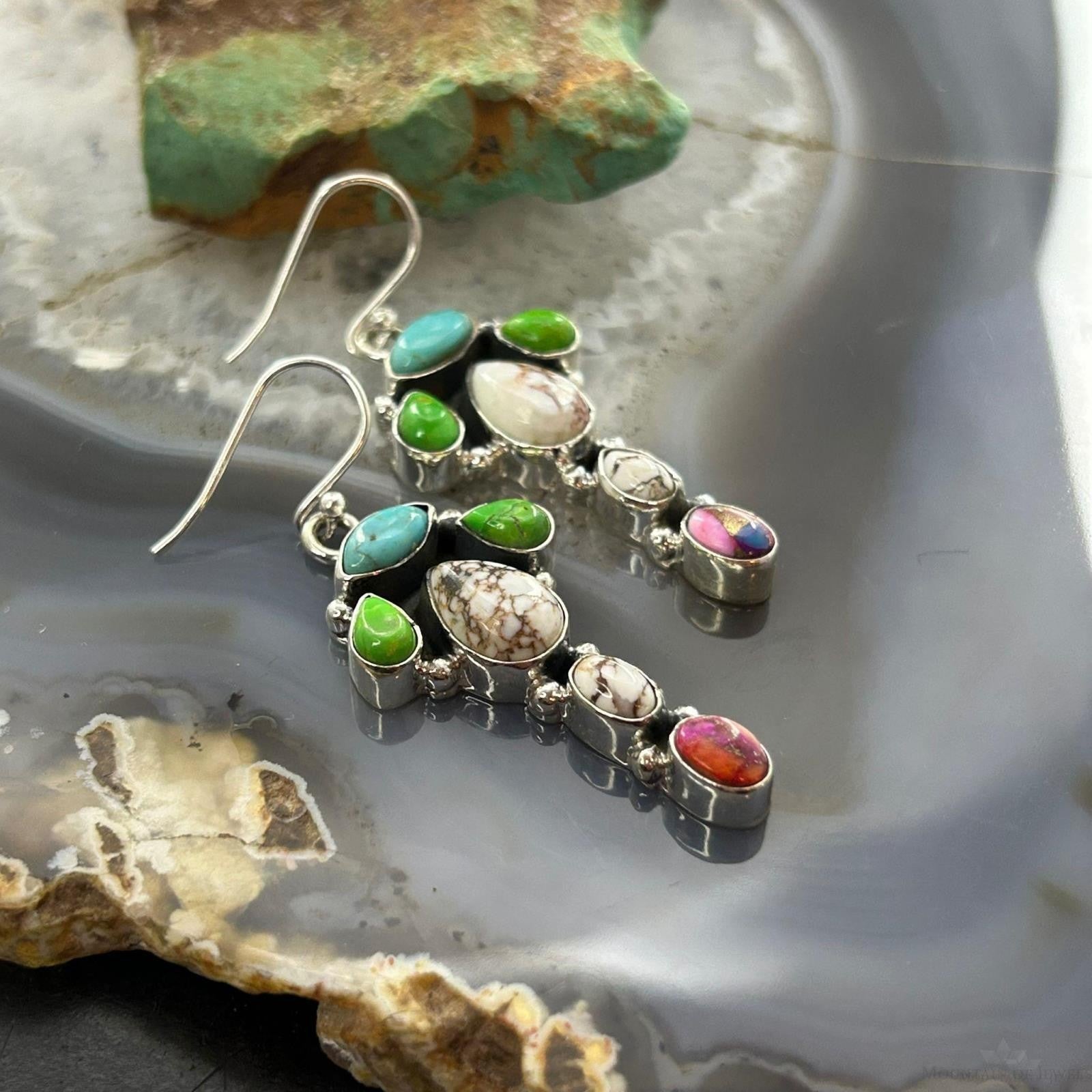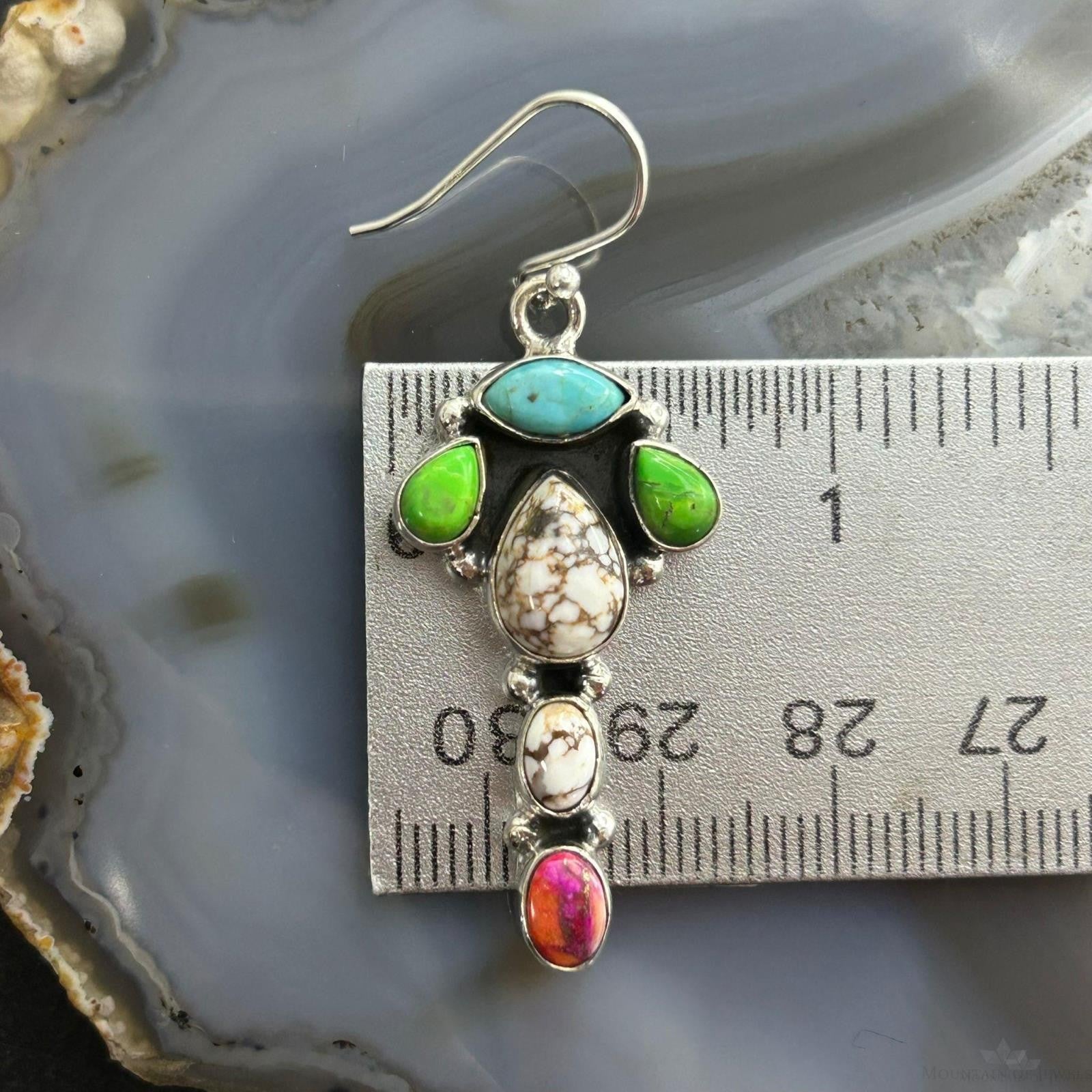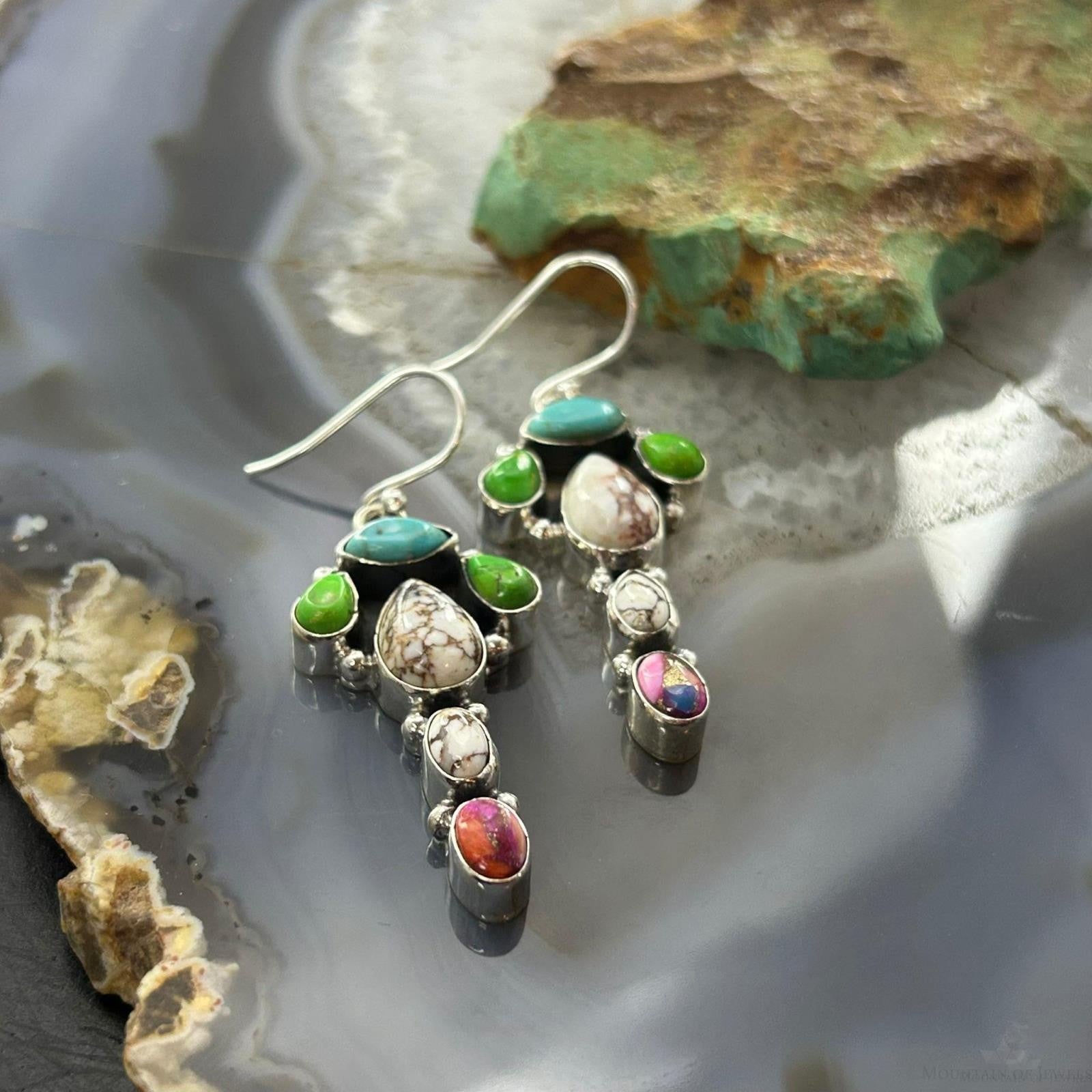 Sterling Silver Southwestern Style Multistone Dangle Earrings For Women #6