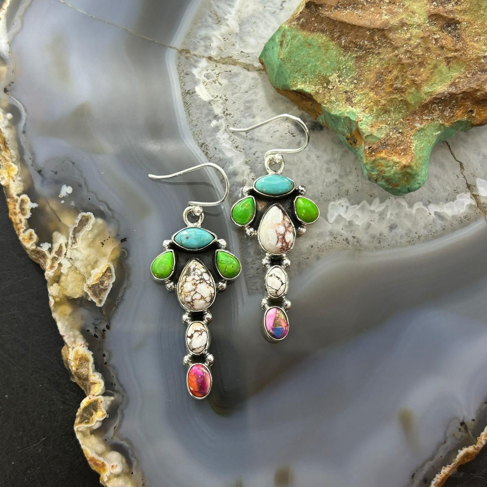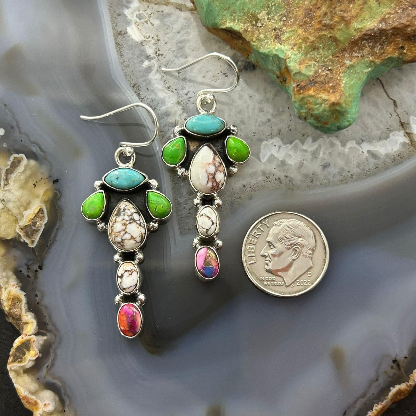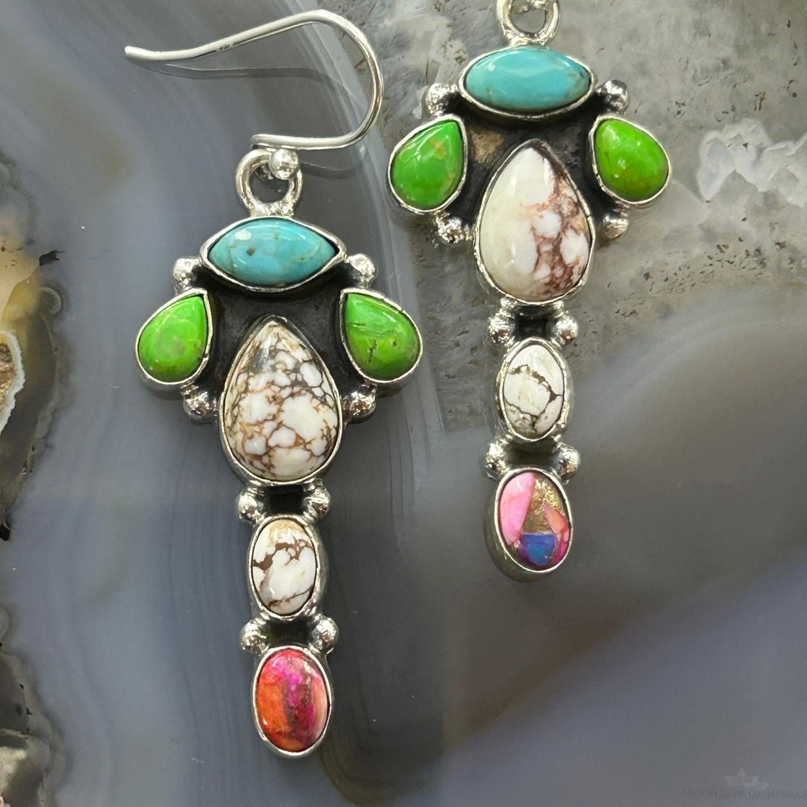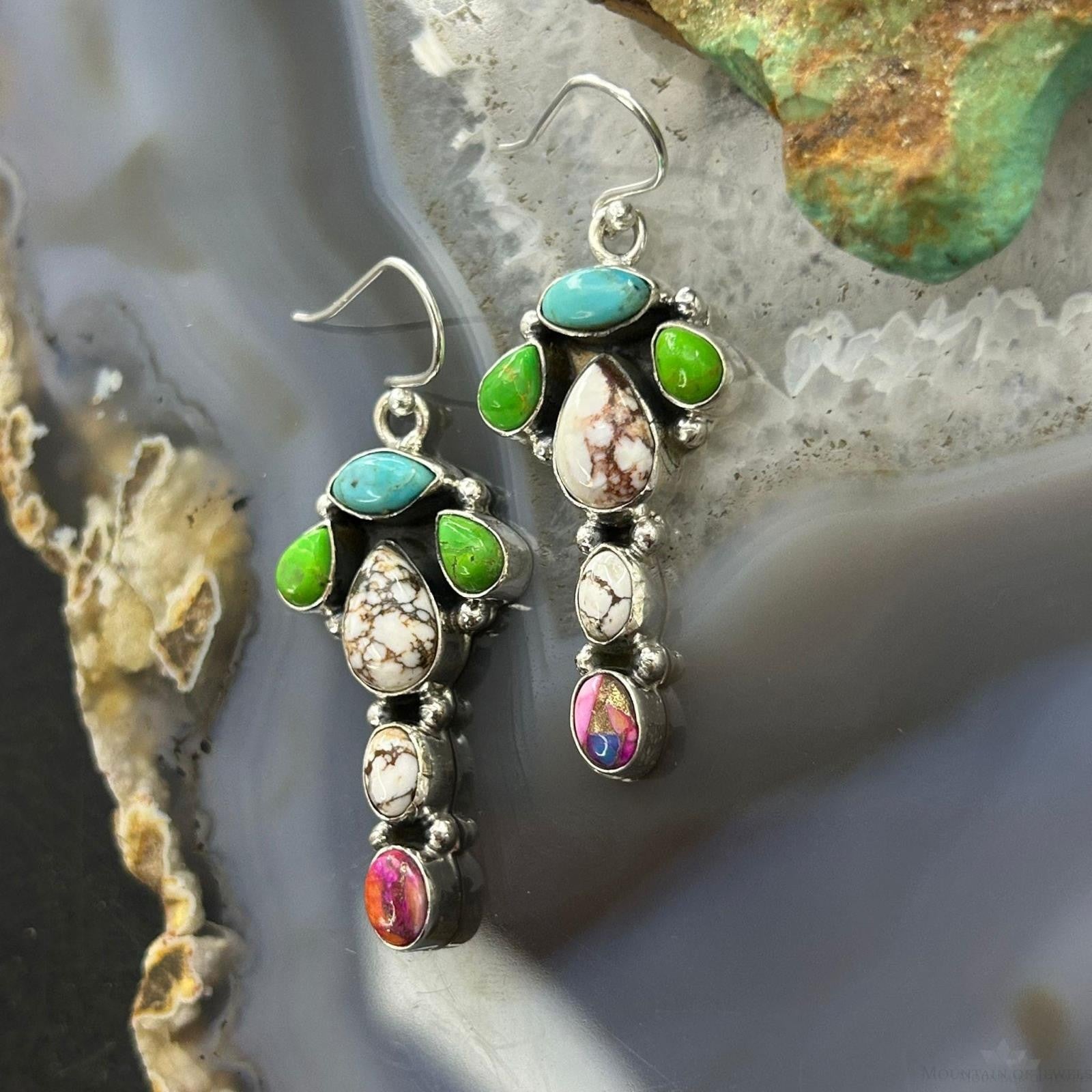Sterling Silver Southwestern Style Multistone Dangle Earrings For Women #6