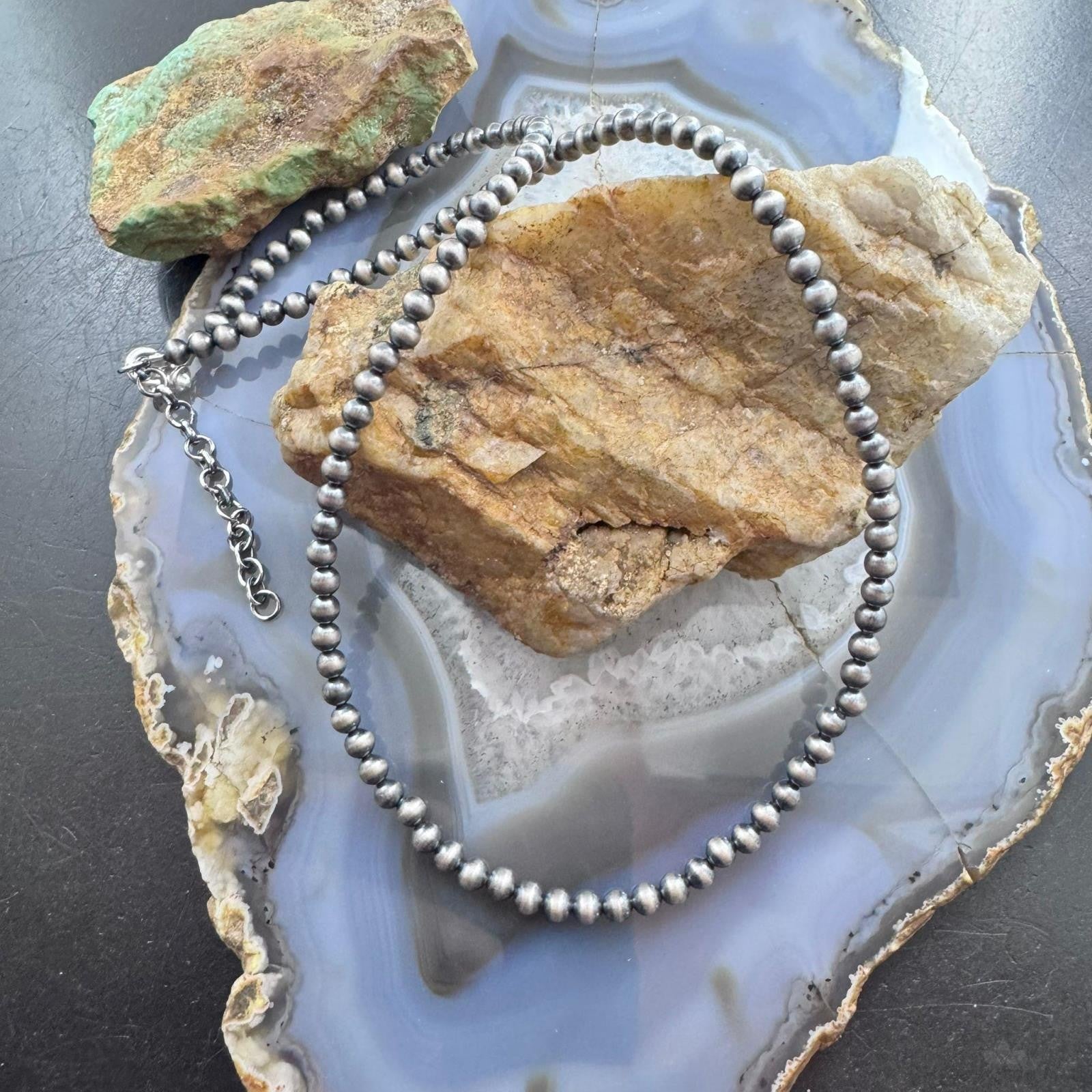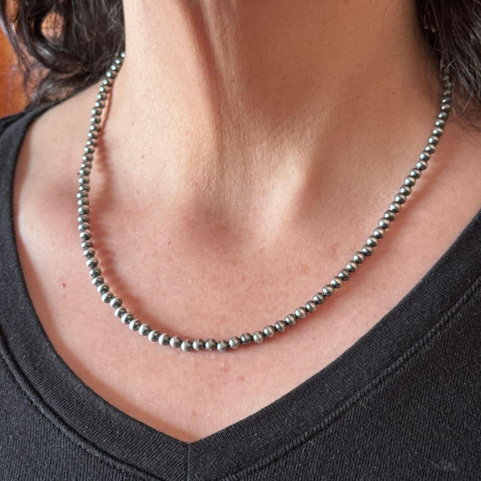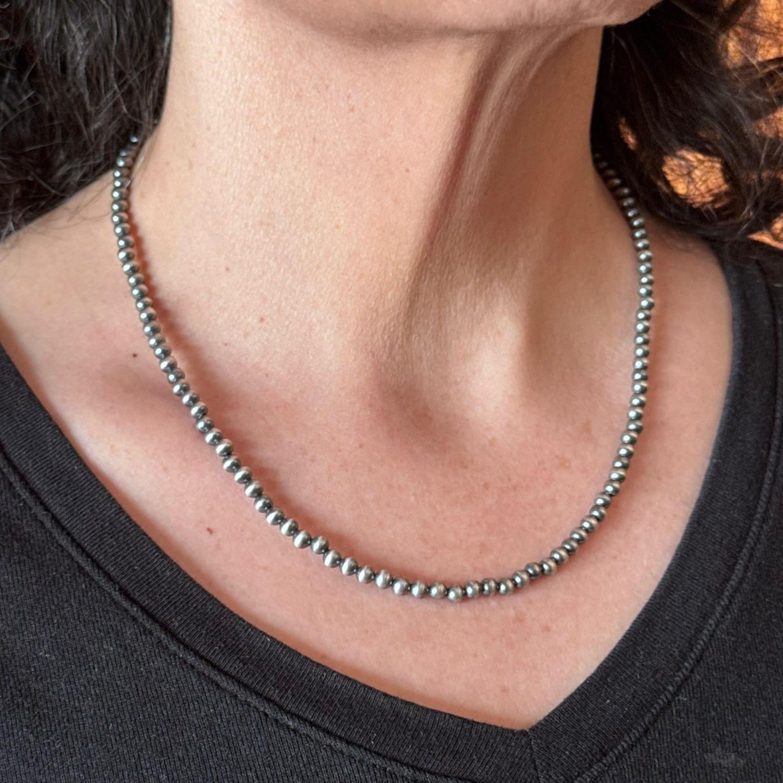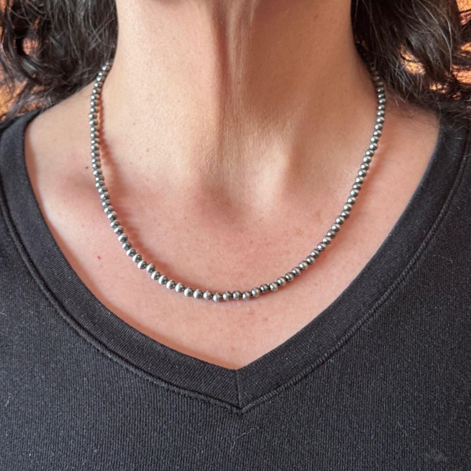 Sterling Silver Southwestern Style Navajo Pearl Beads 4 mm Necklace 16"-18" For Women