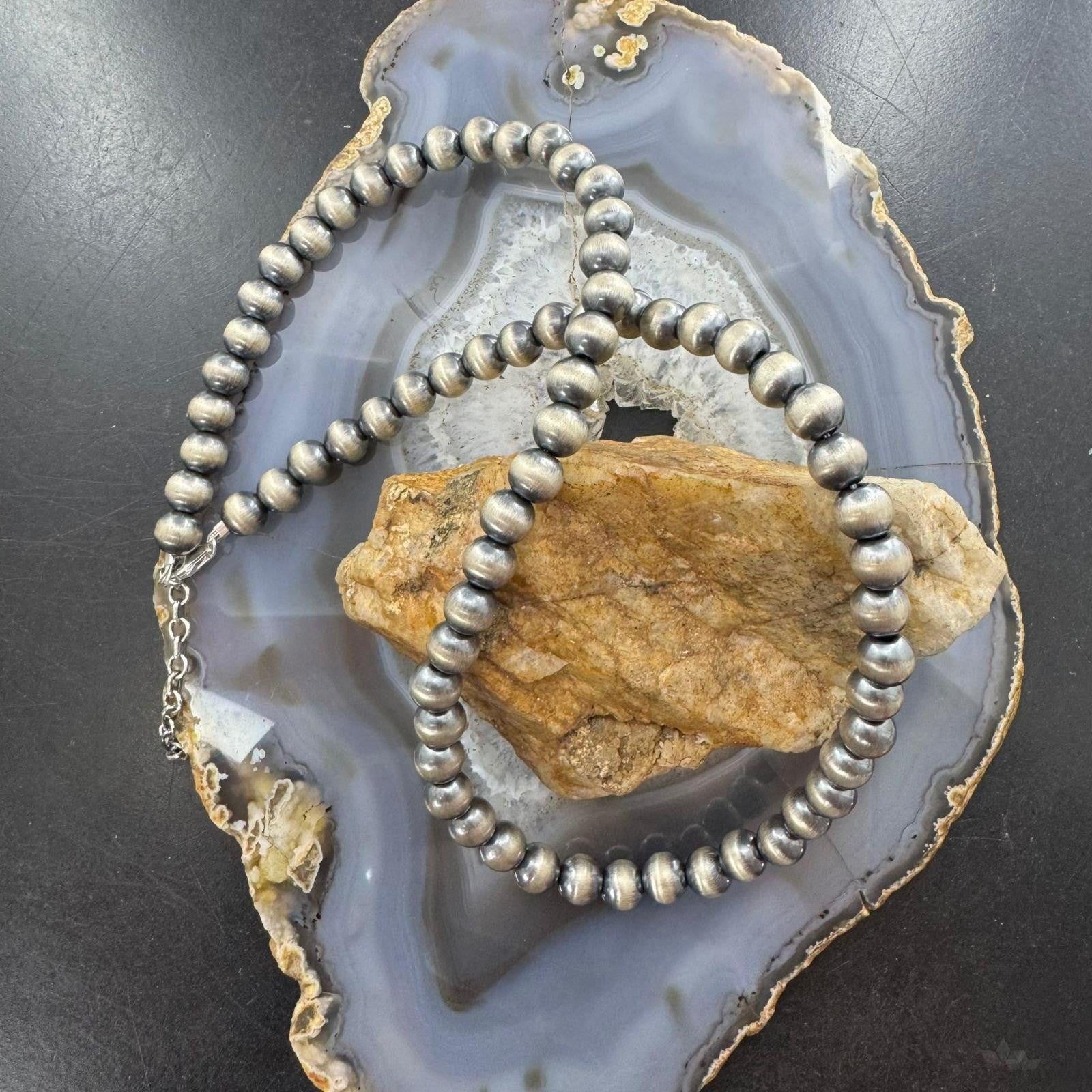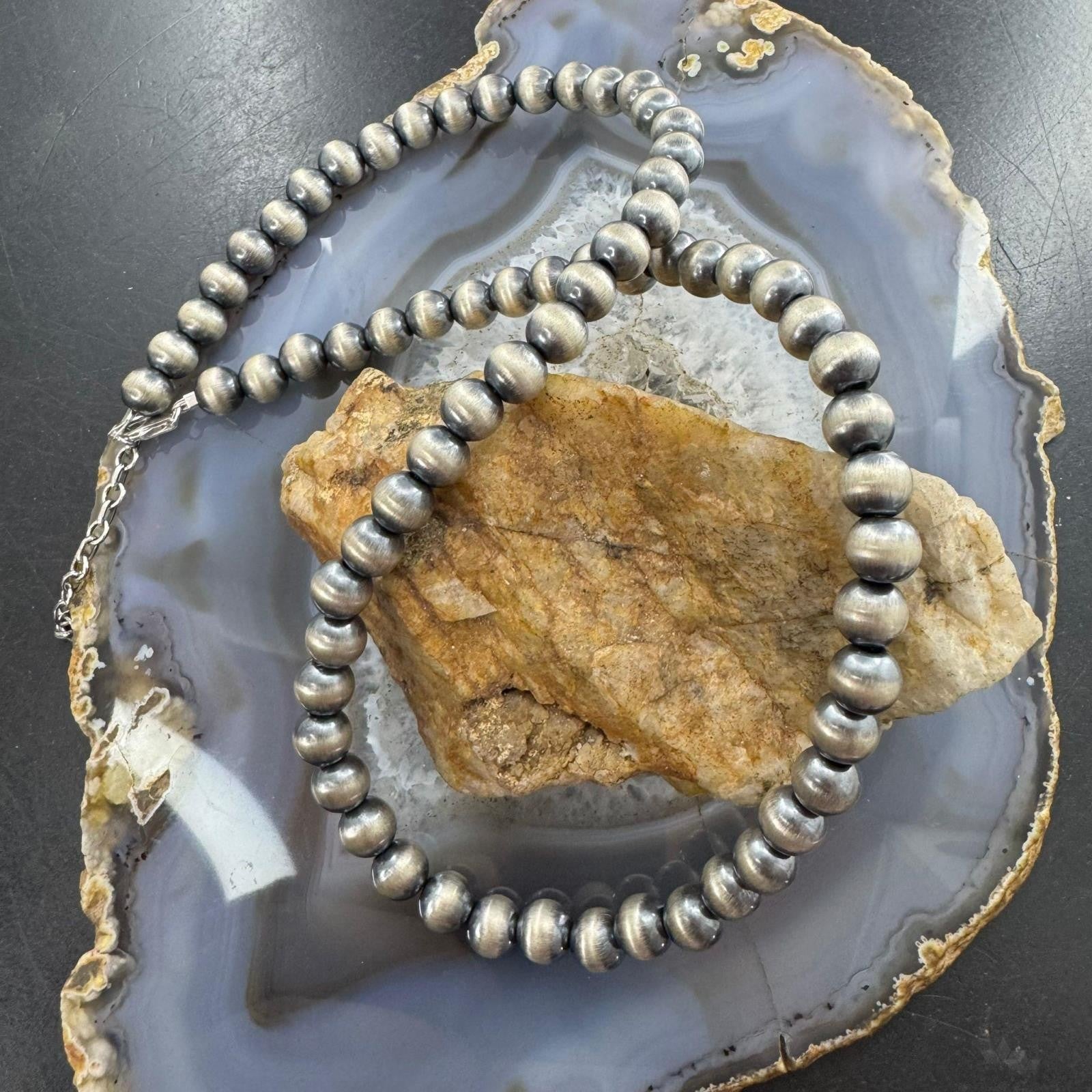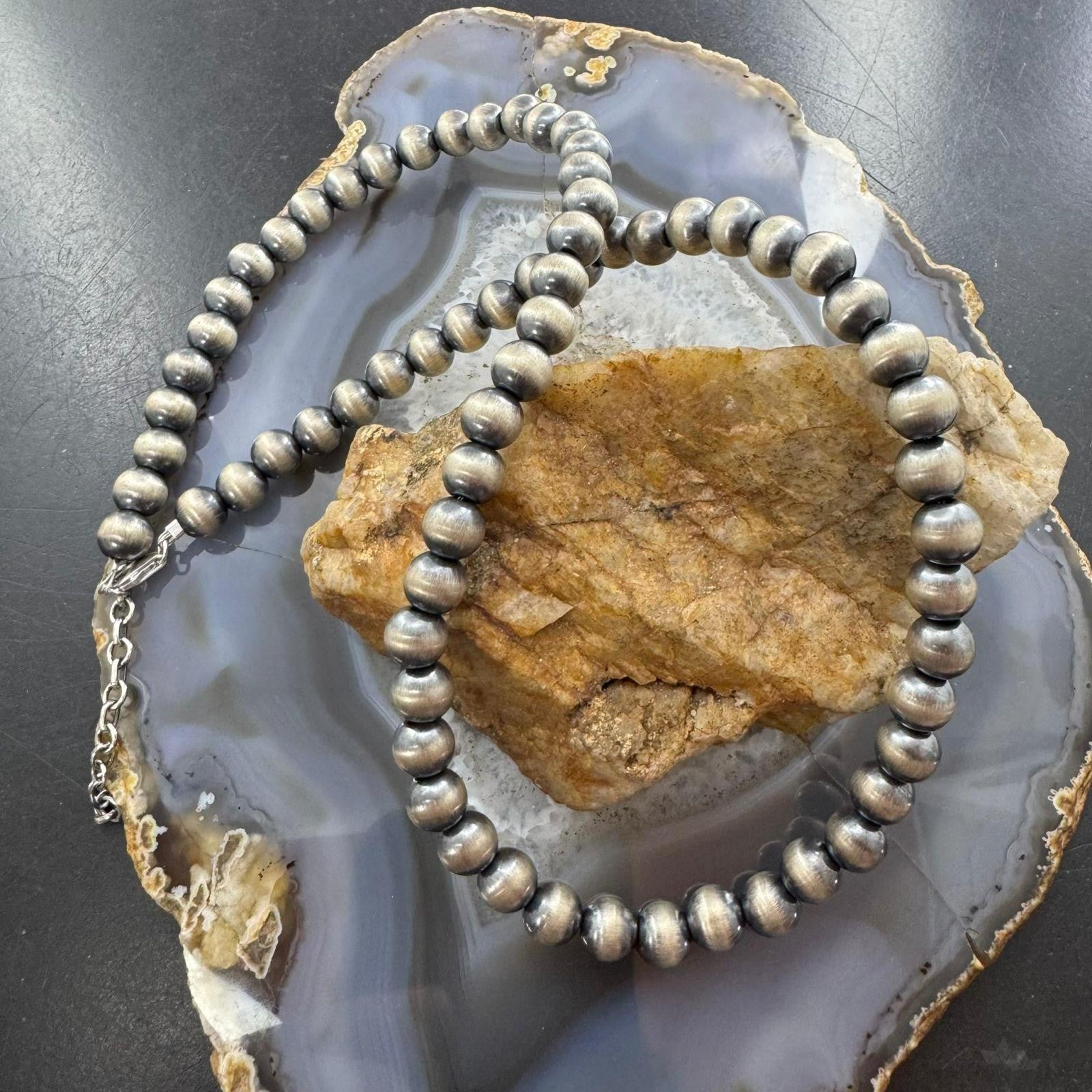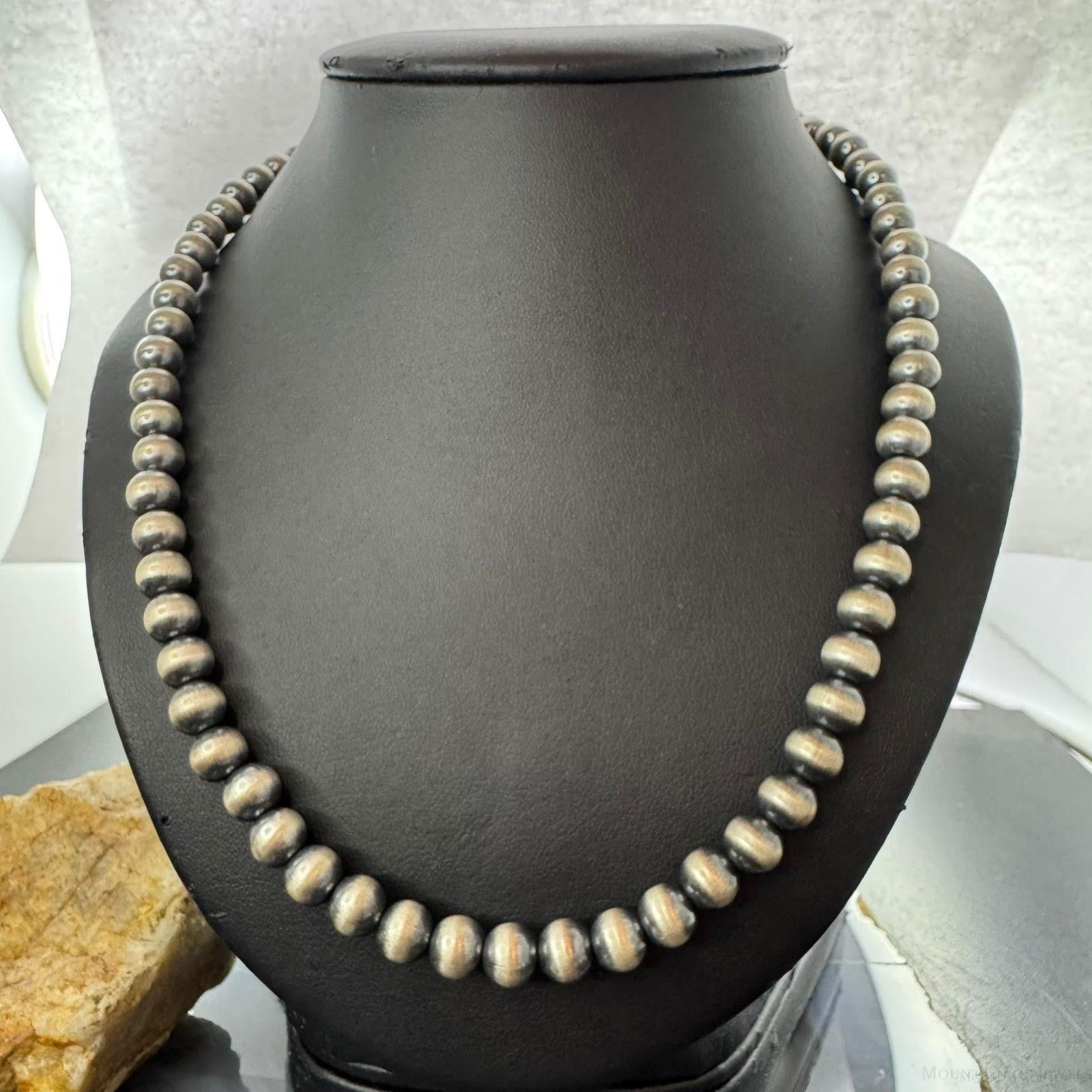 Sterling Silver Southwestern Style Navajo Pearl Beads 8 mm Necklace 20"-22" For Women