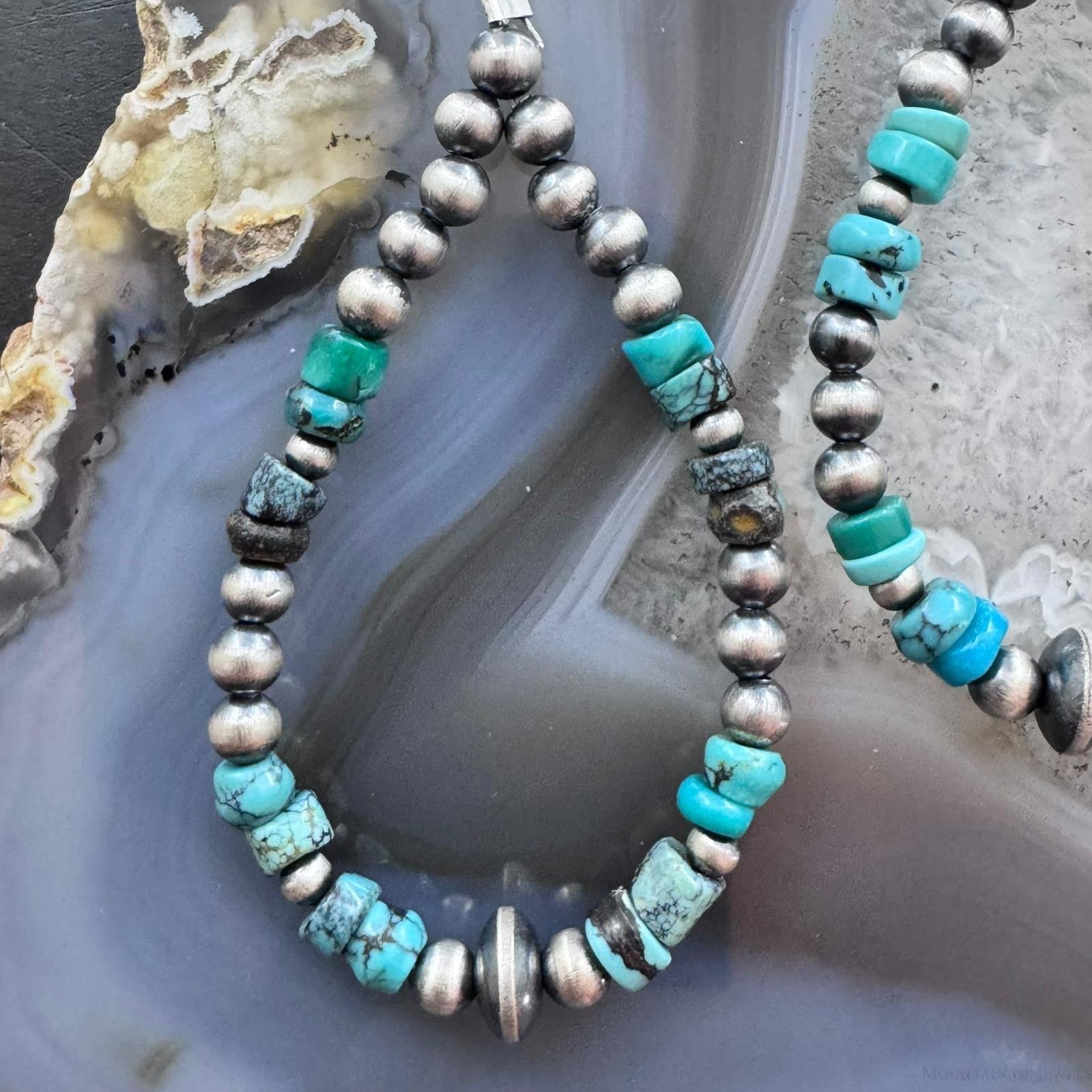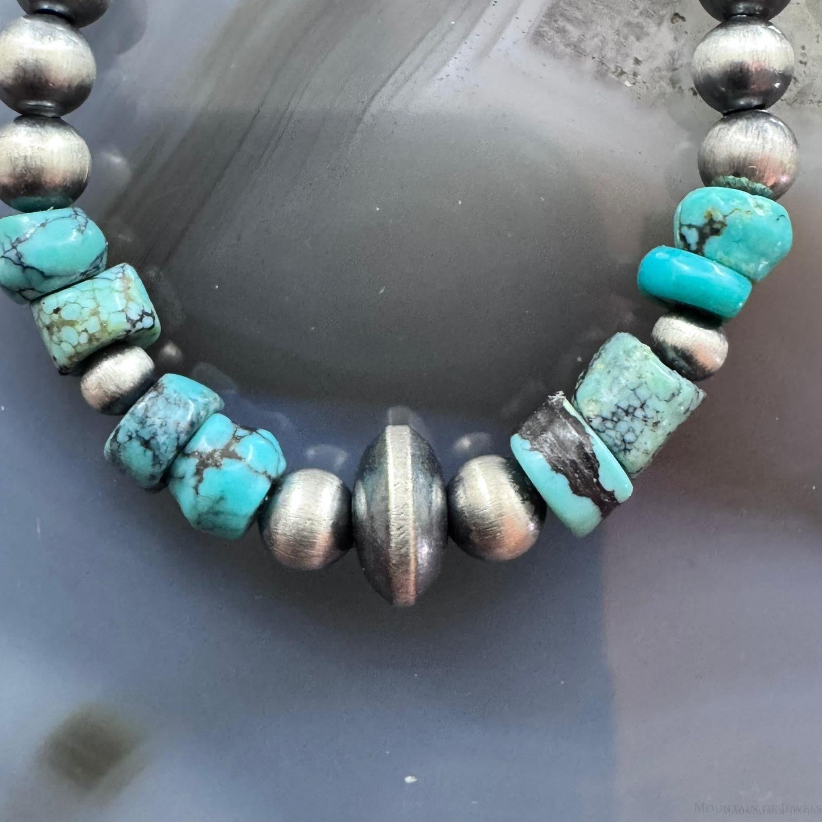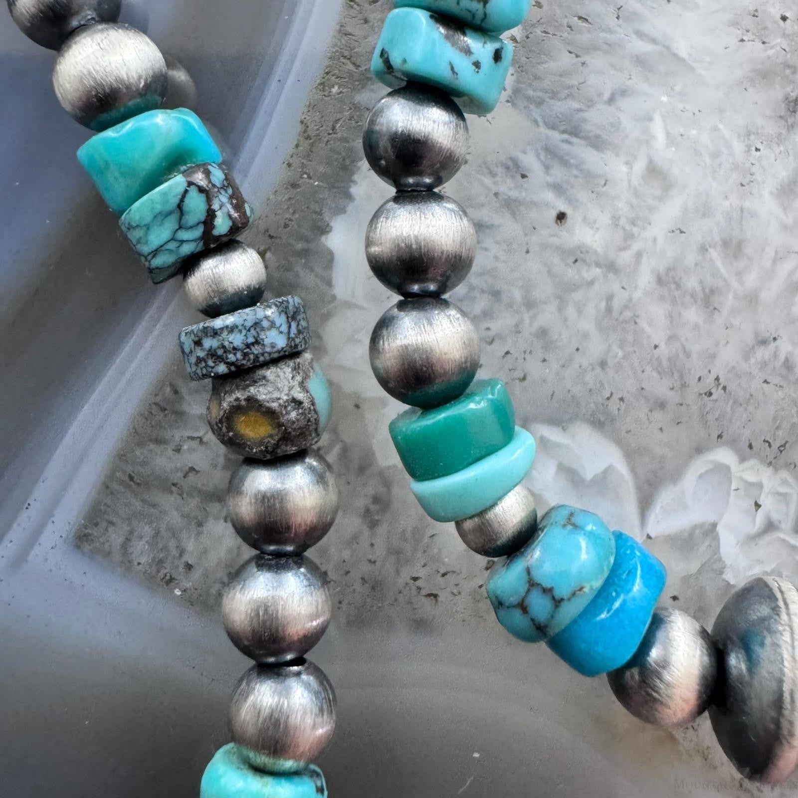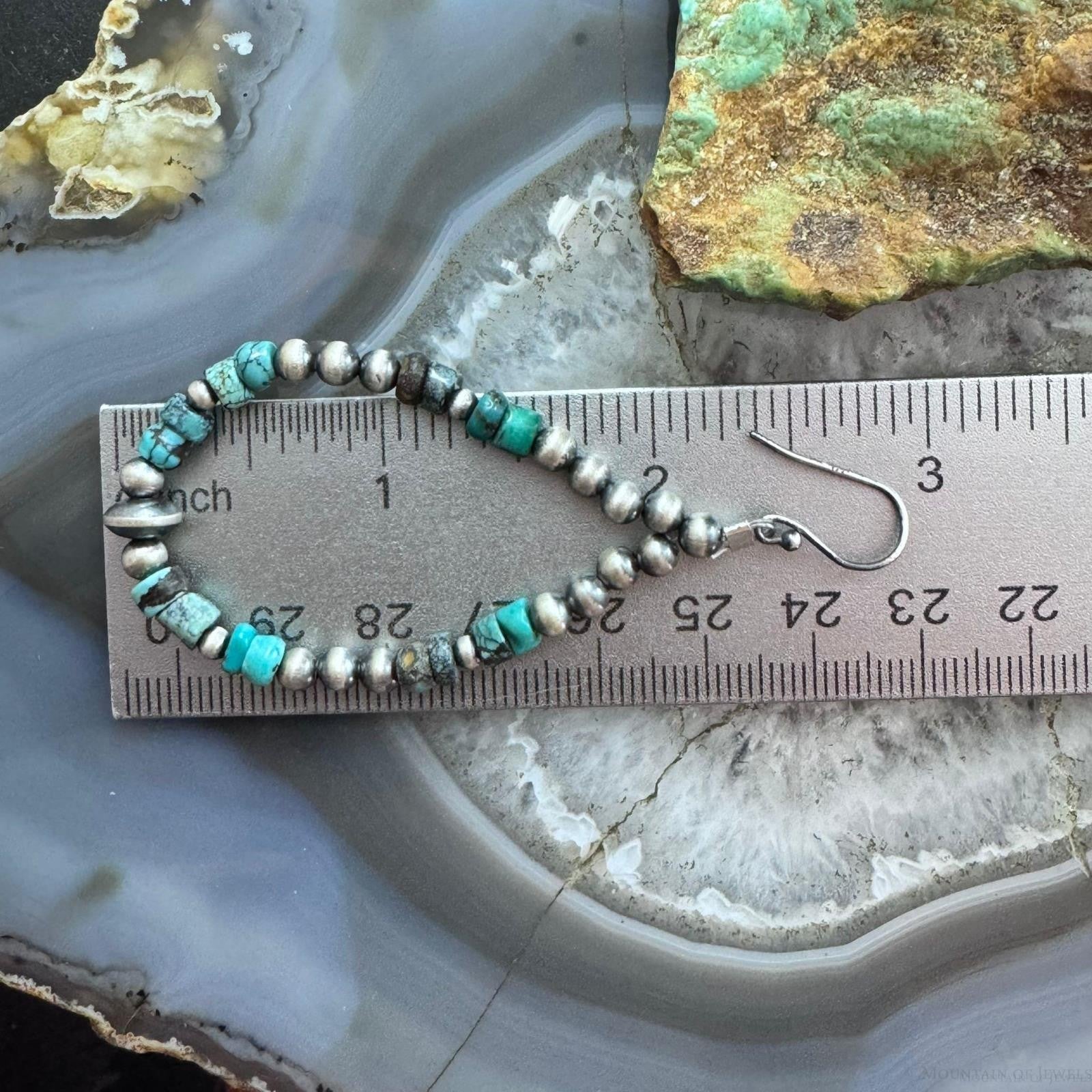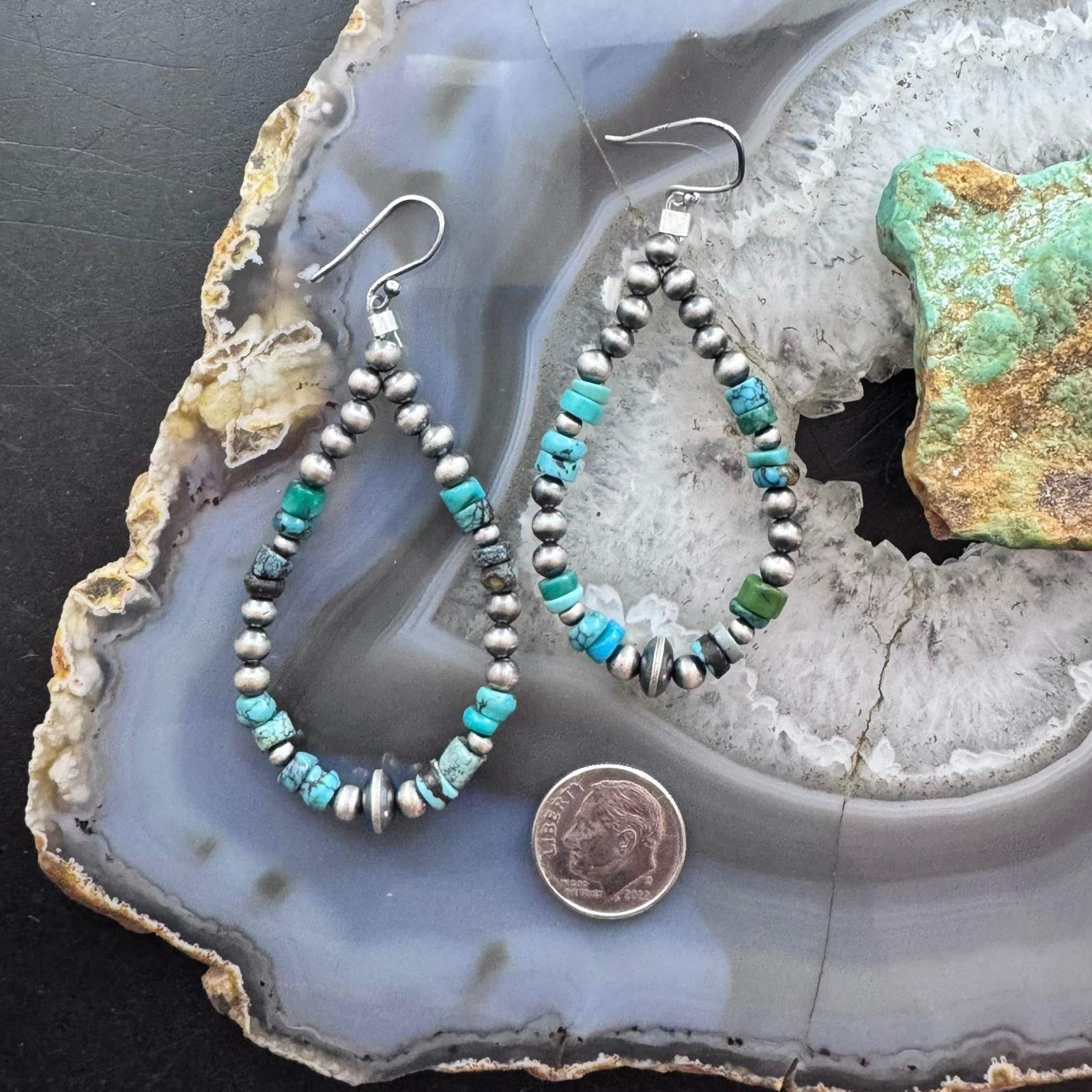 Sterling Silver Southwestern Style Navajo Pearl & Turquoise Bead Hoop Earrings For Women