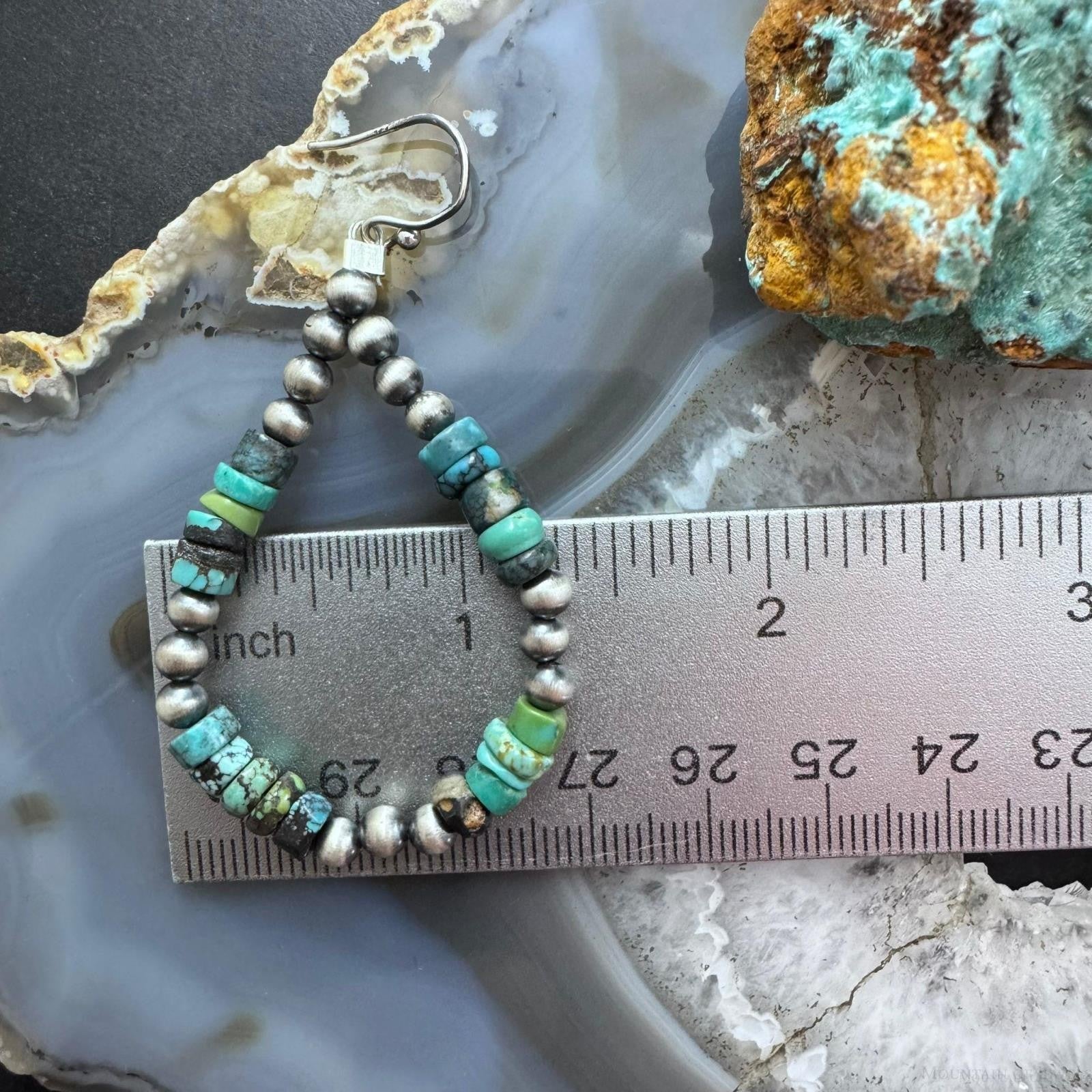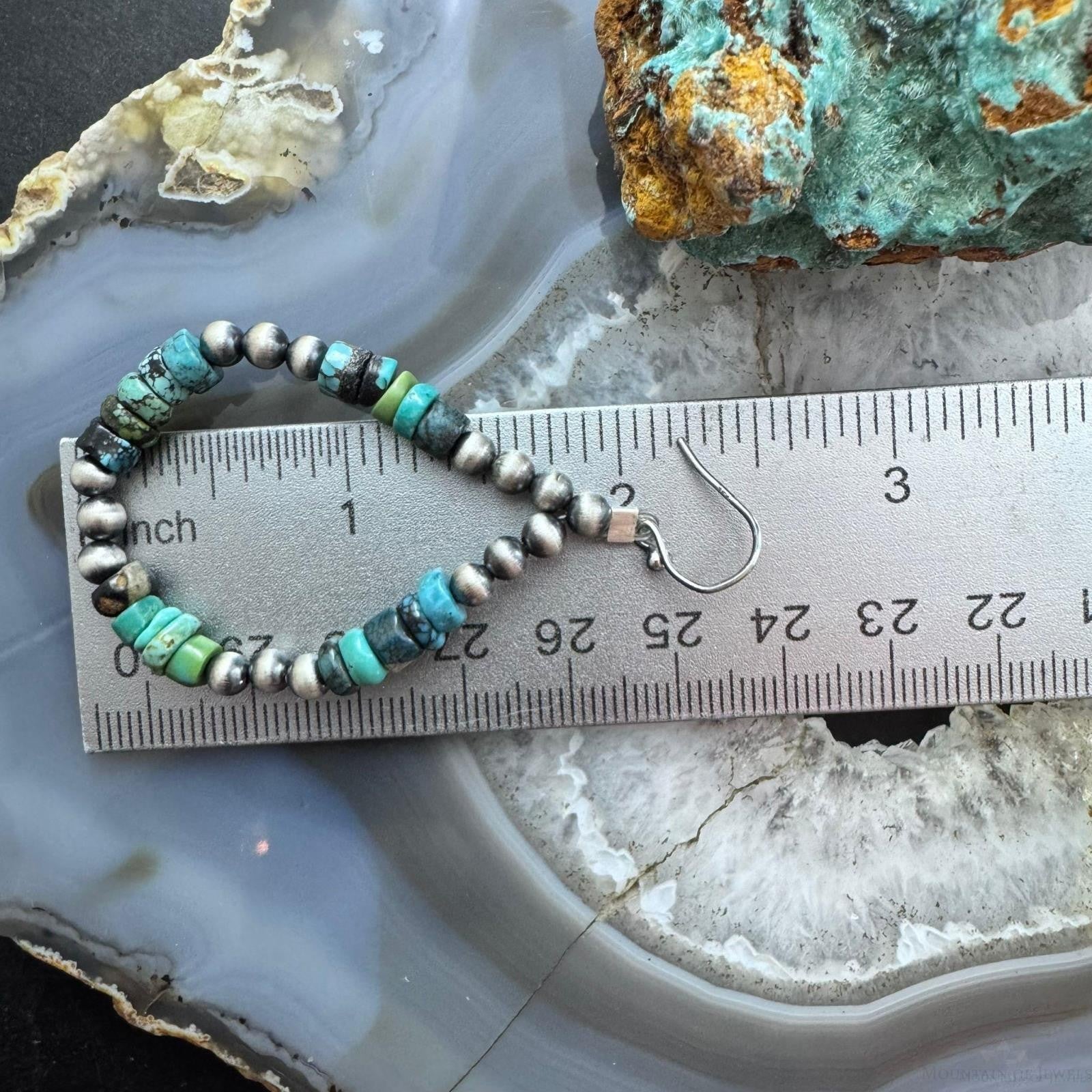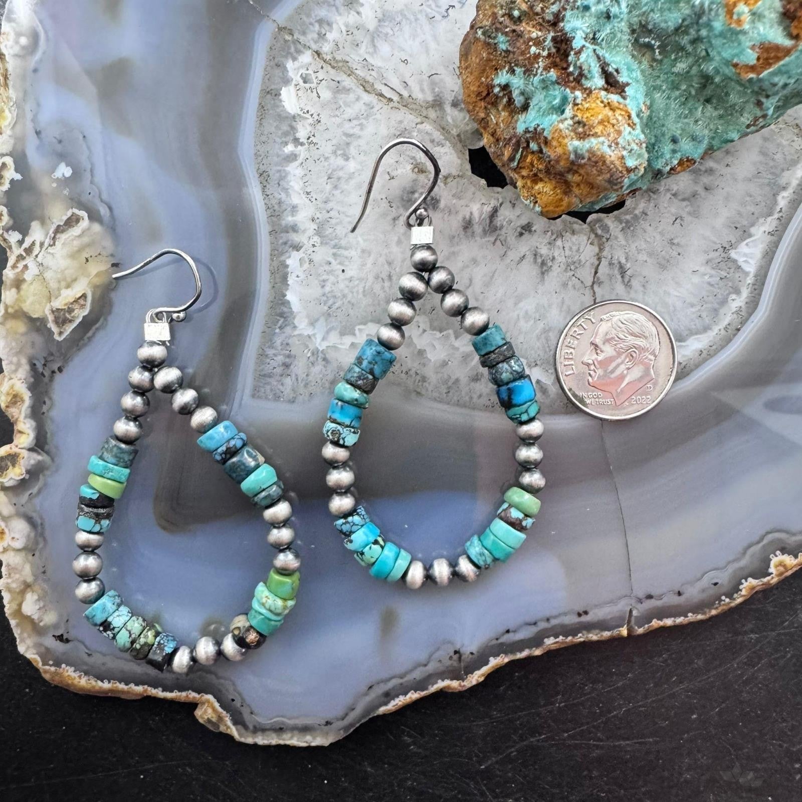 Sterling Silver Southwestern Style Navajo Pearl and 3-5 mm Turquoise Disk Bead Hoop Earrings For Women.