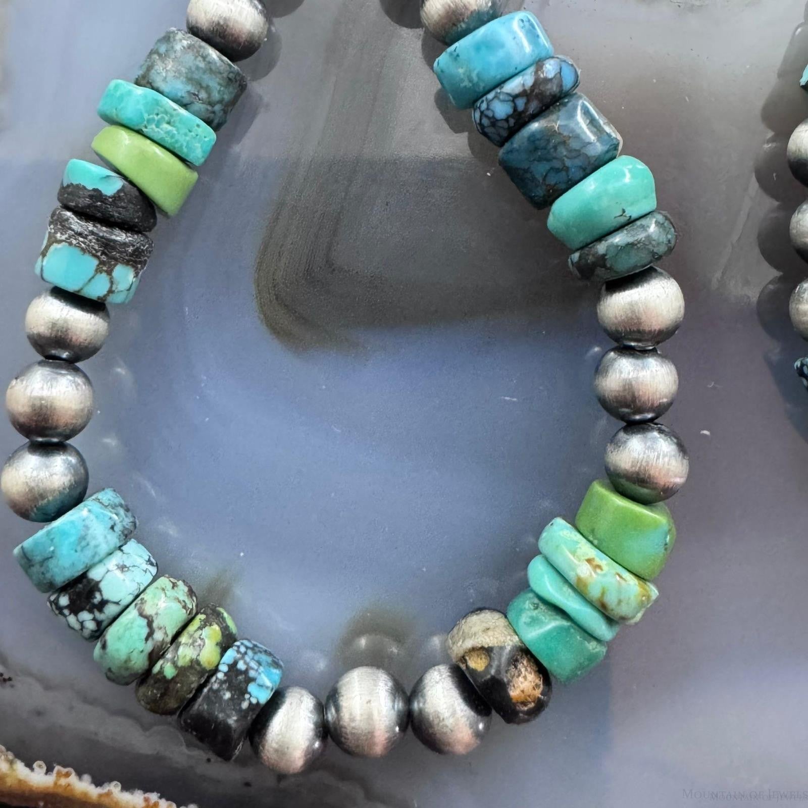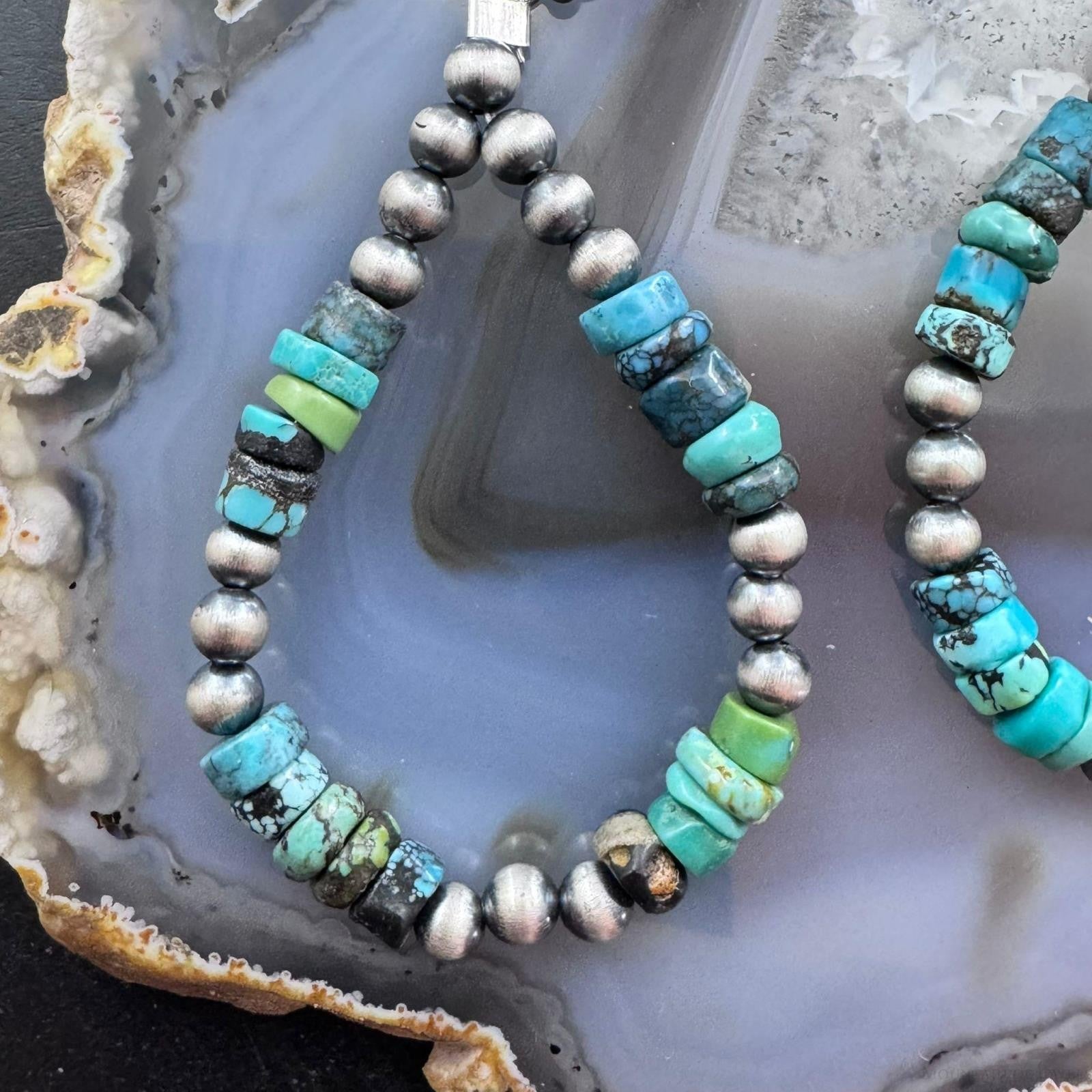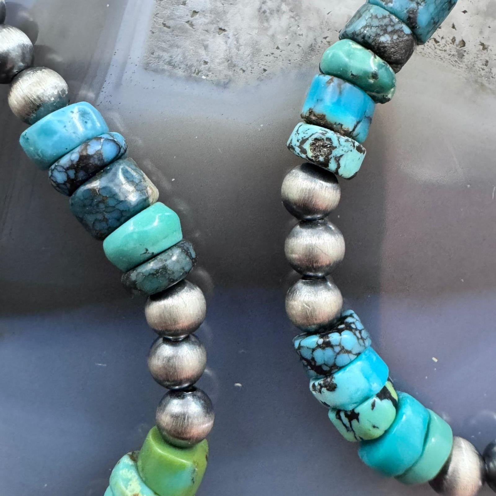Sterling Silver Southwestern Style Navajo Pearl and 3-5 mm Turquoise Disk Bead Hoop Earrings For Women.