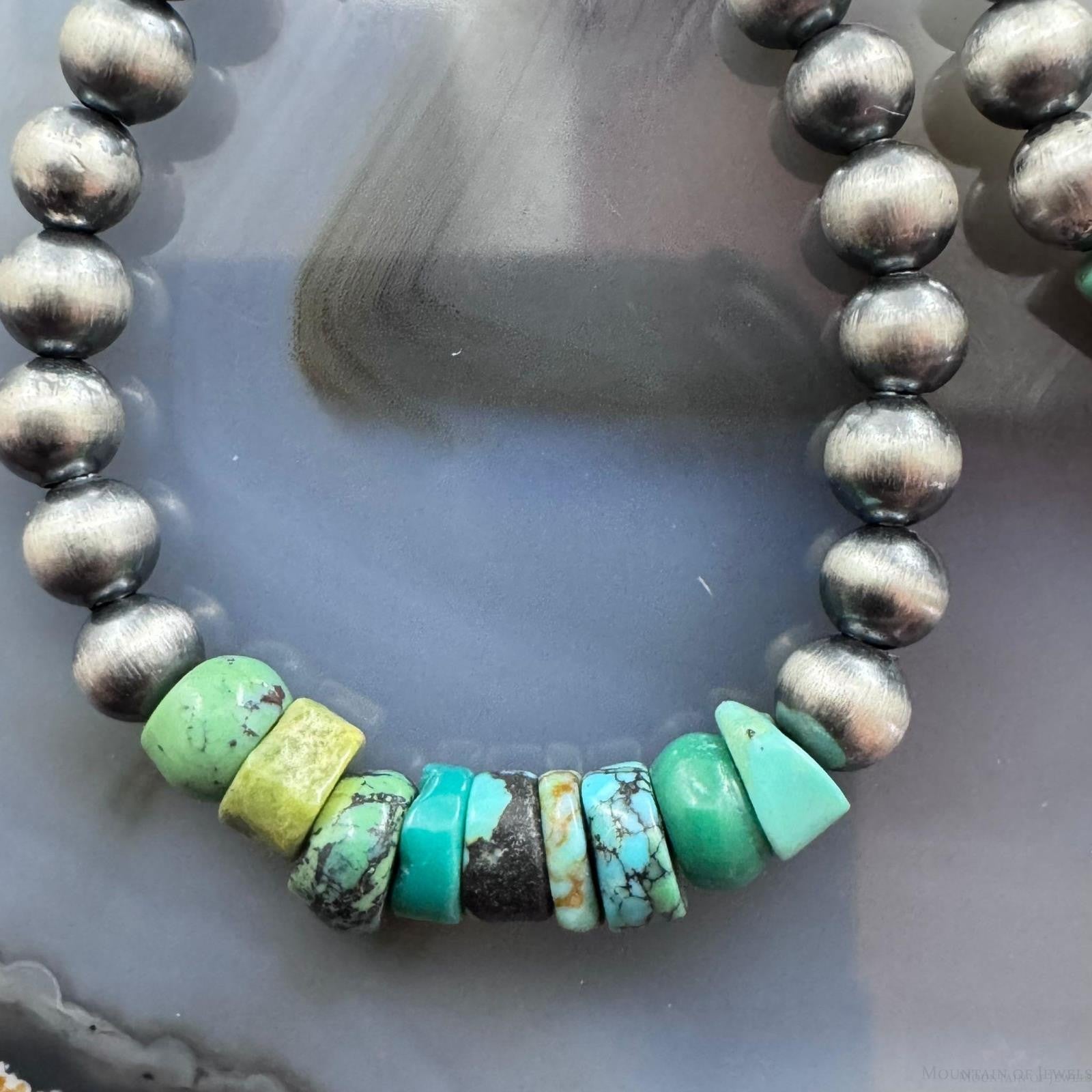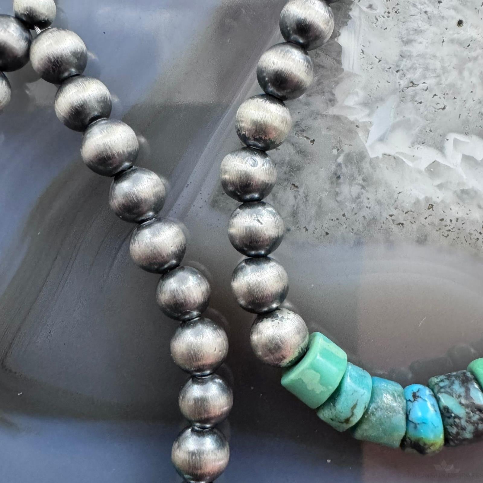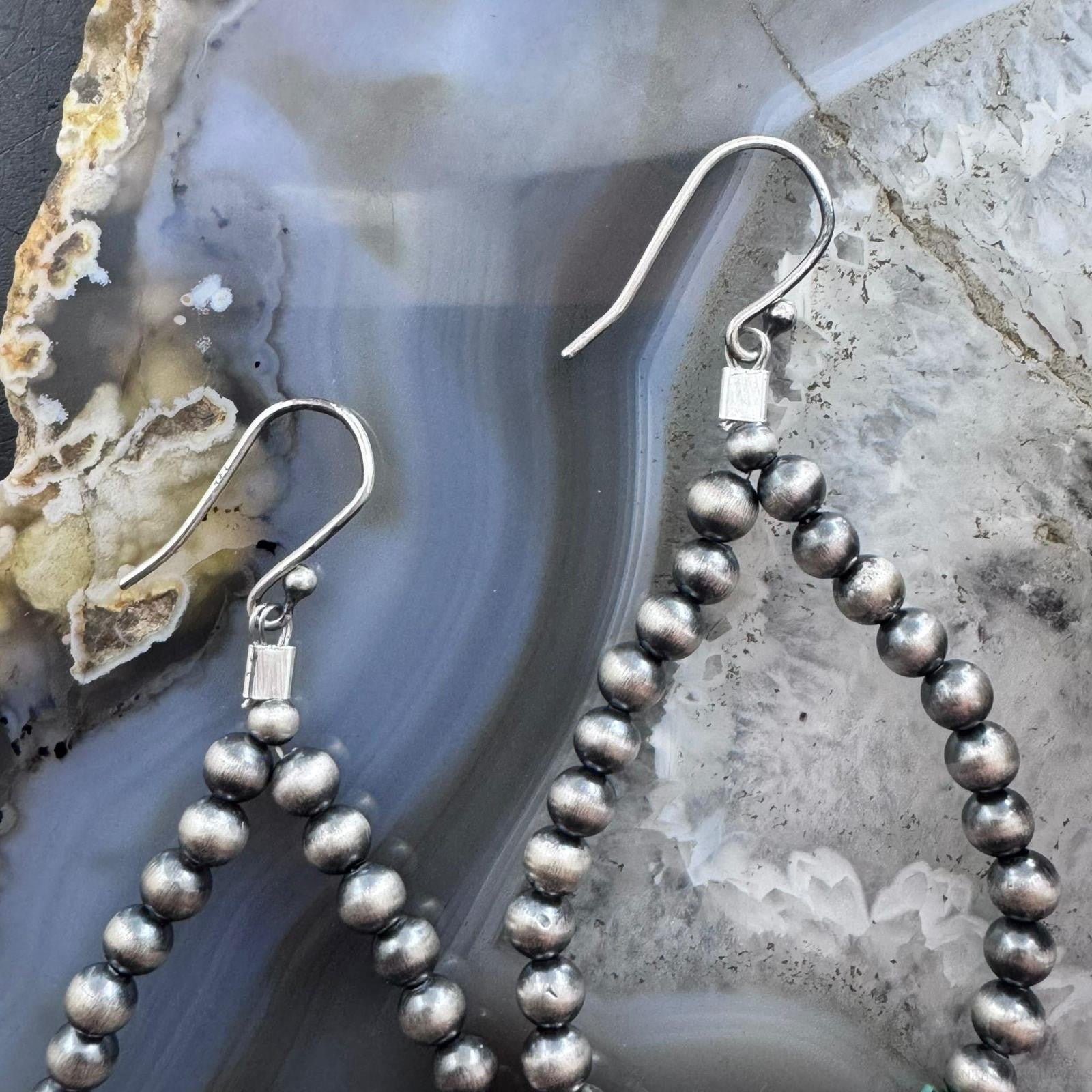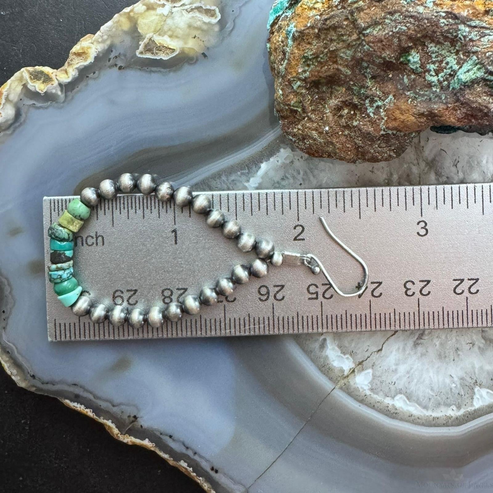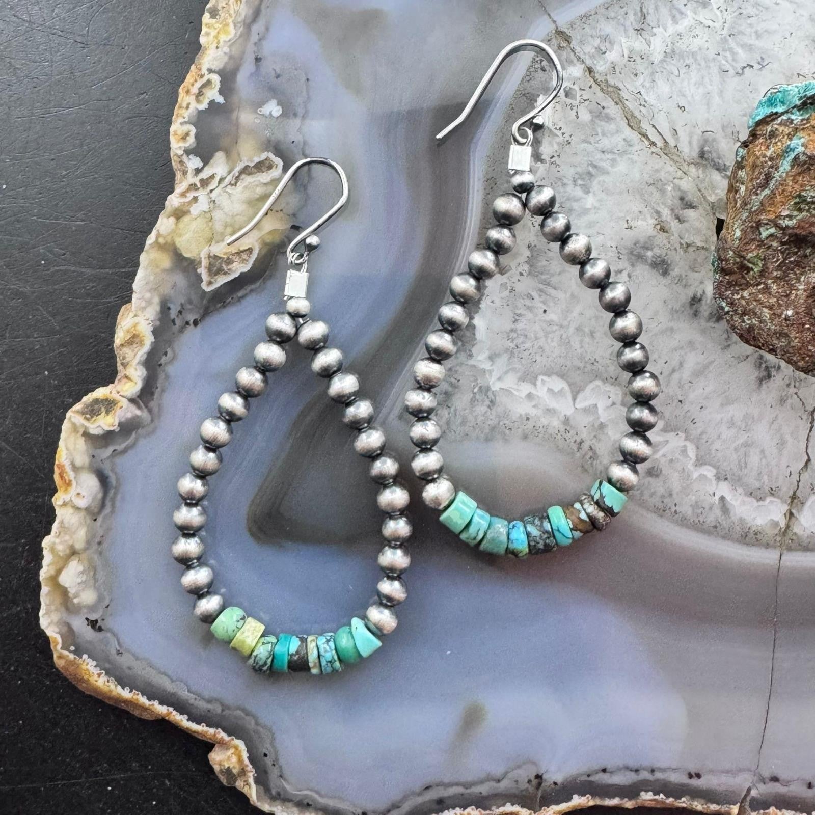 Sterling Silver Southwestern Style Navajo Pearl & Turquoise Bead Hoop Earrings For Women